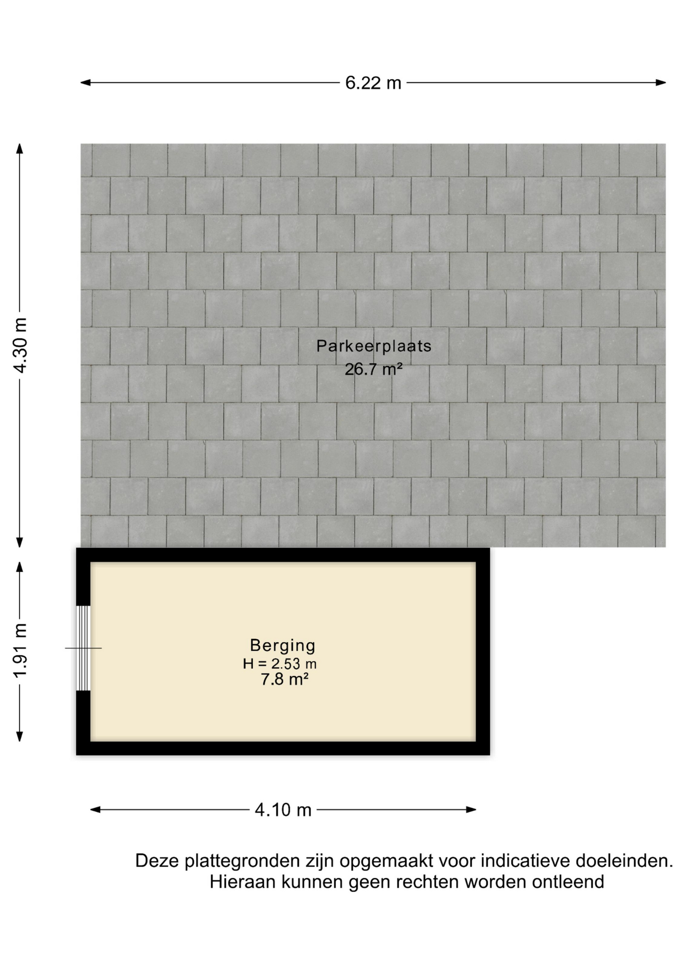 Achterin de tuin bevinden zich twee parkeerplaatsen op eigen terrein, een vrijstaande stenen berging met elektra en een aluminium lamellen overkapping, ideaal als stallingsplek of als gezellige zithoek.