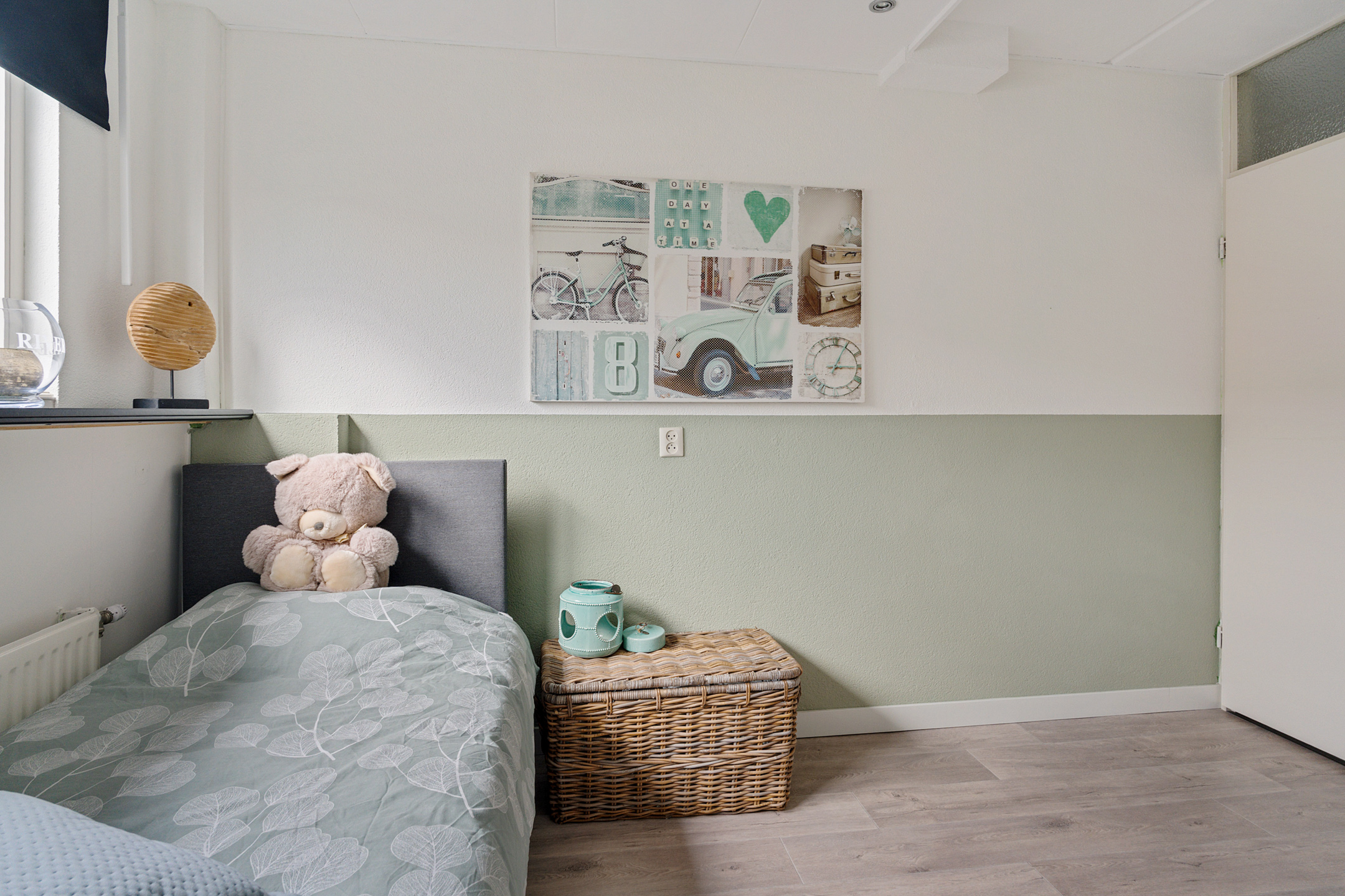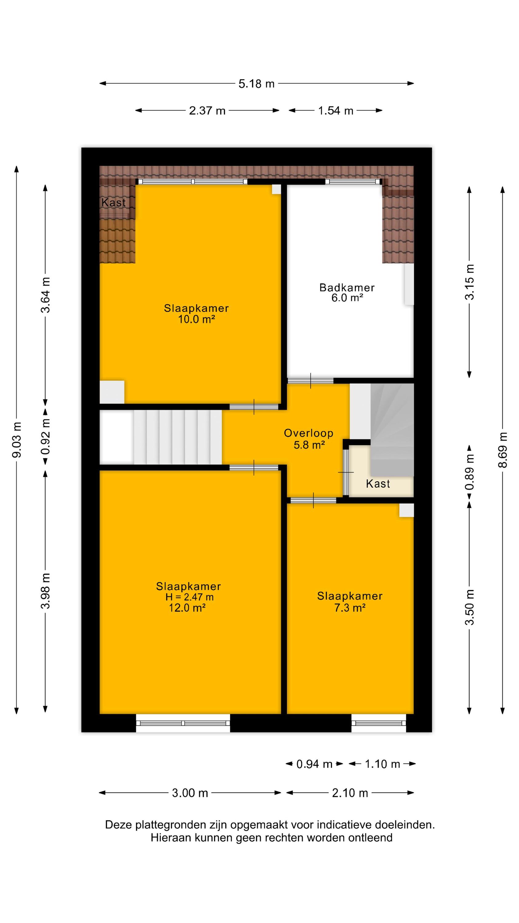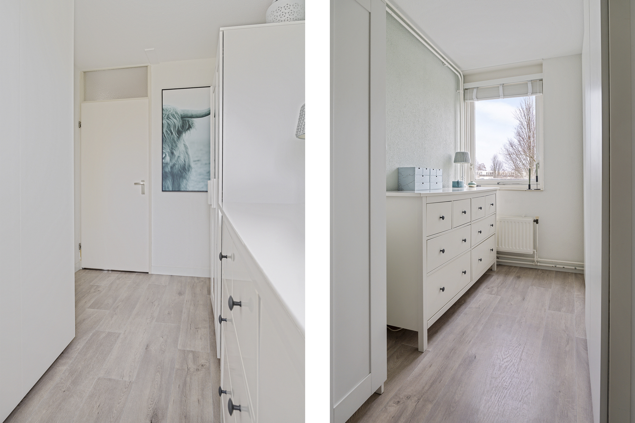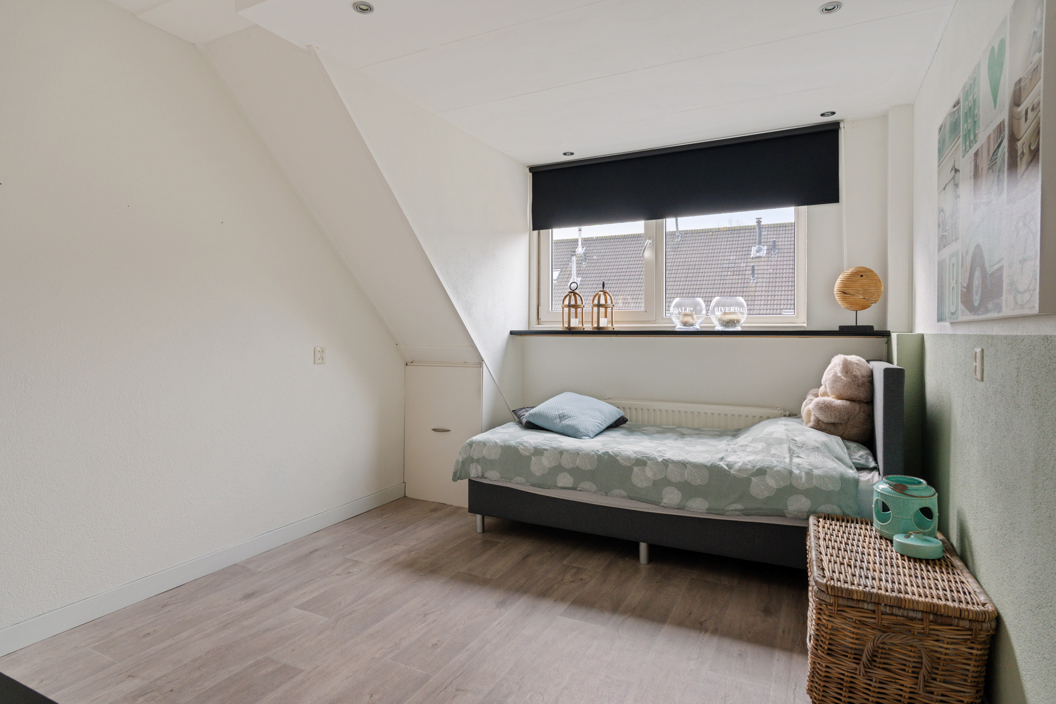 Vanaf de overloop heb je toegang tot drie slaapkamers en de badkamer. Aan de achterzijde bevinden zich twee slaapkamers van circa 10 m² en 7 m². De ruime slaapkamer aan de voorzijde is ongeveer 12 m² groot. De gehele verdieping is afgewerkt met een nette vloer, wat zorgt voor een verzorgde en rustige uitstraling.