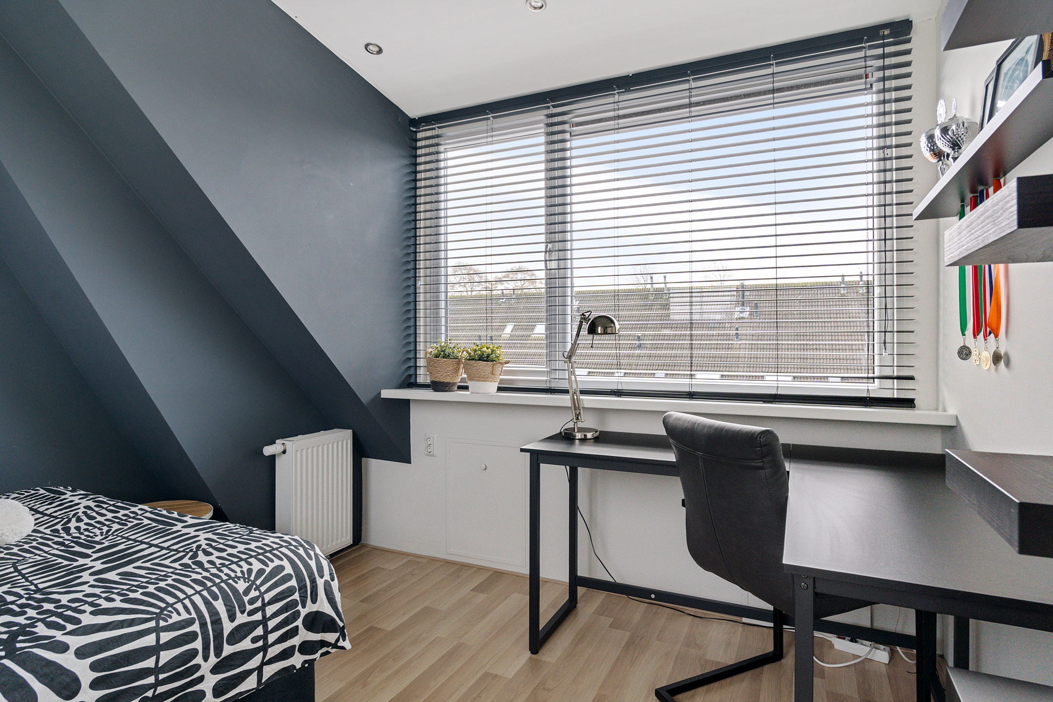 Aan de achterzijde is de woning voorzien van een kunststof dakkapel, wat zorgt voor extra ruimte en een prettige lichtinval. Op deze verdieping bevindt zich een vierde slaapkamer van circa 10 m² met een comfortabele stahoogte, waardoor de ruimte optimaal te gebruiken is.