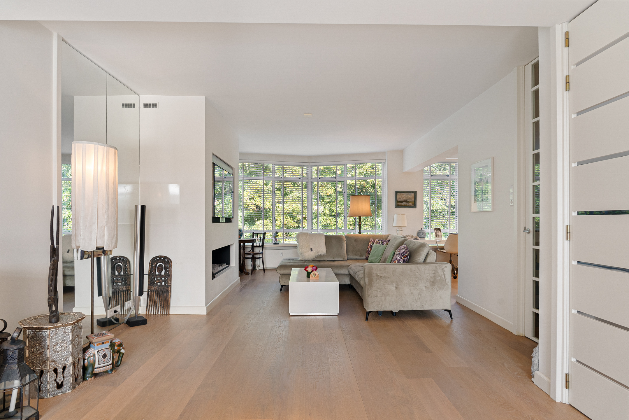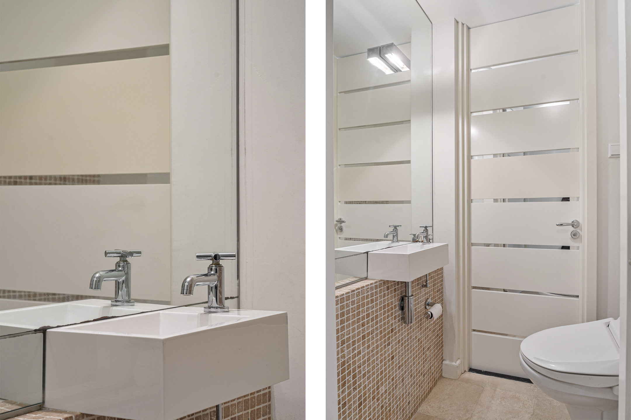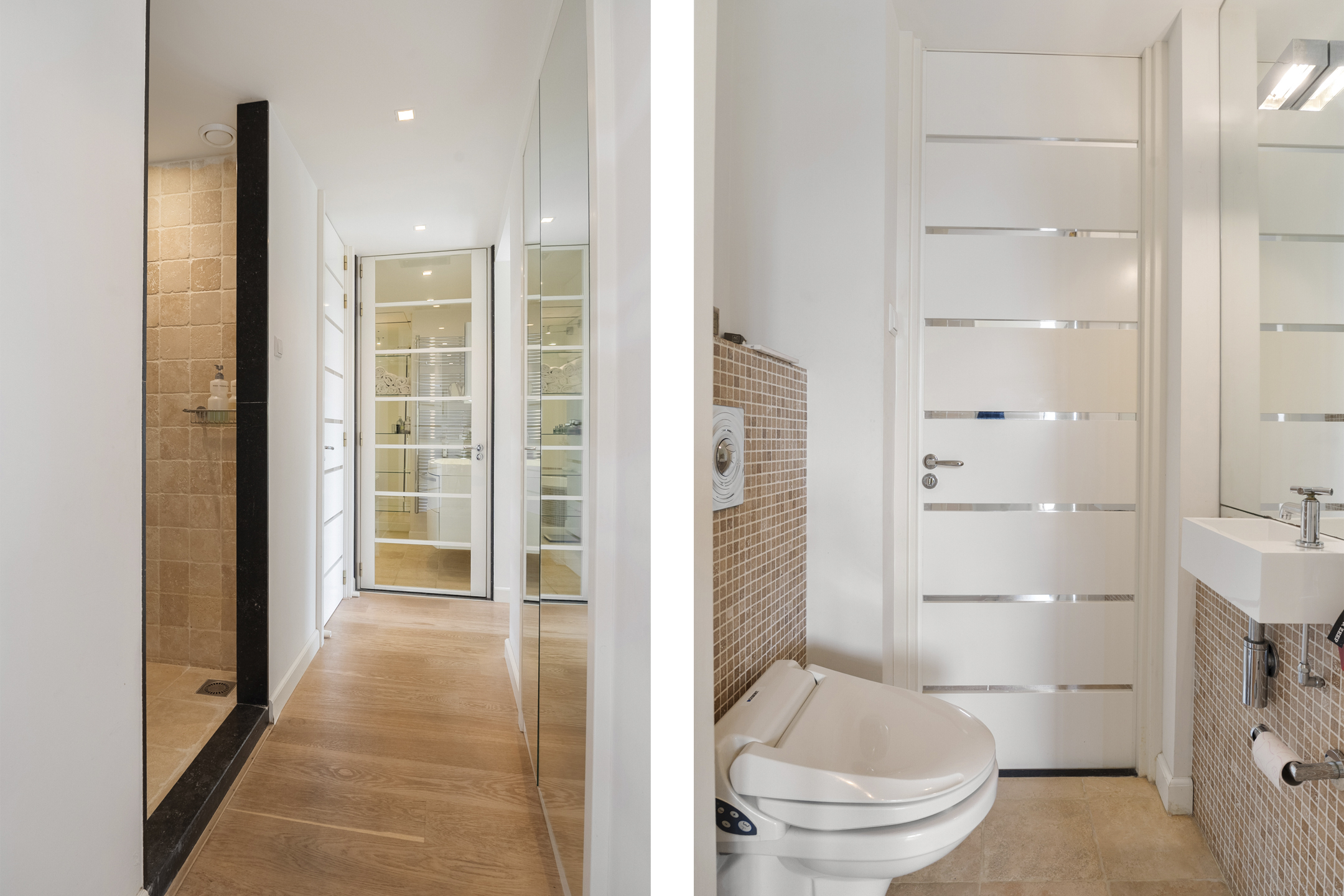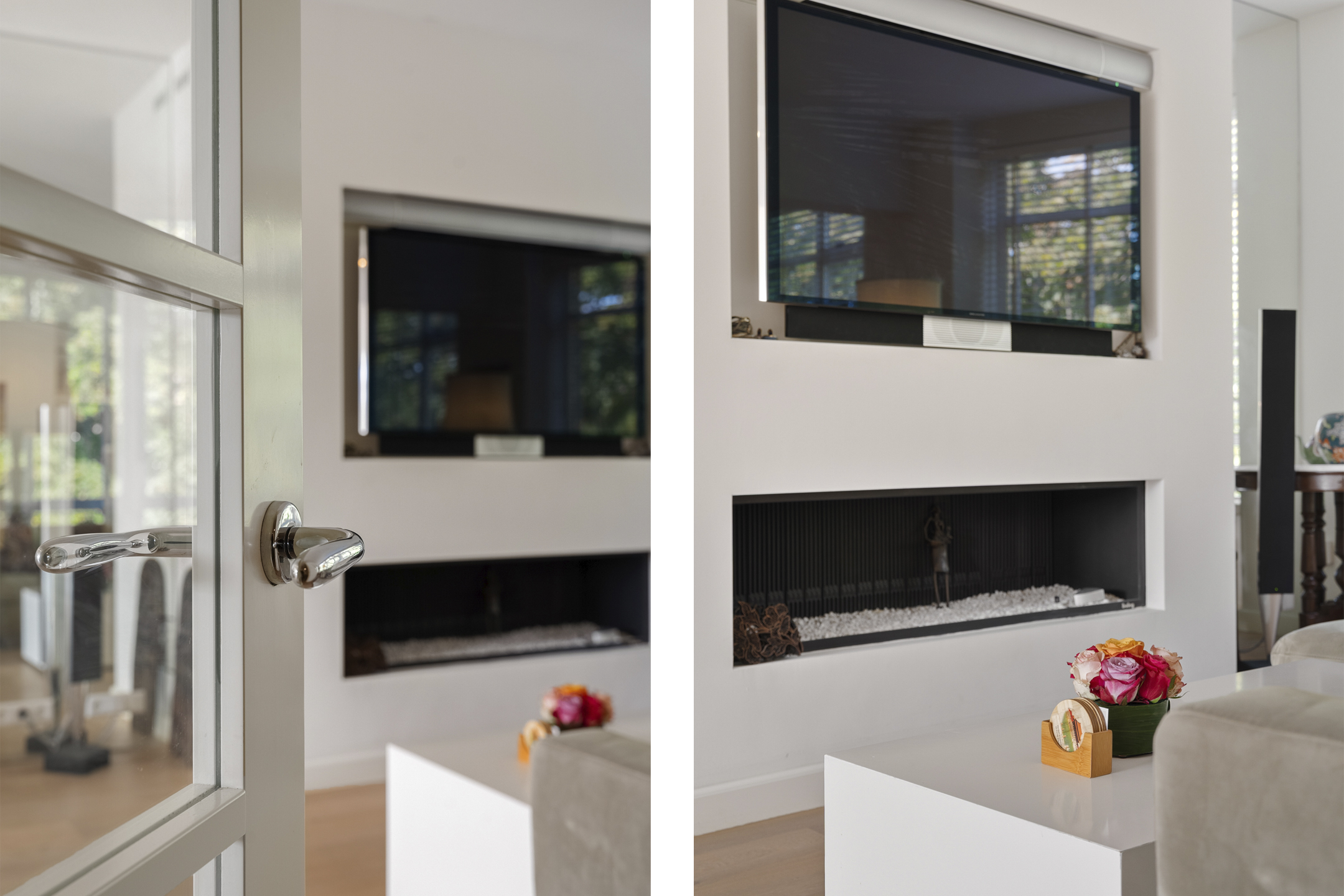 De royale woonkamer met cinewall en geïntegreerde Bang & Olufsen-geluidsinstallatie vormt het hart van de woning. Aan de voorzijde is een ruime werkhoek gecreëerd. Centraal ligt de luxe badkamer, voorzien van ligbad, wastafelmeubel, vloerverwarming, handdoekradiator, inloopdouche en een toilet dat vanuit zowel de hal als de hoofdslaapkamer toegankelijk is.