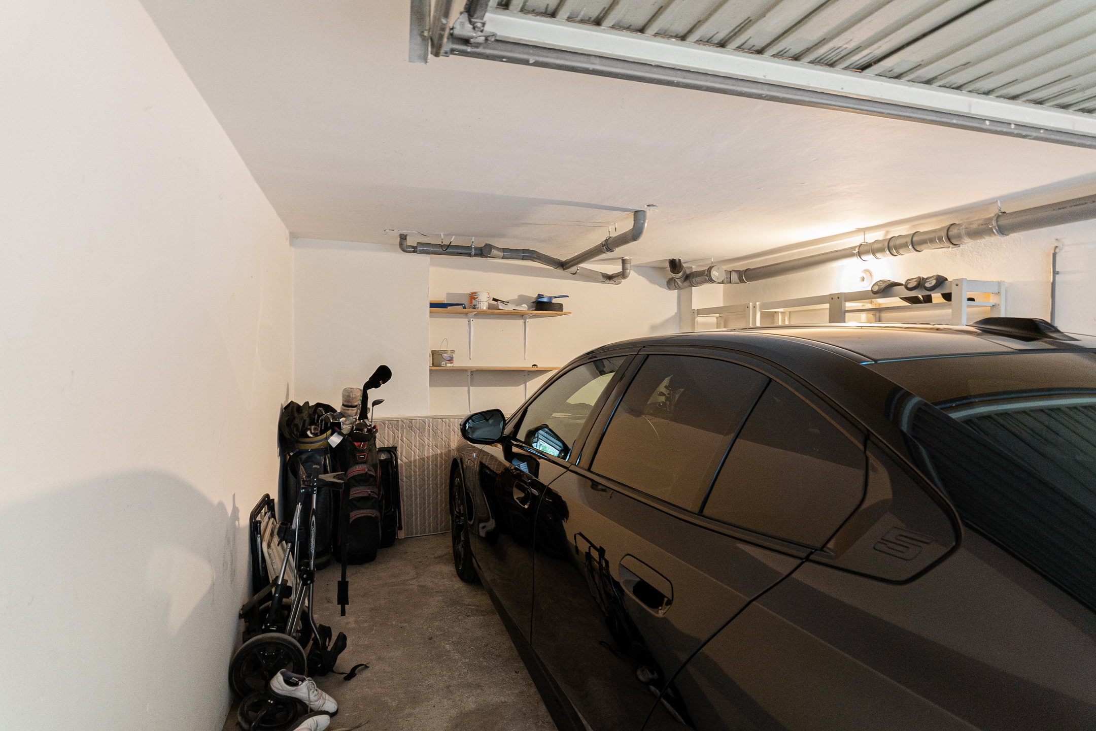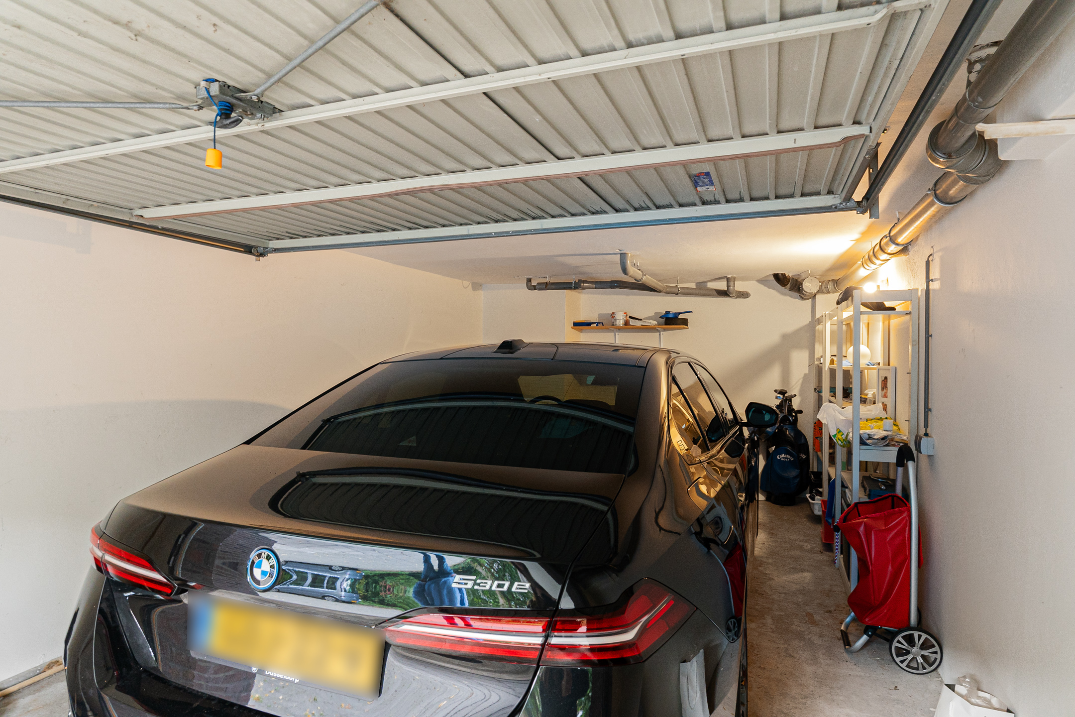 Het balkon aan de achterzijde beschikt over een vaste bergkast. Daarnaast heb je uitzonderlijk veel bergruimte: een eigen garage eventueel extra af te nemen, een berging in de onderbouw en nog twee separate bergingen.