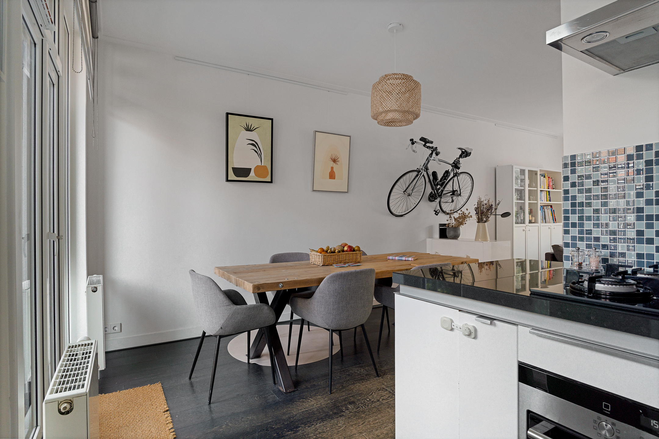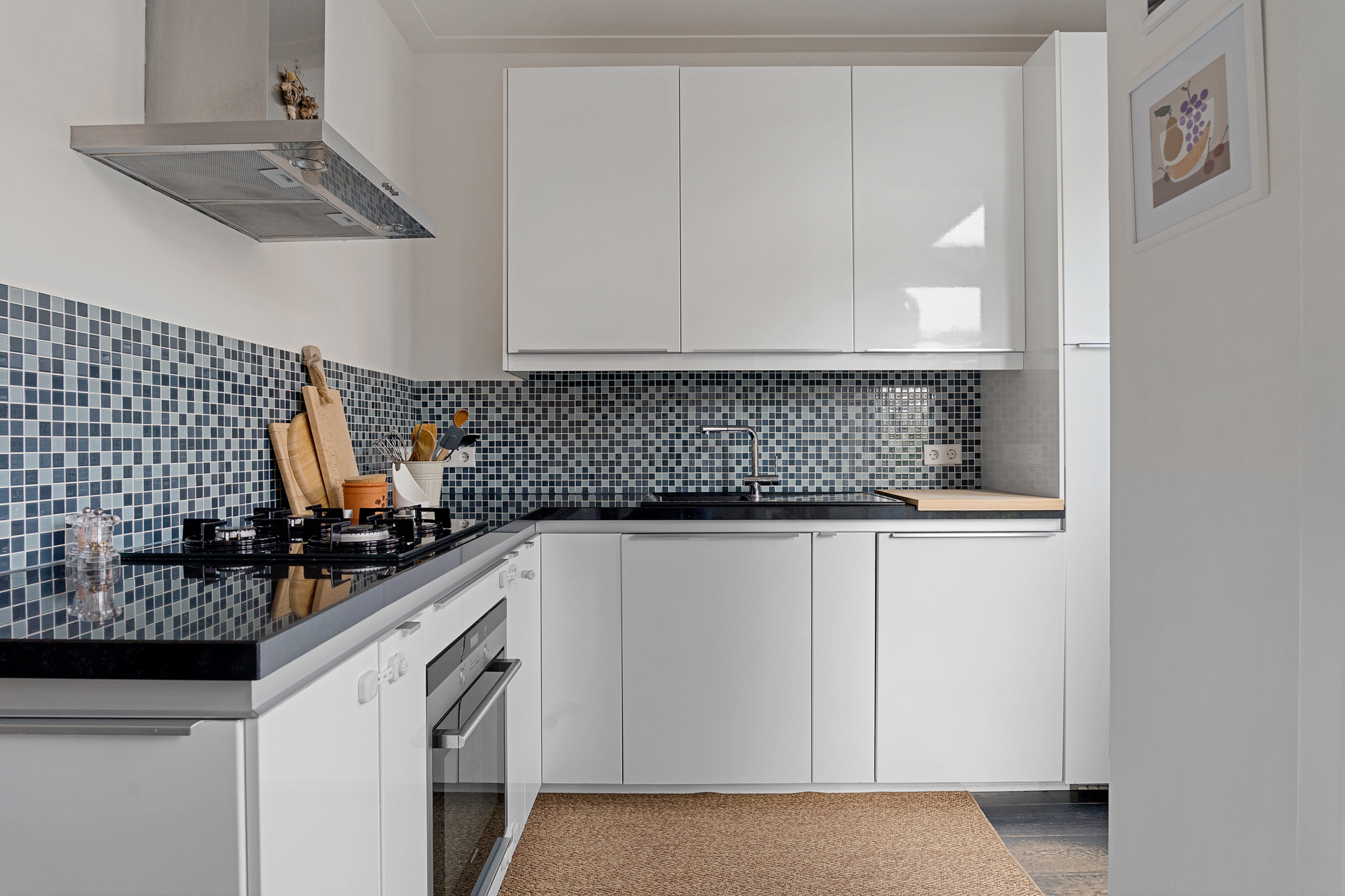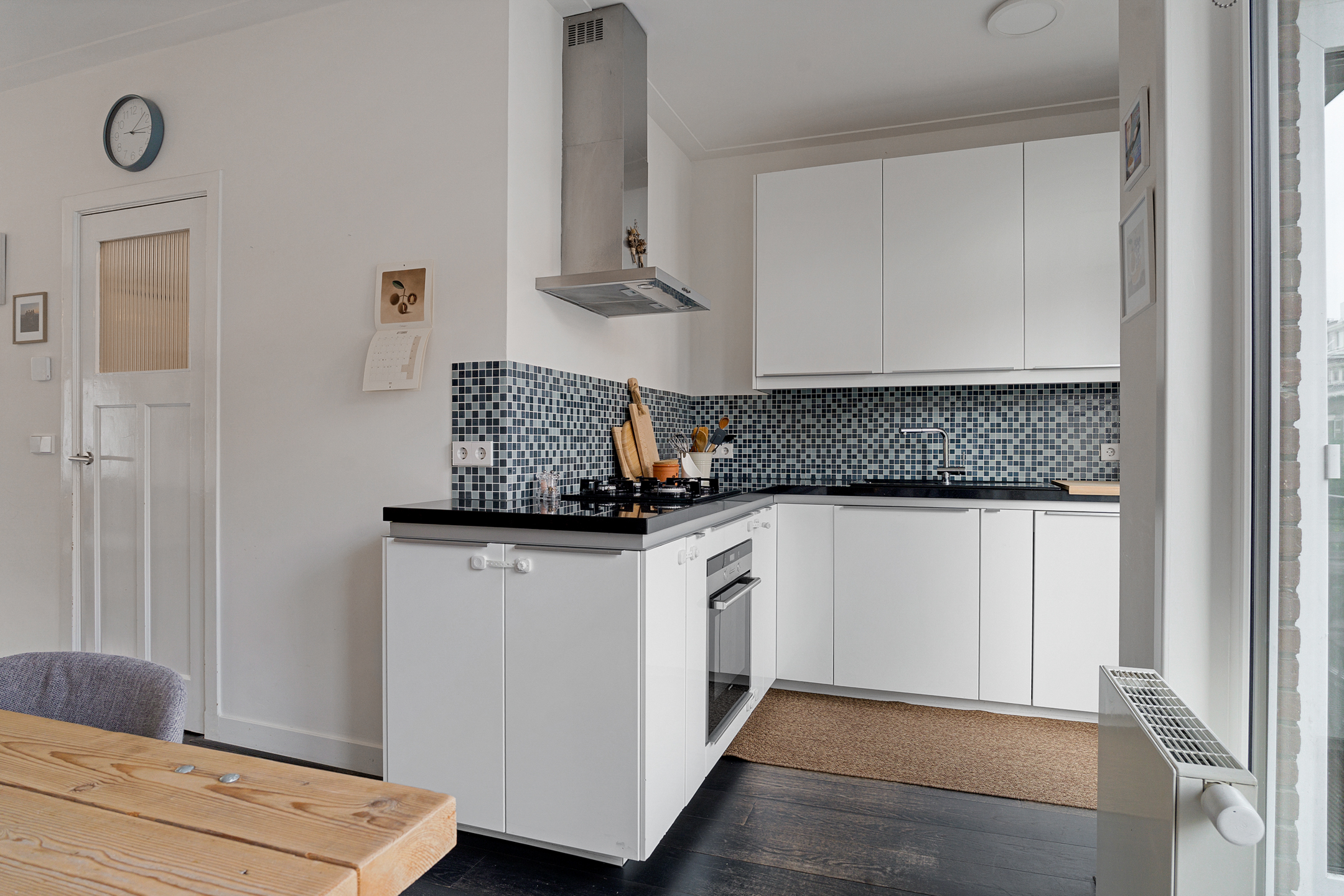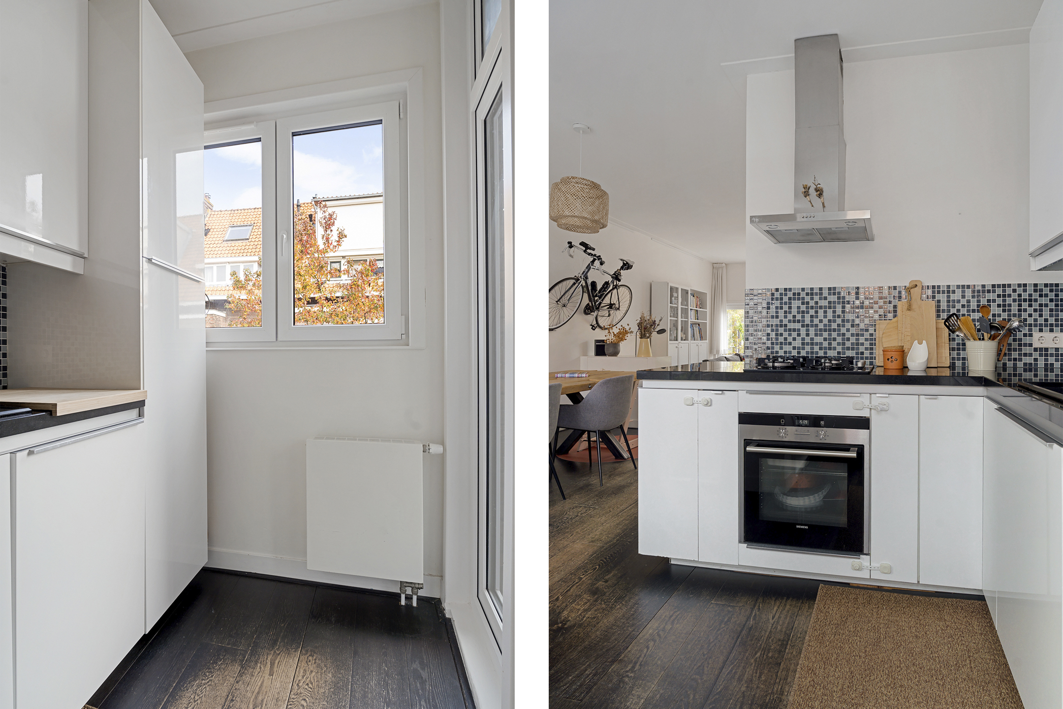 De open keuken is modern uitgevoerd en voorzien van diverse inbouwapparatuur. Vanuit hier stap je zo het balkon op, waar je fijn buiten kunt zitten.