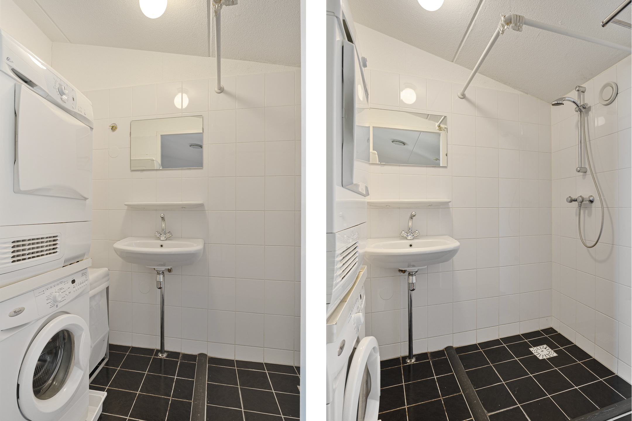 De bovenverdieping beschikt over een ruime overloop, een royale slaapkamer en een extra bergzolder waar eenvoudig een vierde slaapkamer kan worden gerealiseerd. Daarnaast bevindt zich hier de tweede badkamer met inloopdouche, wastafel en de opstelling voor wasmachine en droger.
