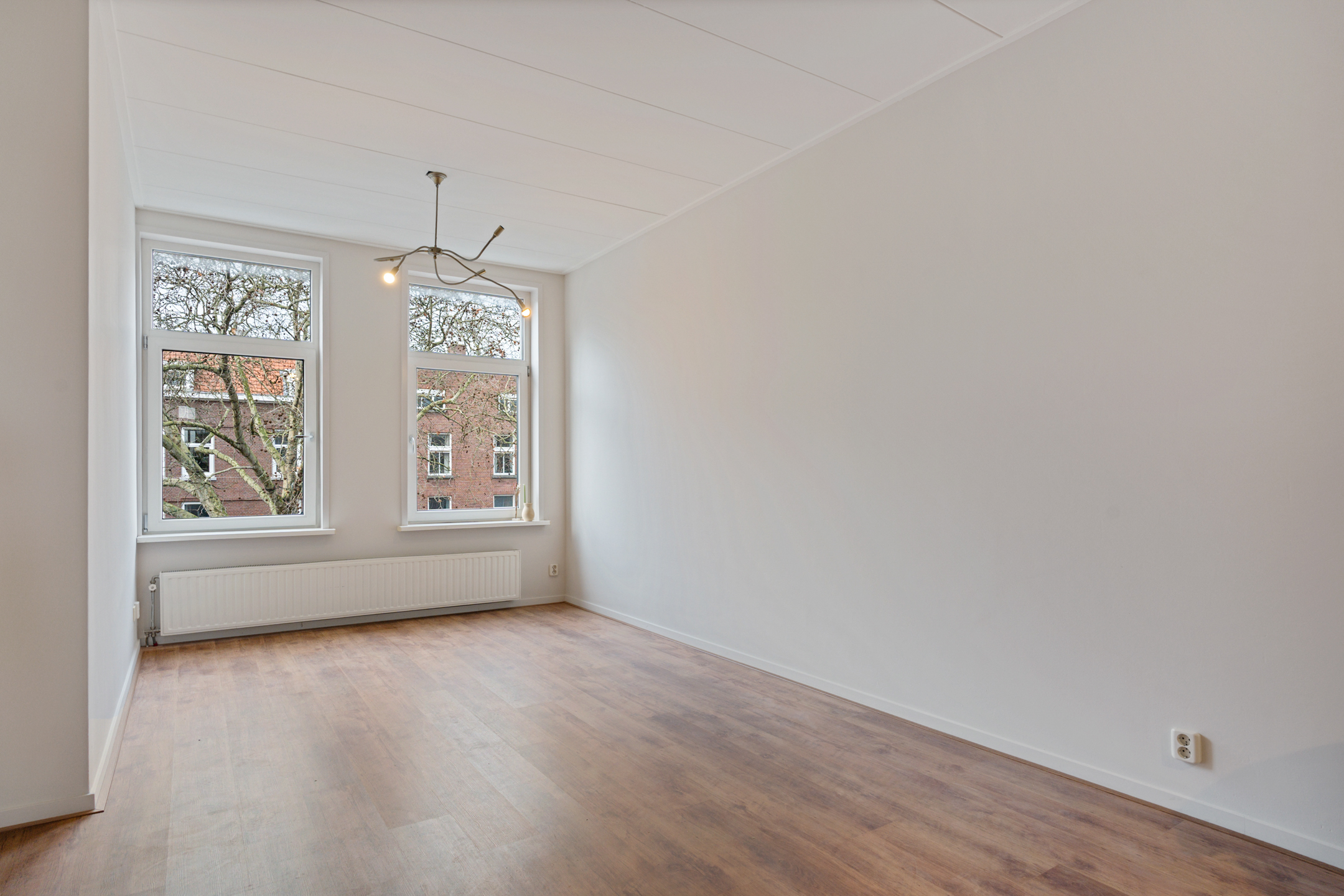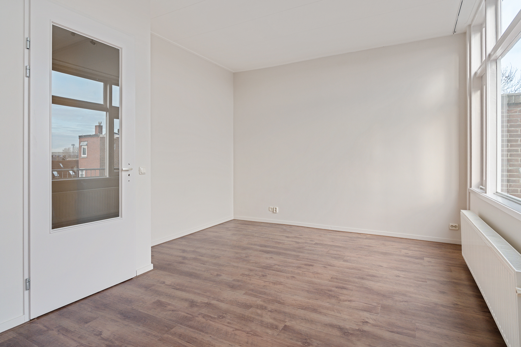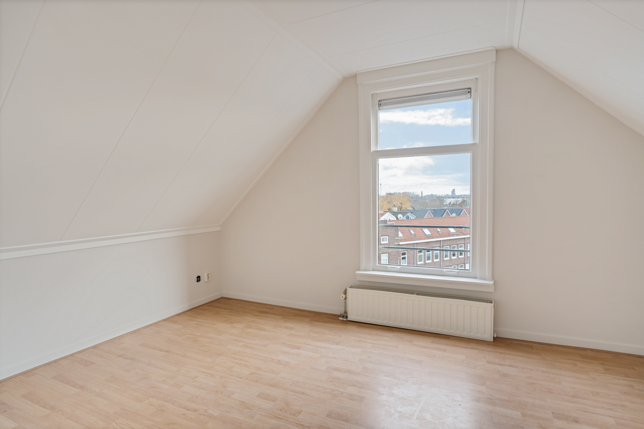 Via de vaste trap in de hal kom je op de derde verdieping. Hier bevindt zich de tweede slaapkamer, eveneens aan de achterzijde van de woning, wat zorgt voor extra rust en privacy. Dankzij de dakkapel is deze verdieping aangenaam licht en verrassend ruim.