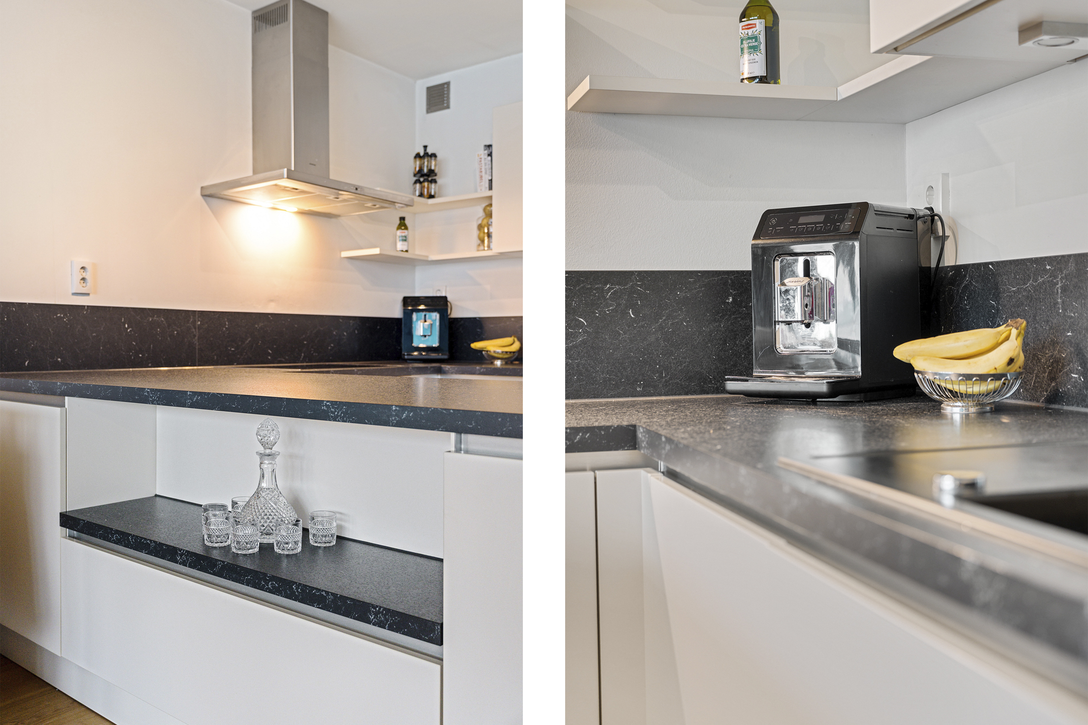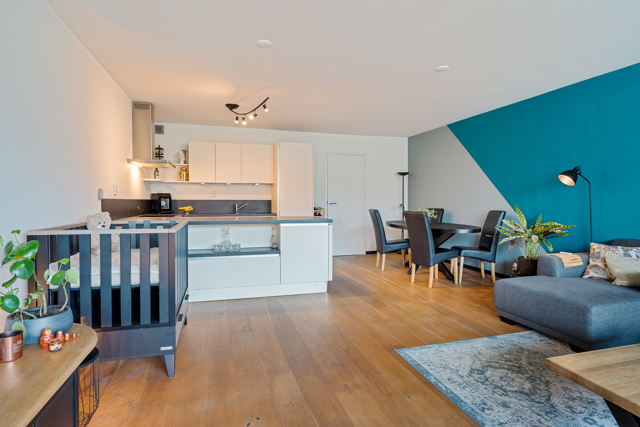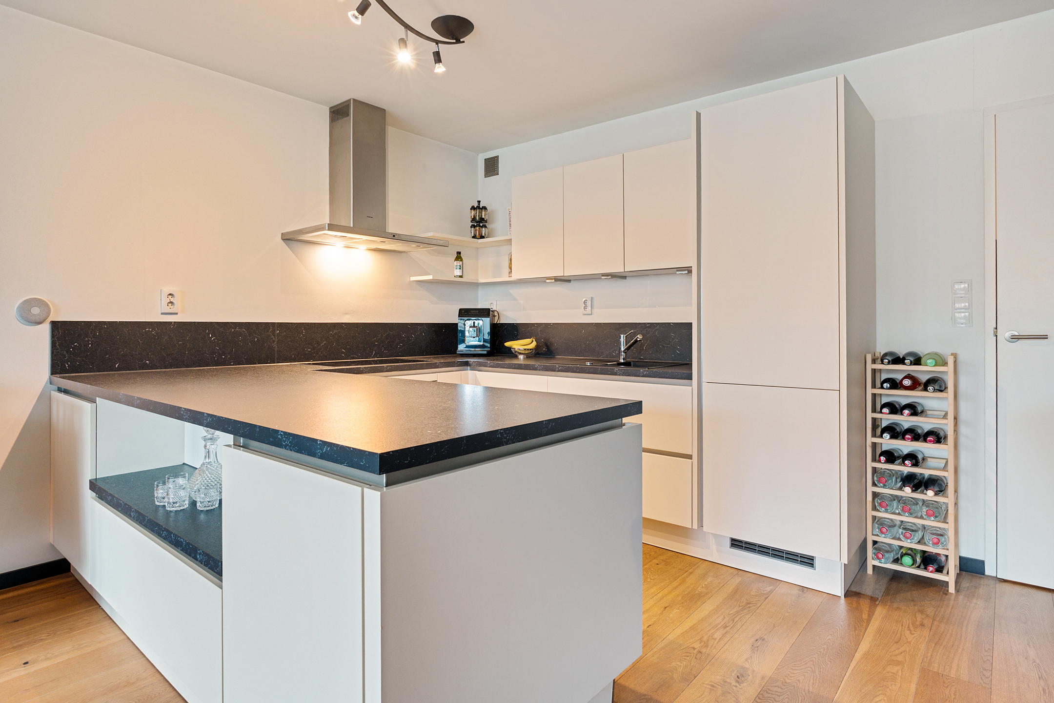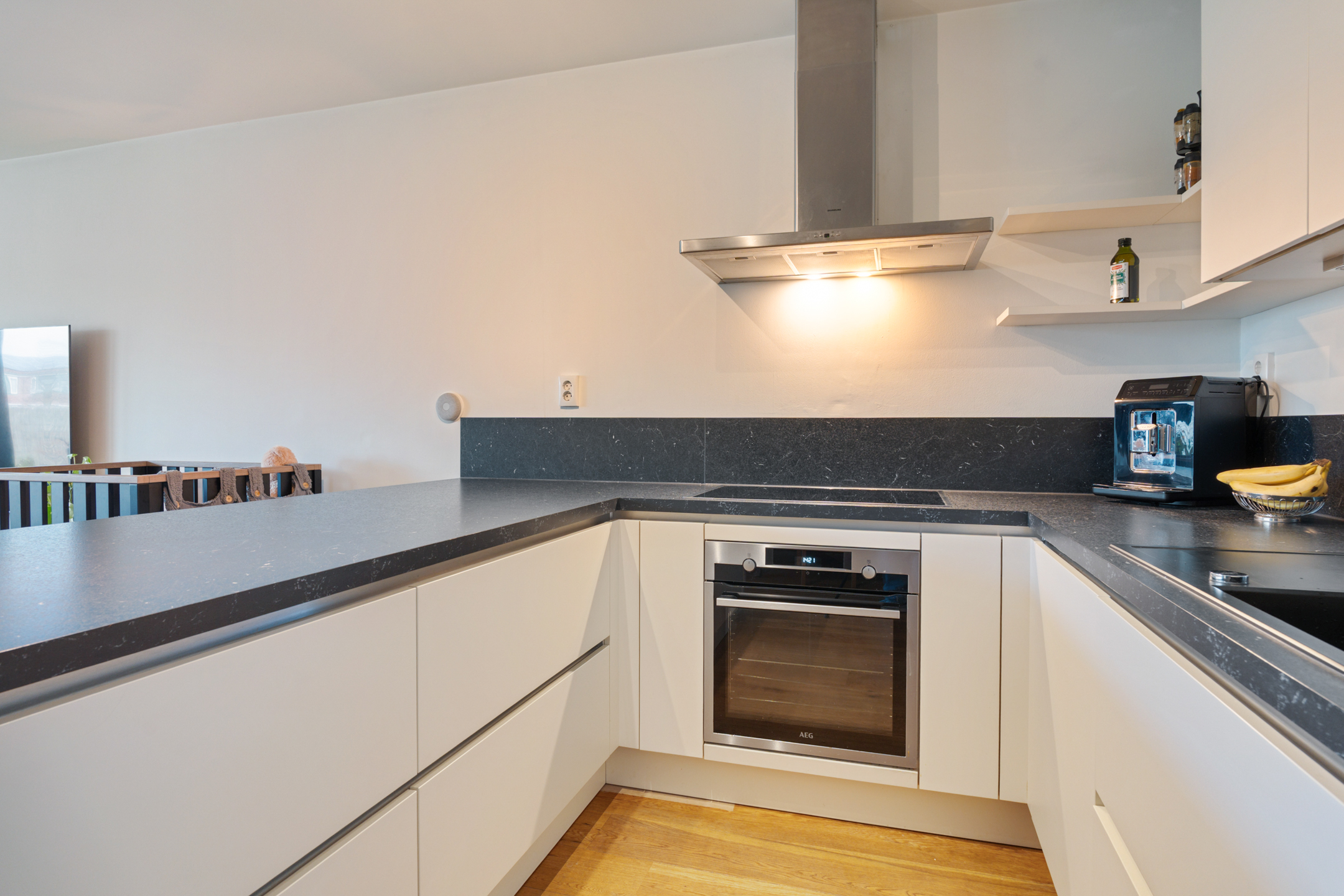 De grote open leefkeuken met schiereiland is modern uitgevoerd en voorzien van een inductiekookplaat, vaatwasser, koel-/vriescombinatie en een recent vernieuwde oven. Een prettige plek om te koken, te eten en samen te zijn.