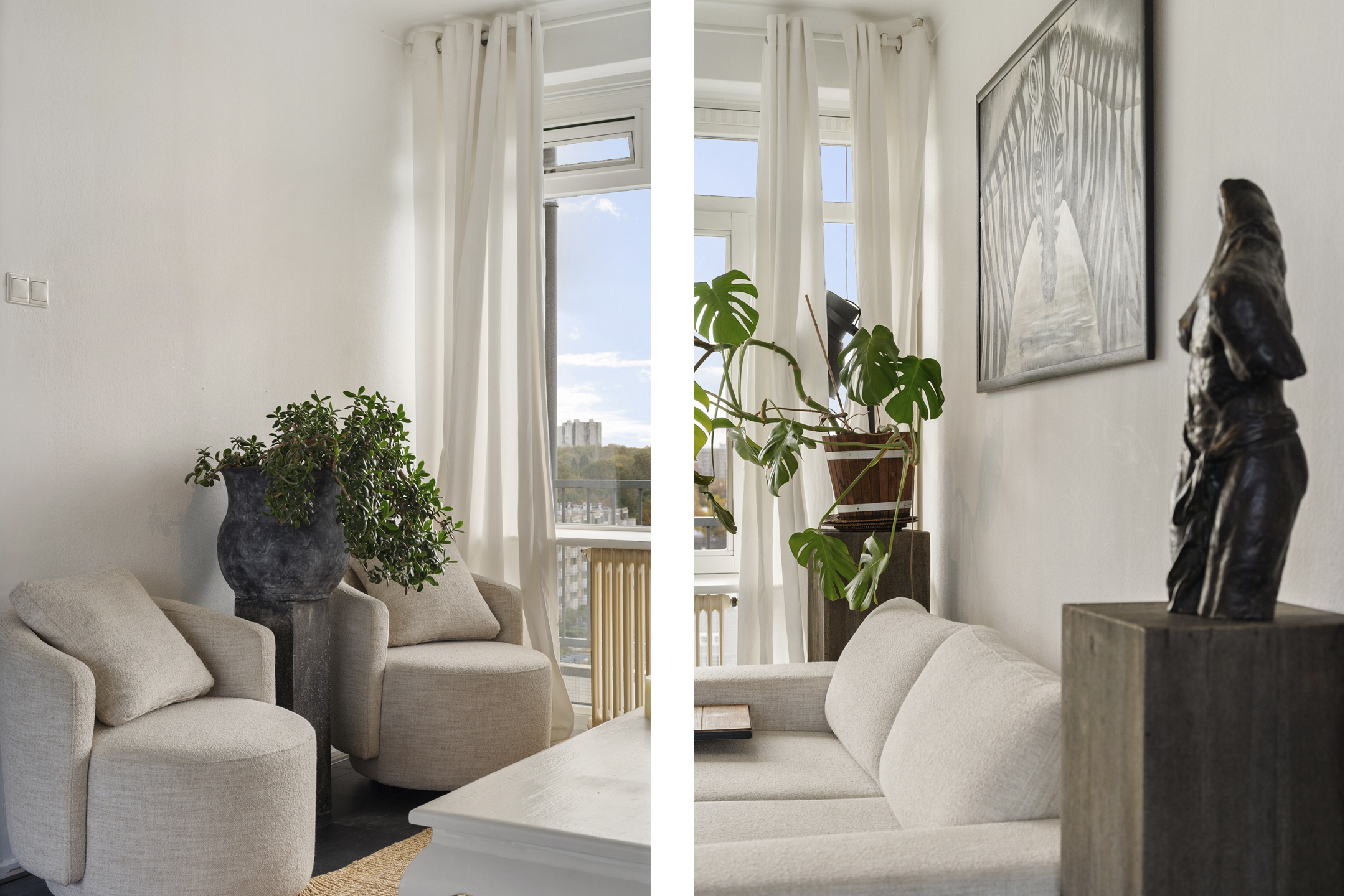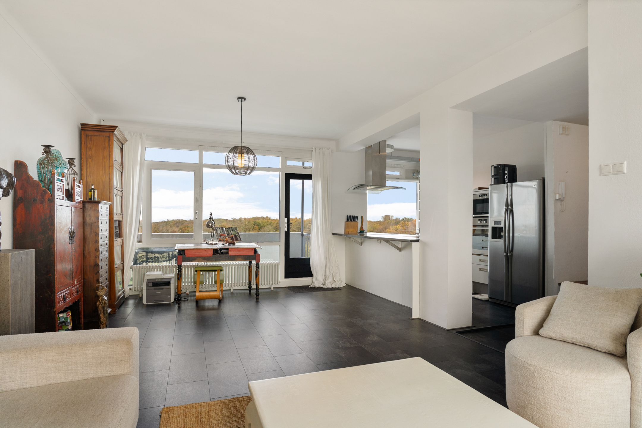 + Licht appartement met kamerbrede en kamerhoge raampartijen