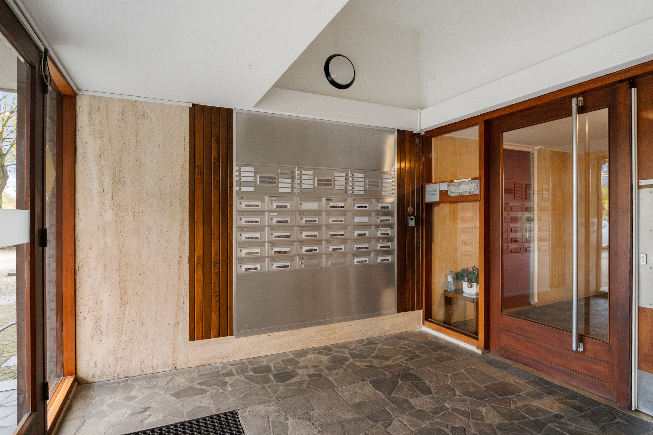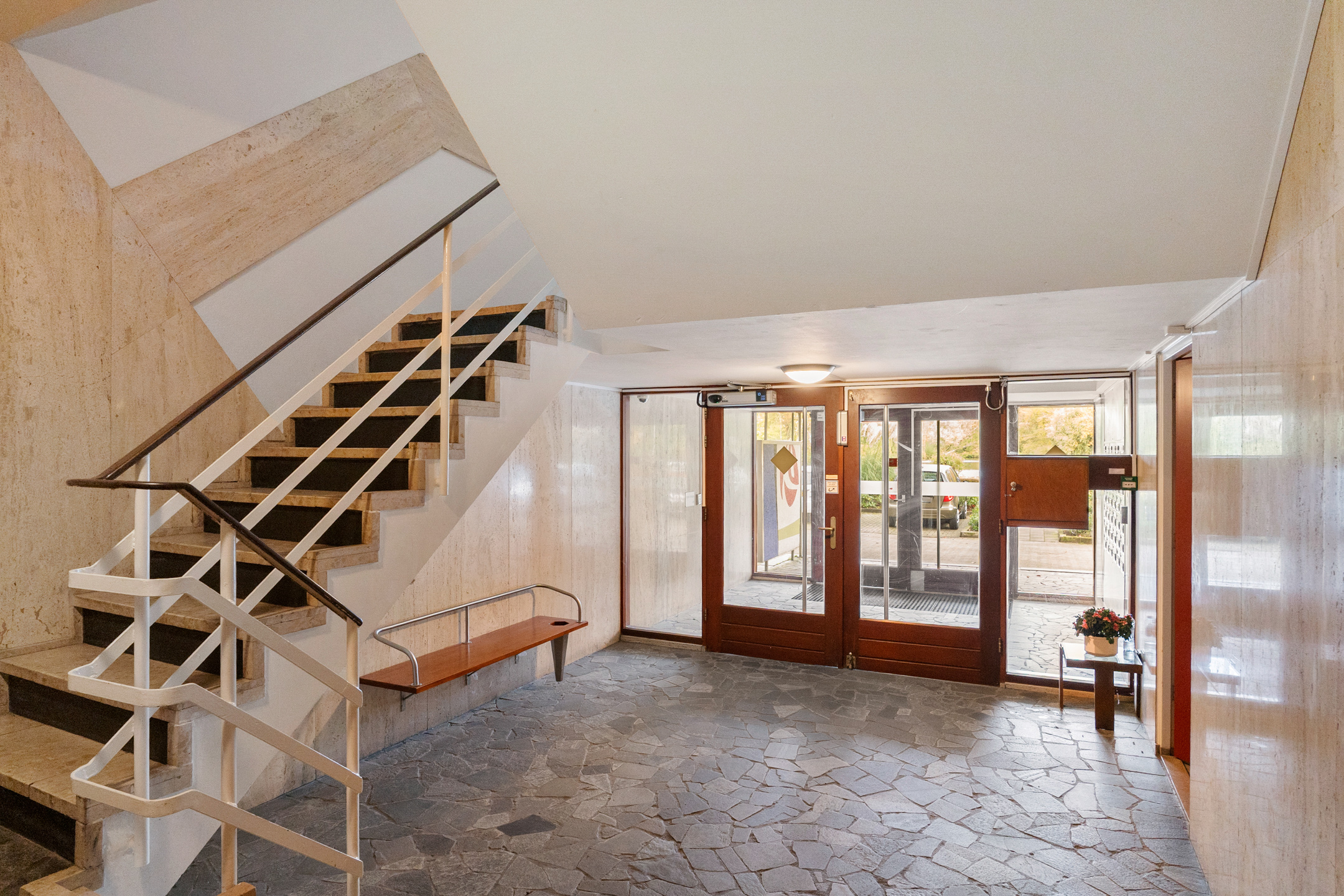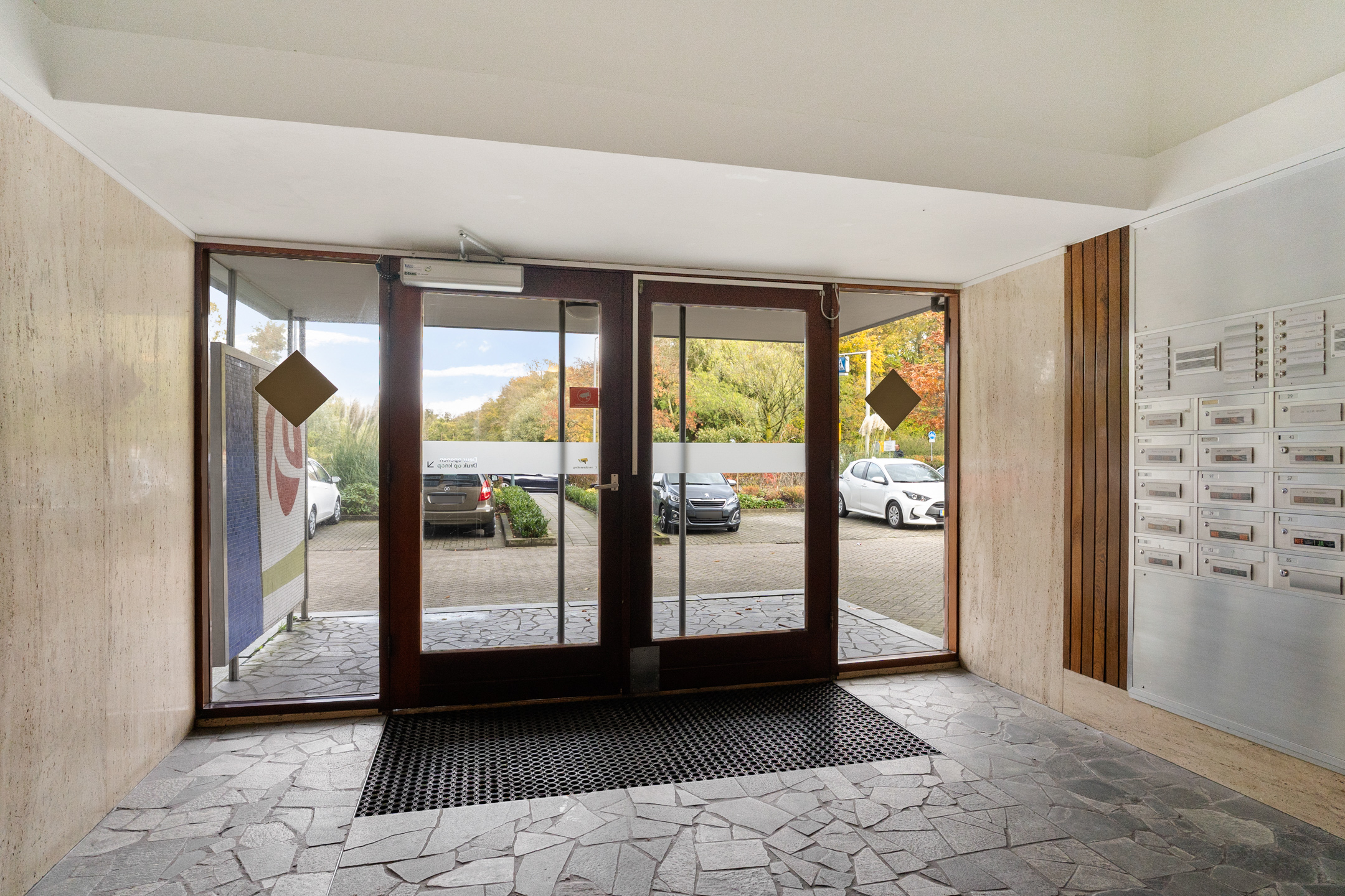 Vanuit 2 afgesloten entrees met bellentableaus en brievenbussen bereikt u de binnenhal, waar u de trap of één van de 2 liften naar de verdiepingen kunt nemen. In de onderbouw heeft u de beschikking over uw eigen berging voor extra opslagruimte, een algemene wasmachine- en droogruimte en een gemeenschappelijke fietsenberging. Parkeren doet u op het onlangs vergrote en afgesloten parkeerterrein.