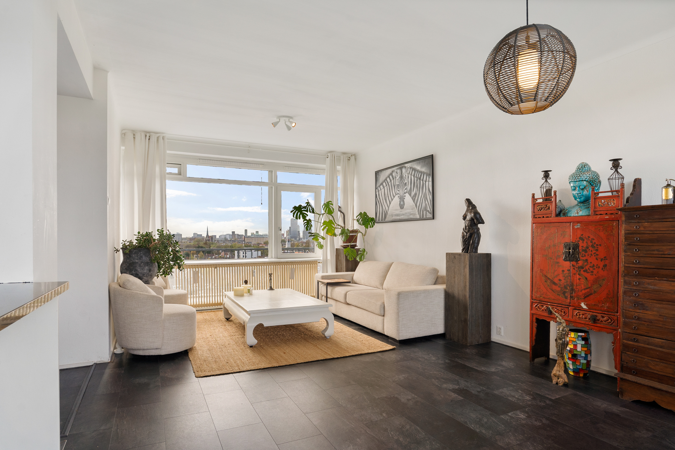 Met het Kralingse Bos en de Kralingse Plas pal voor uw neus en de skyline van de stad aan de andere kant, zal het uitzicht vanuit dit appartement u geen seconde vervelen. Of u nu op uw balkon staat of door één van de enorme ramen kijkt: vanuit alle ruimtes heeft u een adembenemend en verstrekkend uitzicht.