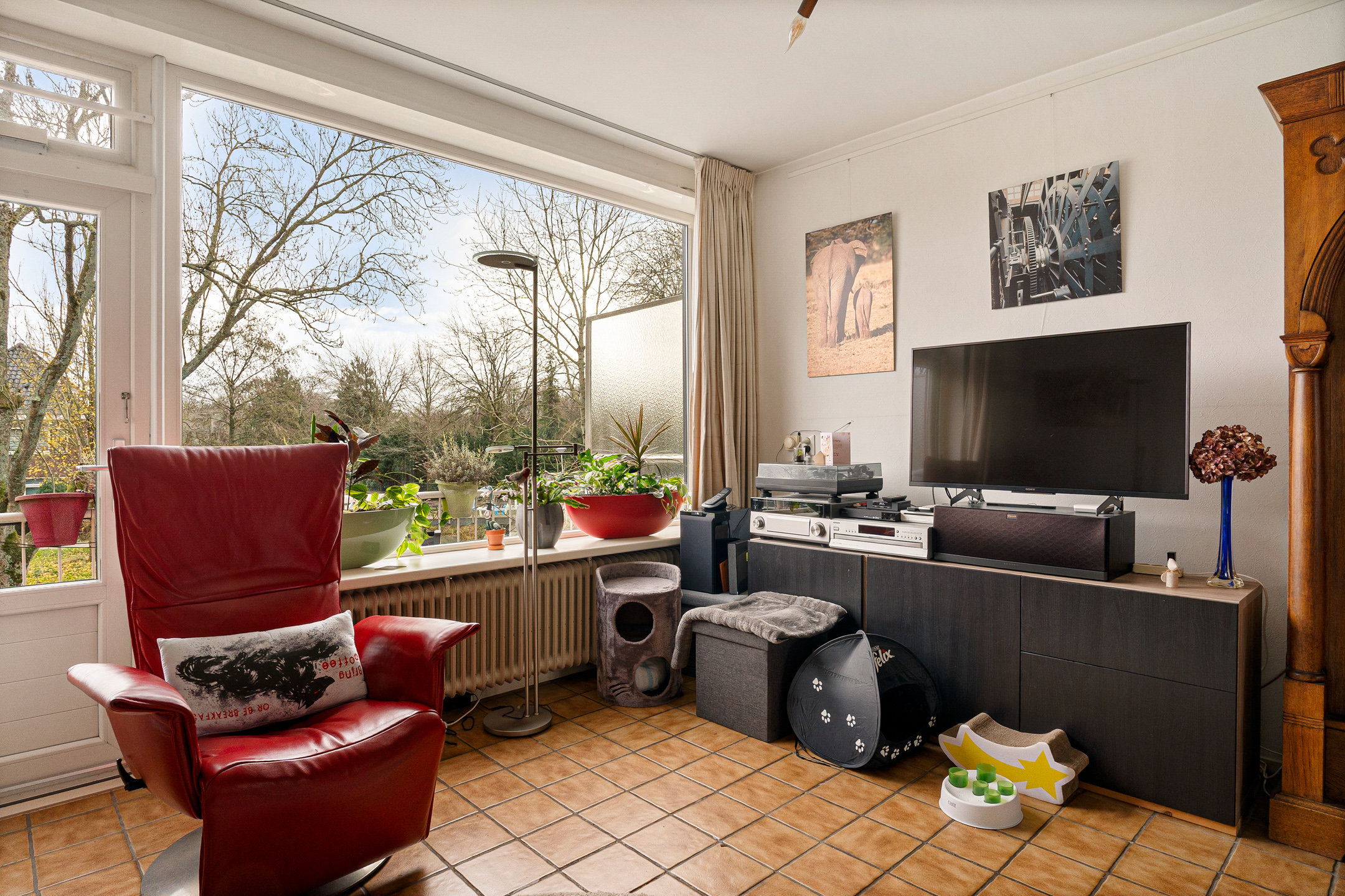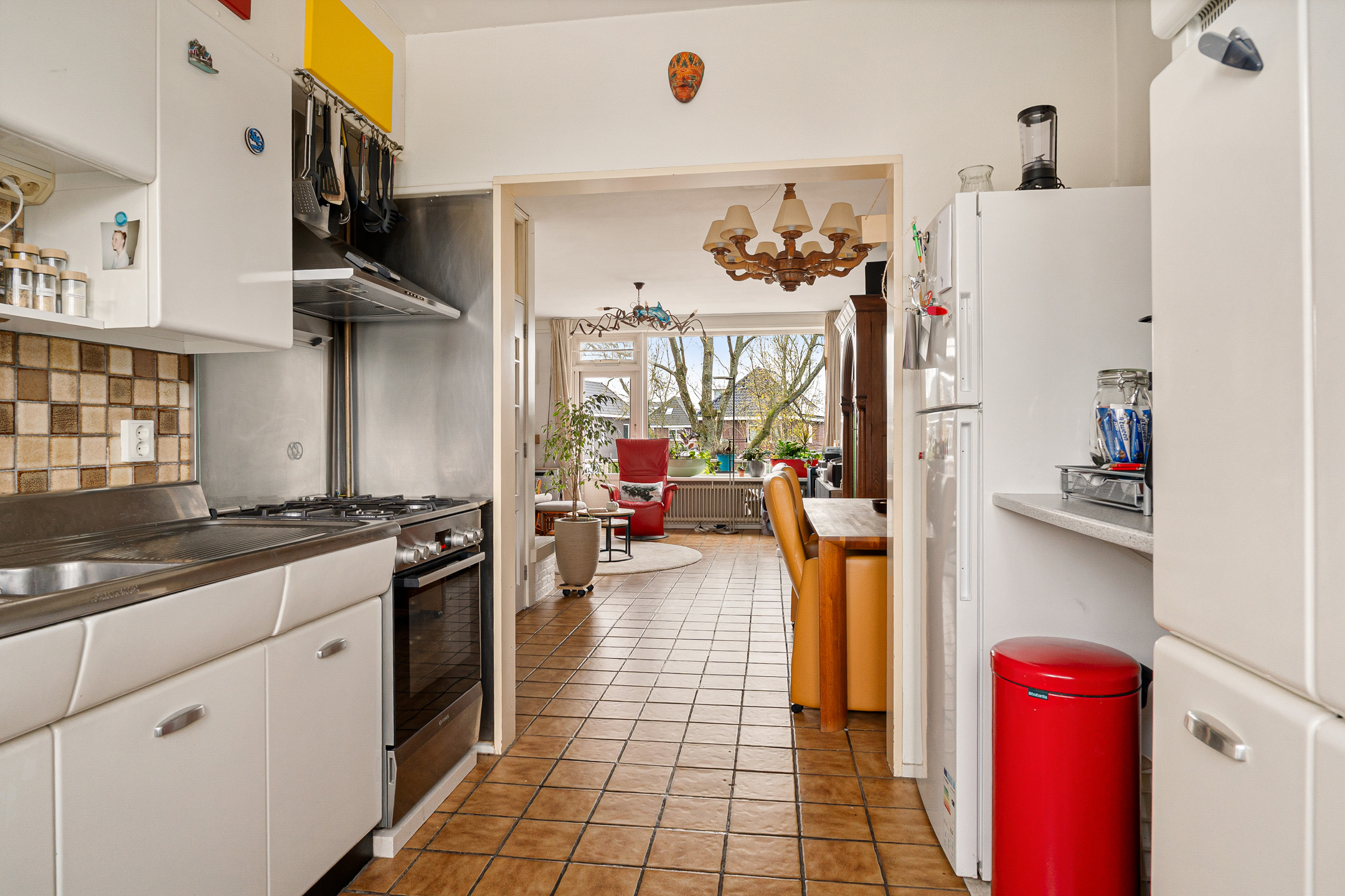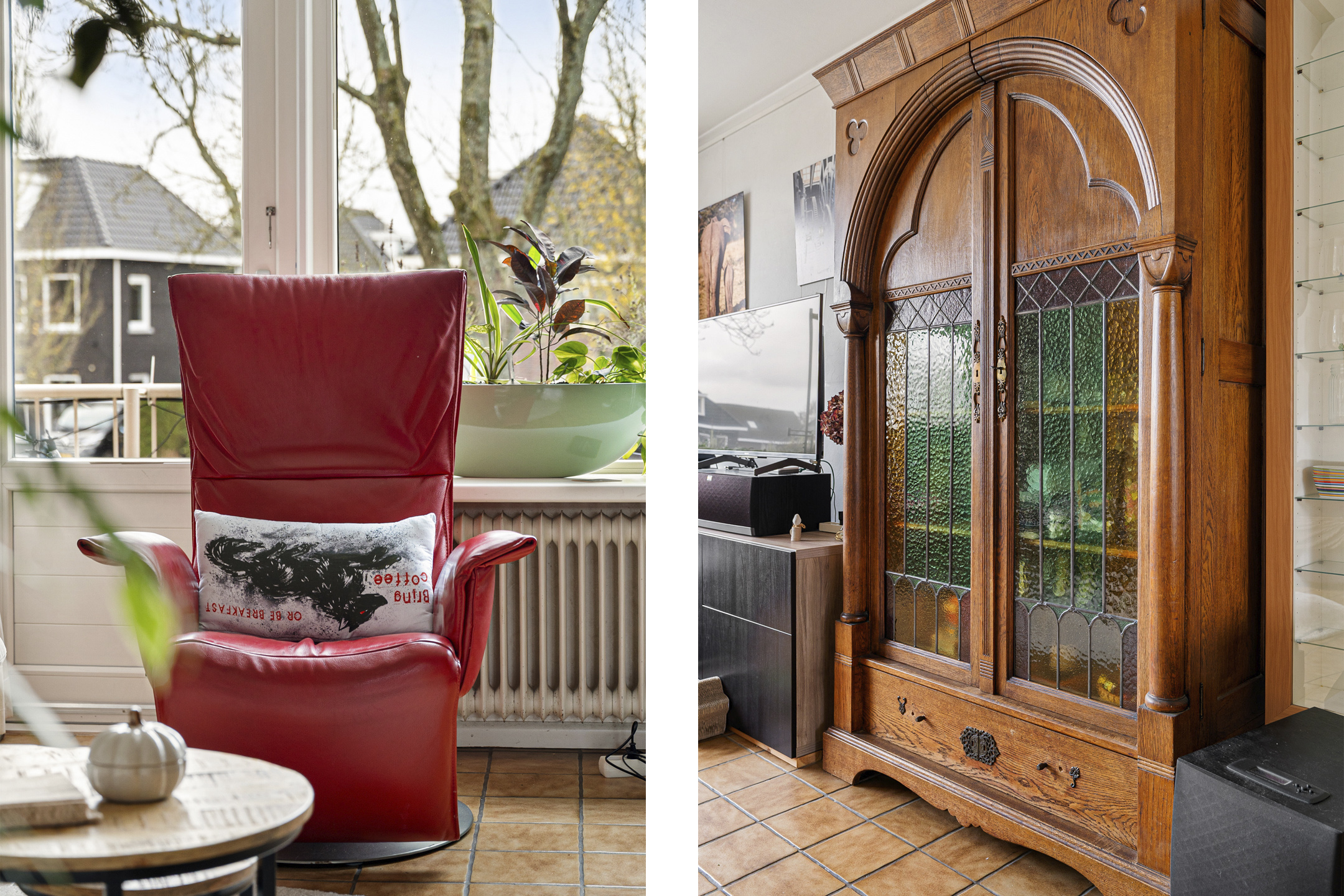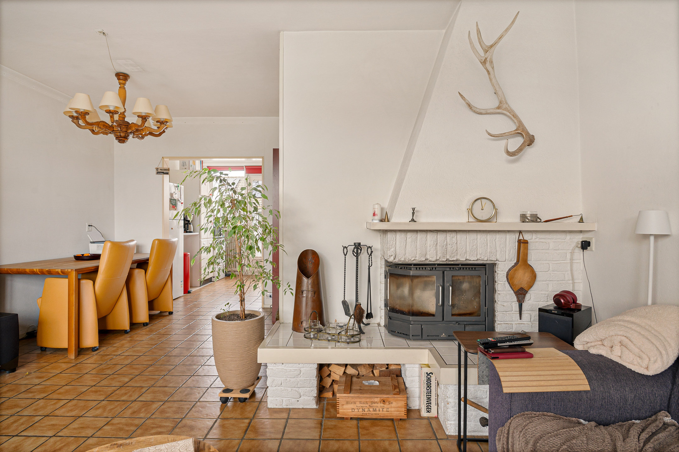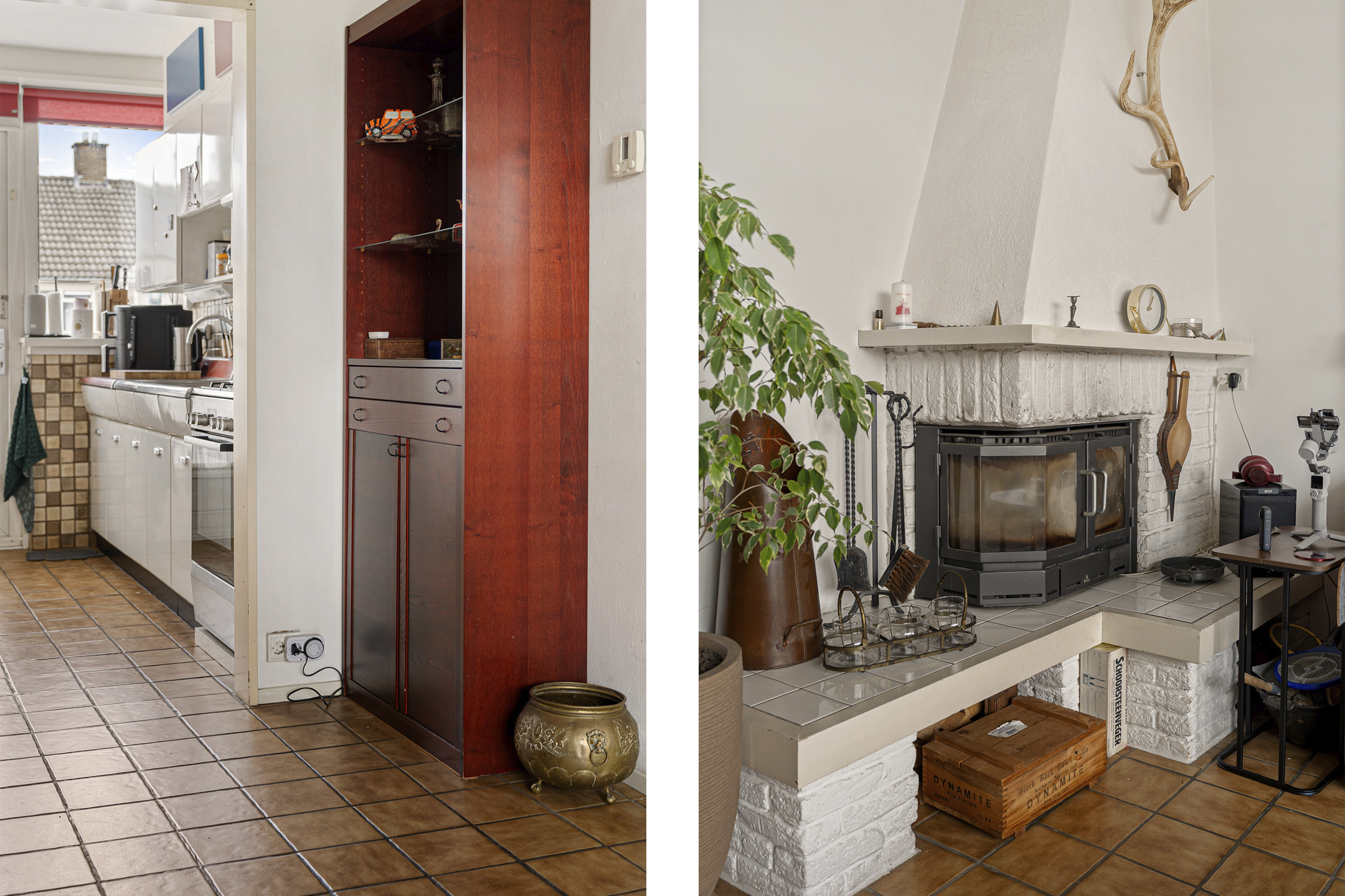 Aan de achterzijde ligt de ruime, lichte woonkamer met grote raampartijen en toegang tot het achterbalkon. Zo ontstaat een prettige verbinding tussen binnen en buiten en profiteer je van veel daglicht. De woonkamer is eveneens voorzien van een sfeervolle inbouwhaard met warmtewisselaar/ventilatiesysteem.