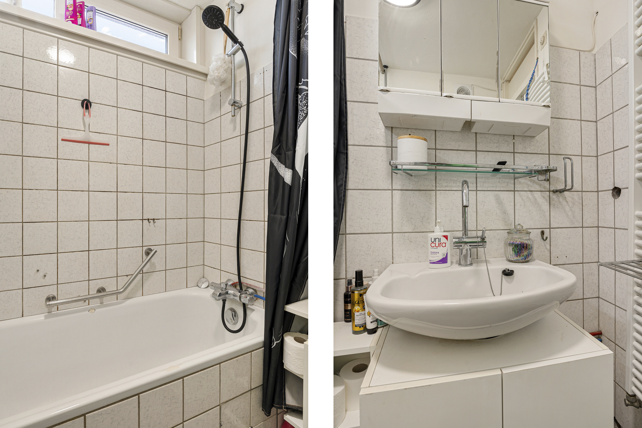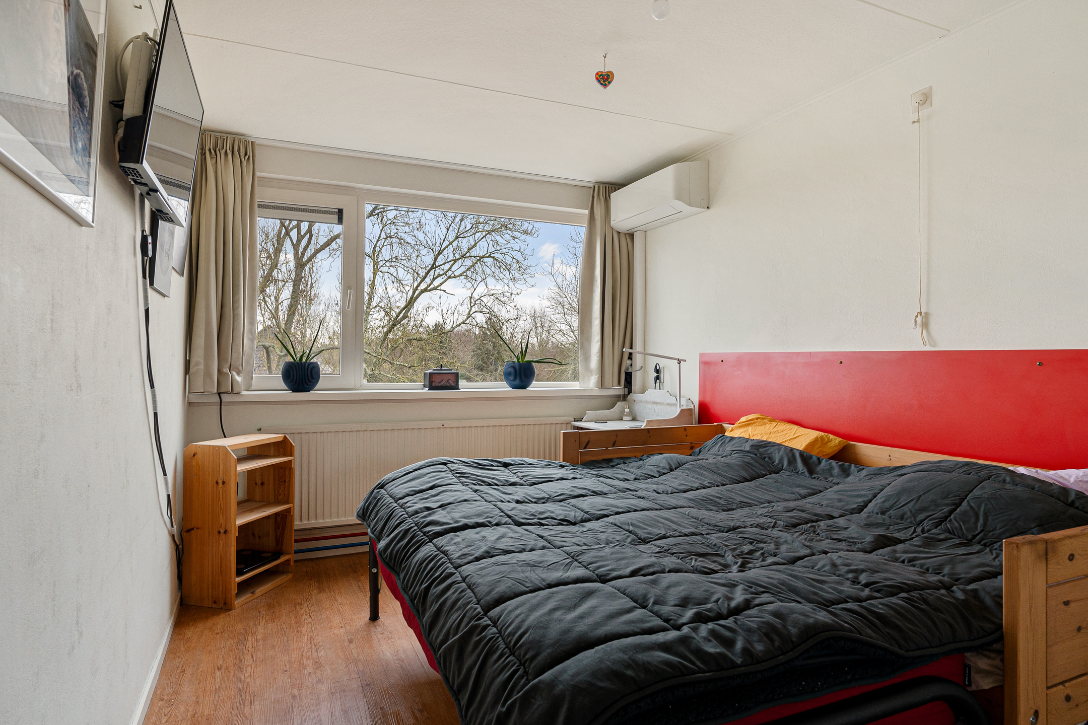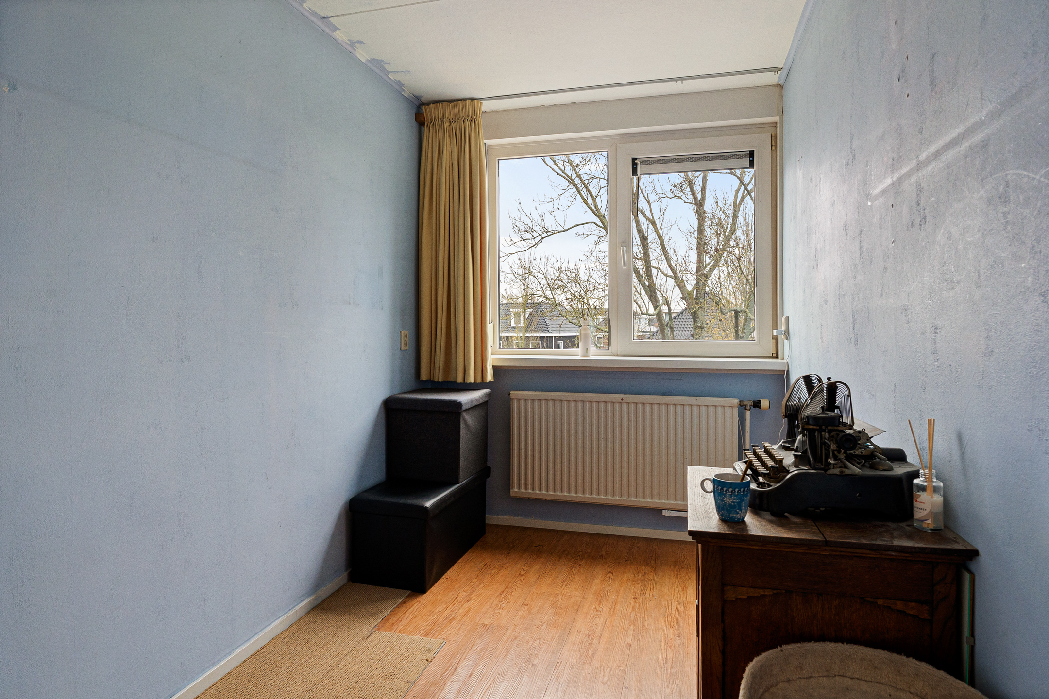 De tweede verdieping telt drie slaapkamers. Aan de voorzijde ligt een kamer met vaste kasten en een wastafel. Aan de achterzijde bevinden zich twee ruime slaapkamers van circa 13 m² en 7 m². De badkamer is functioneel en voorzien van ligbad, douche, toilet en wastafel