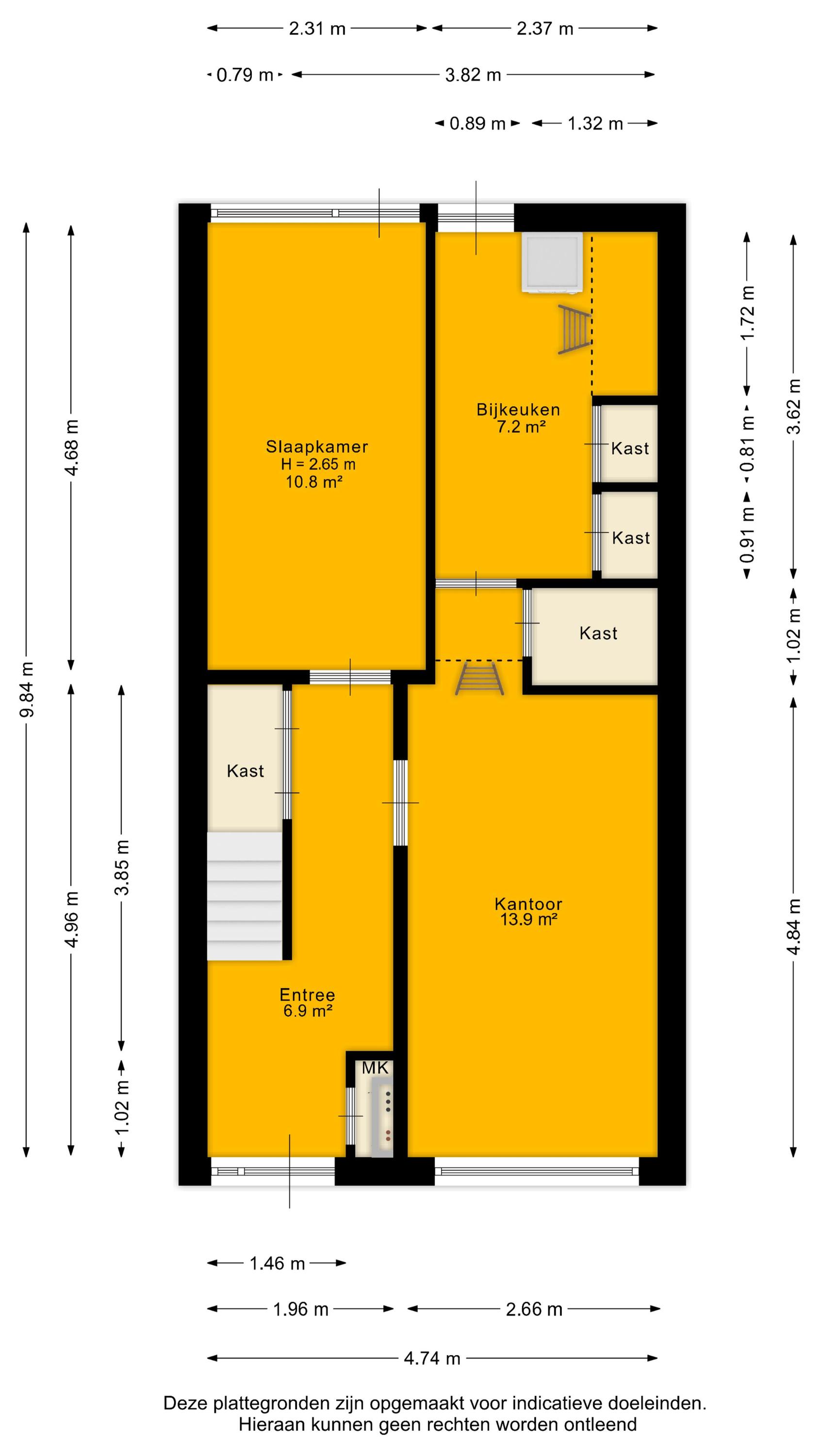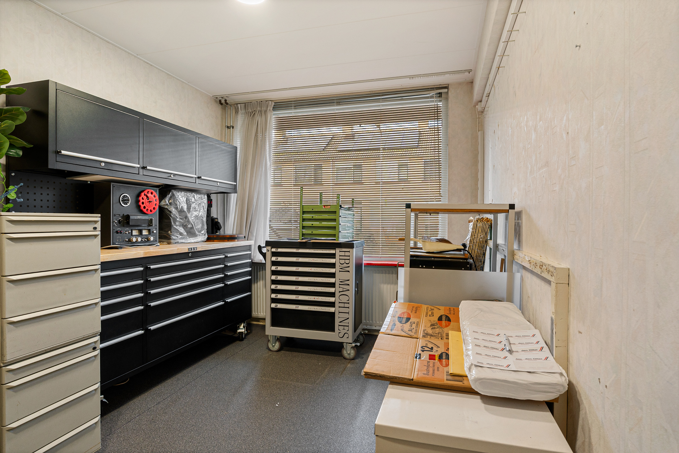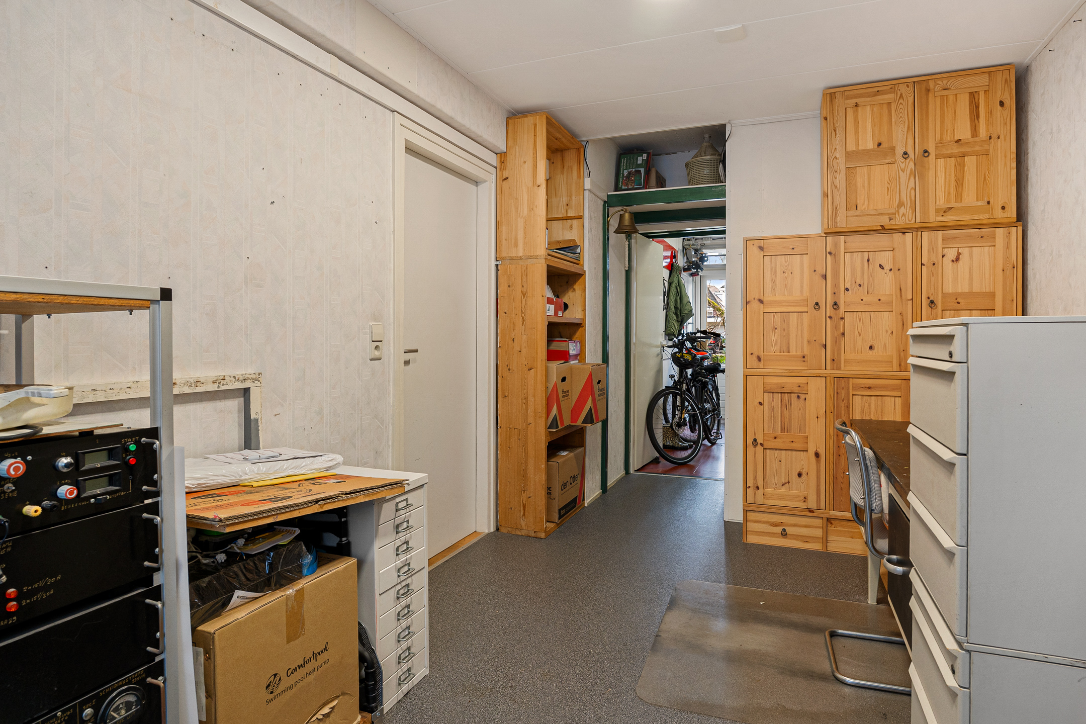 Je komt de woning binnen via de entree in een hal met meterkast, garderoberuimte en trapopgang. Aan de voorzijde bevindt zich een kamer die ideaal is als slaap-, werk- of hobbyruimte. Aan de achterzijde ligt een tweede slaapkamer en deze slaapkamer biedt toegang tot de tuin. Daarnaast is er een praktische bijkeuken met aansluitingen voor wasapparatuur, extra bergruimte en wederom toegang tot de achtertuin.