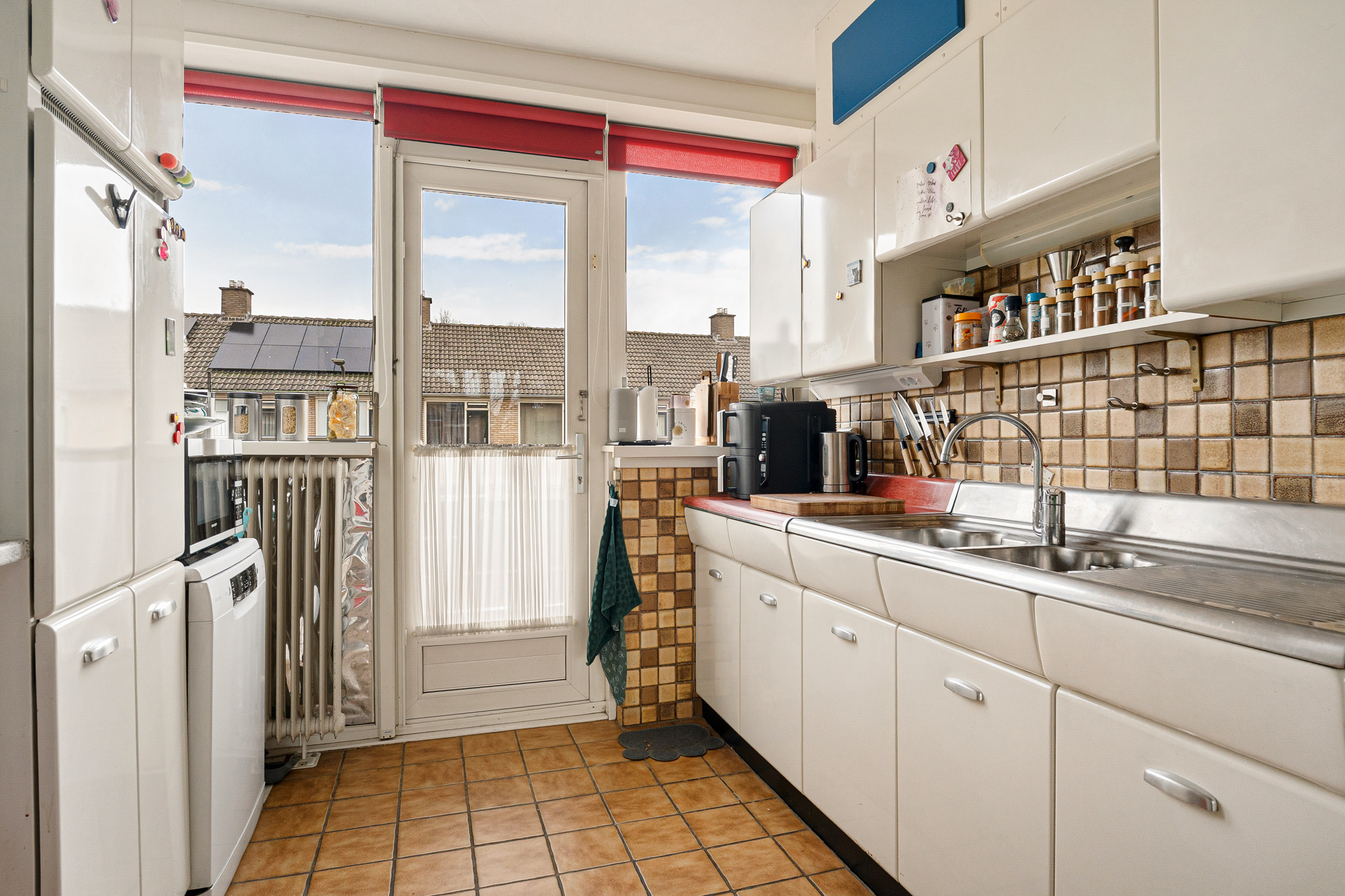 Op de eerste verdieping bevindt zich aan de voorzijde de praktische en lichte keuken met voldoende werk- en kastruimte. Vanuit de keuken is het balkon aan de voorzijde bereikbaar. Op deze verdieping vind je ook een separaat toilet en een vaste kast.