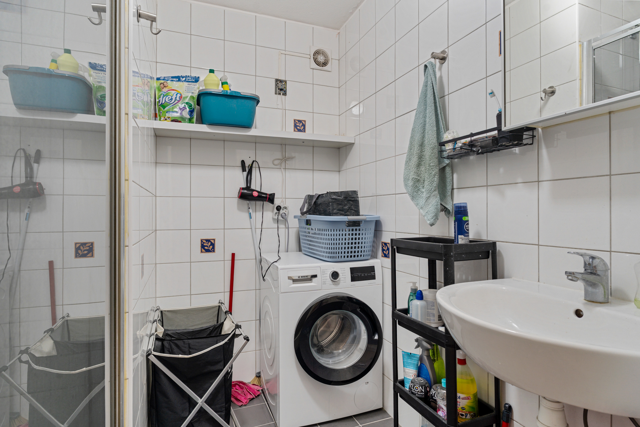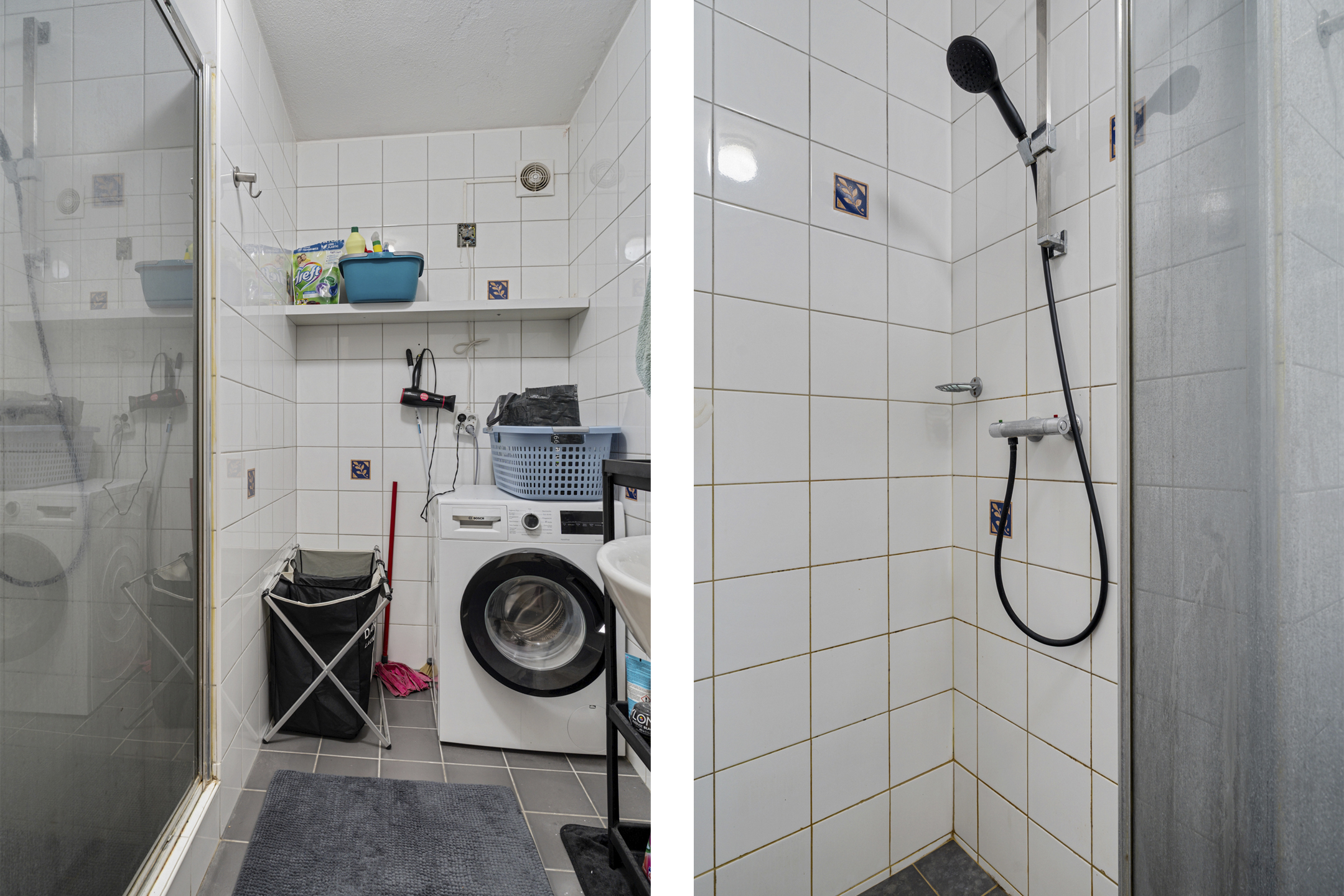 + Badkamer met douche, wastafel en wasmachineaansluiting