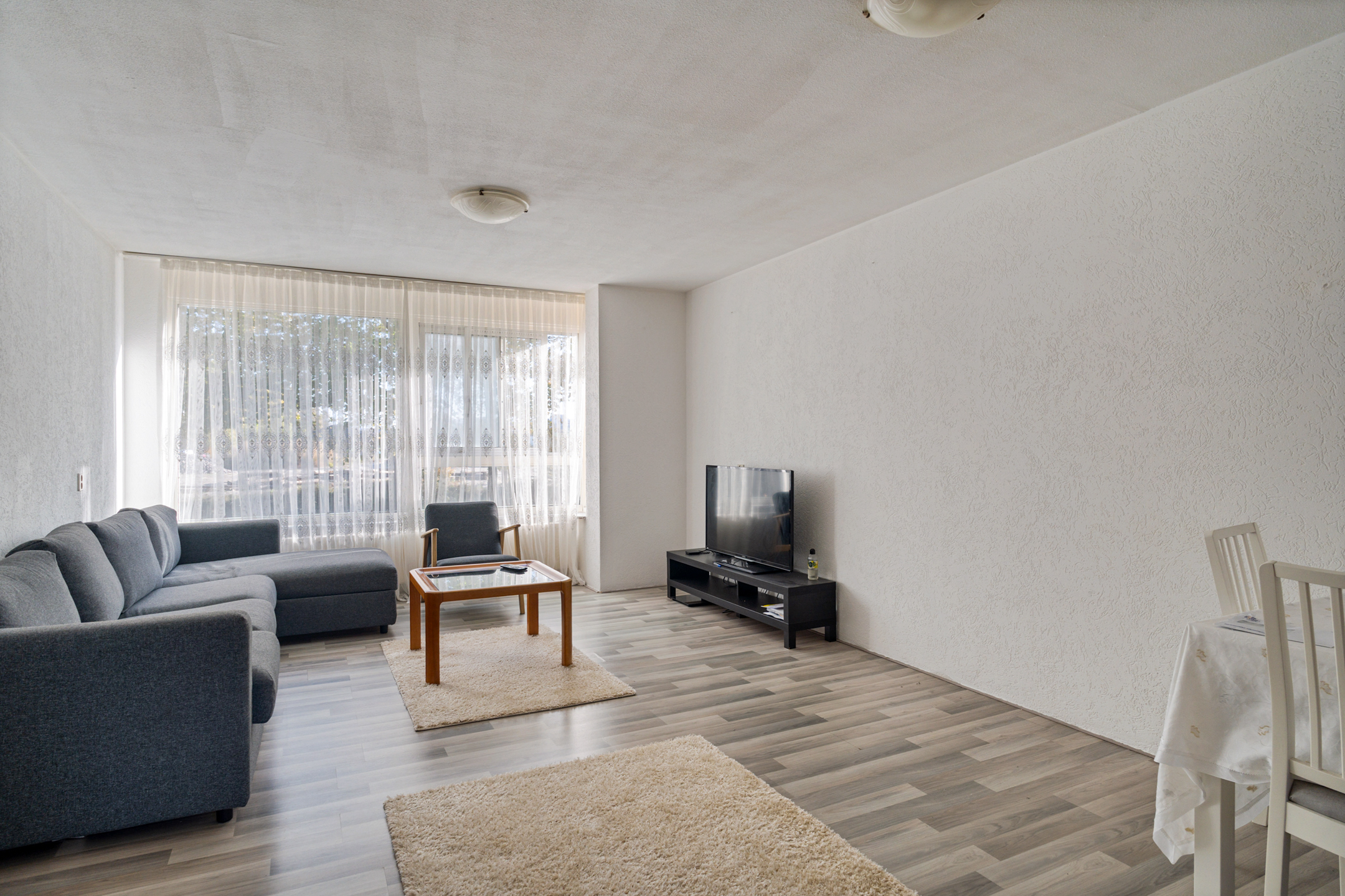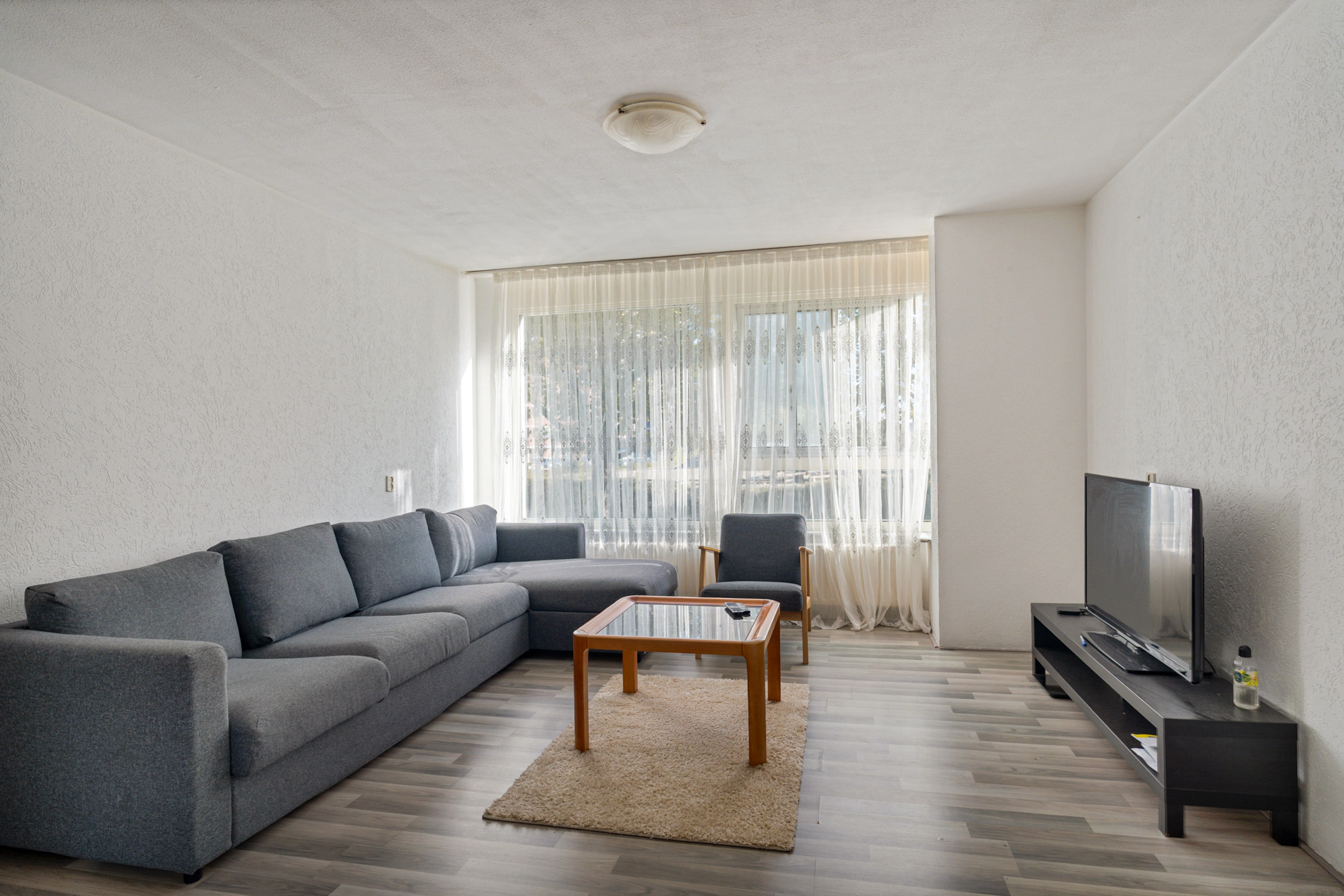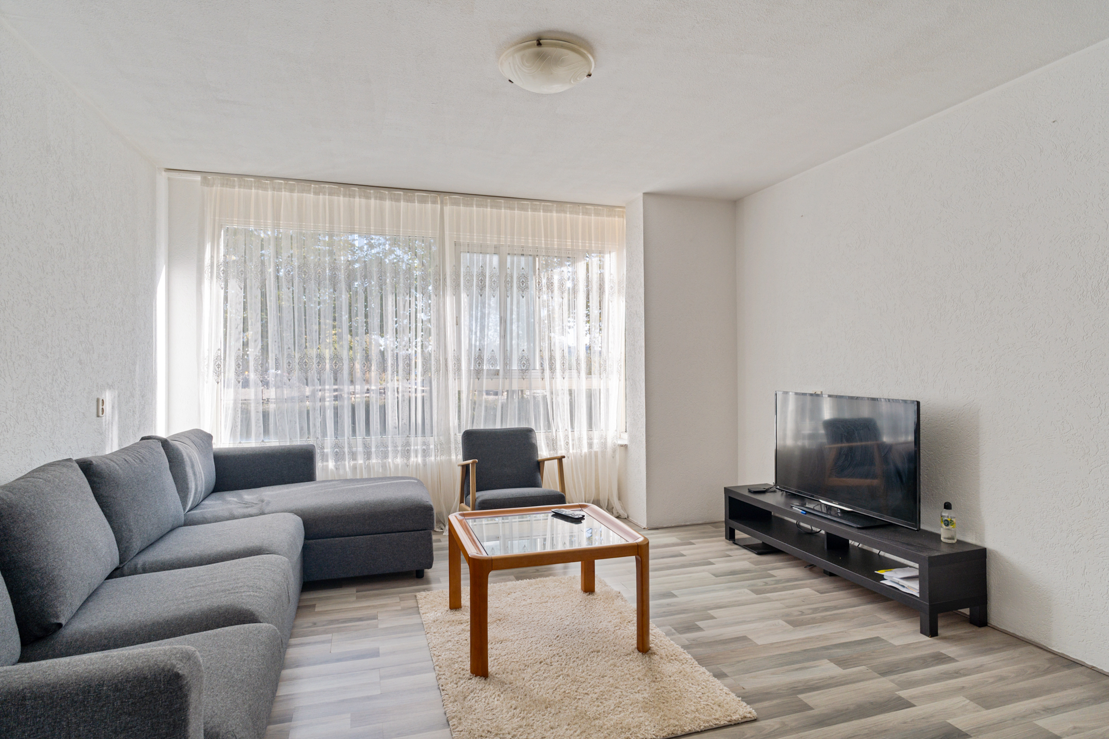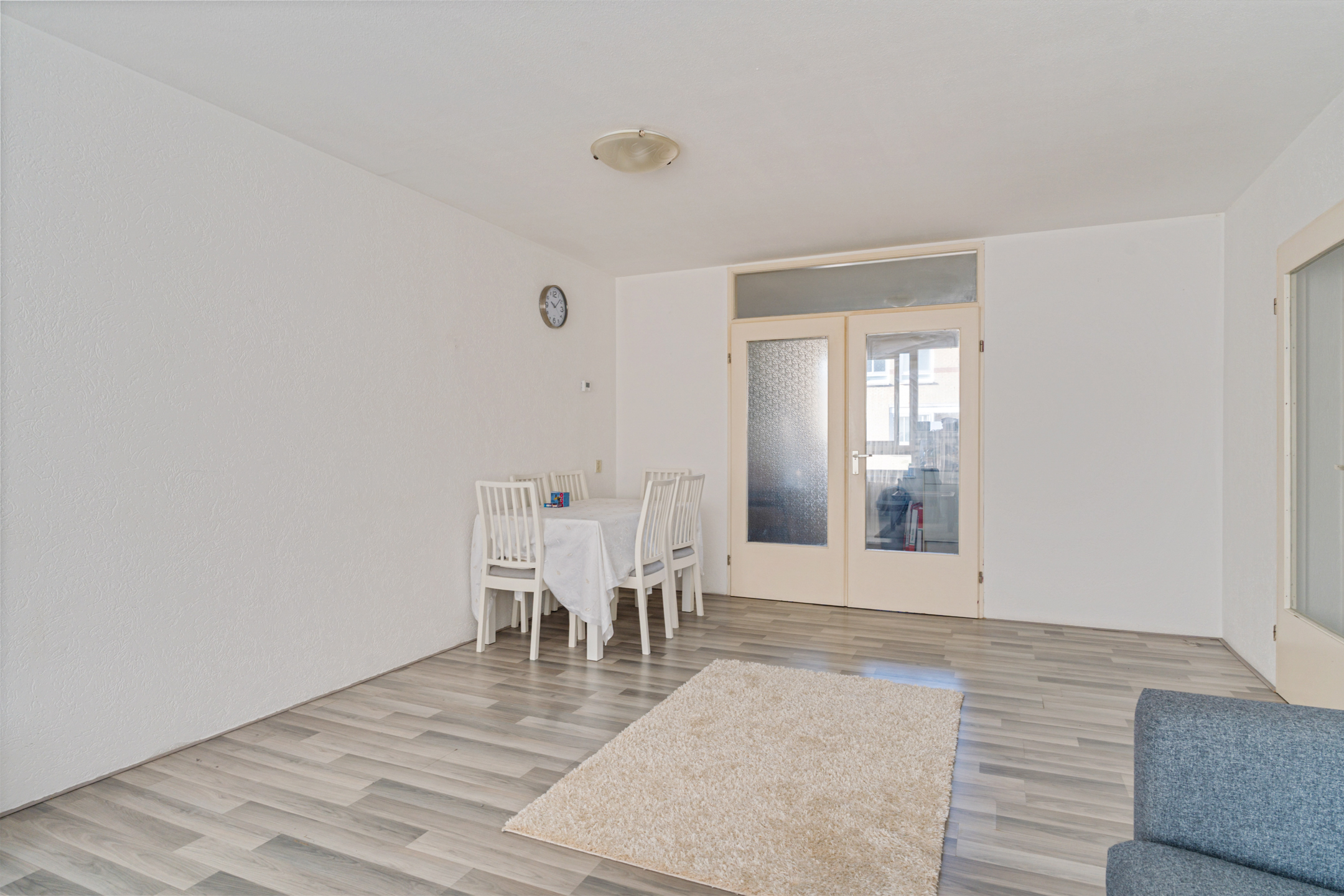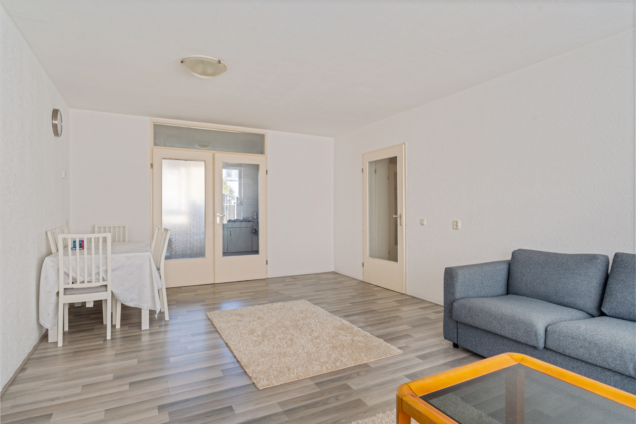 Aan de voorzijde liggen twee lichte slaapkamers van circa 8,7 m² en 9 m², met uitzicht over de straatzijde. De woonkamer van circa 26,8 m² is ruim en sfeervol, met grote ramen die veel daglicht binnenlaten. De open verbinding met de woonkeuken van circa 13,1 m² zorgt voor een fijne, lichte leefruimte.
