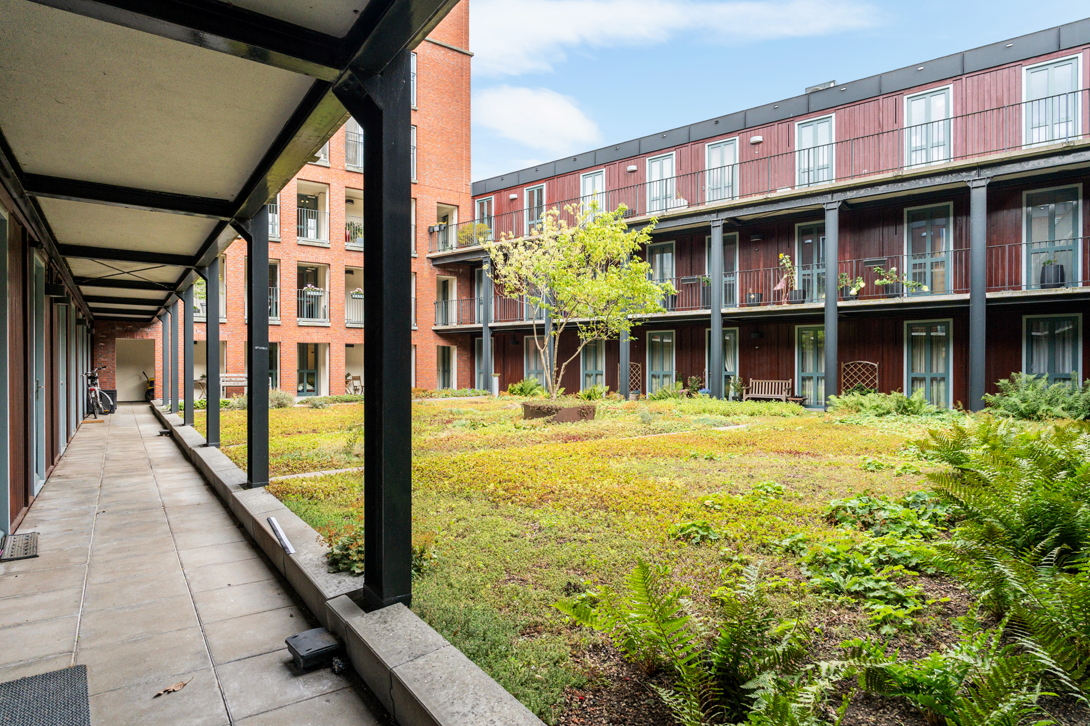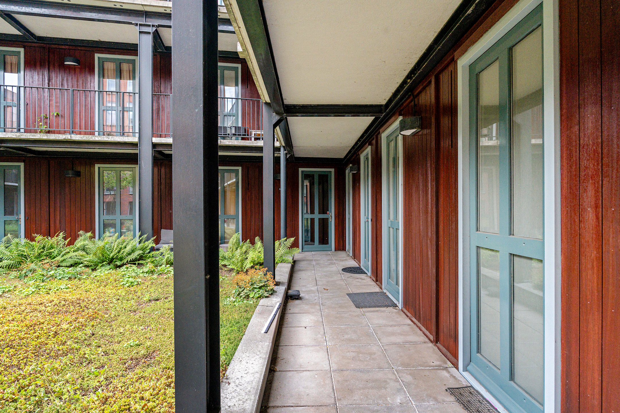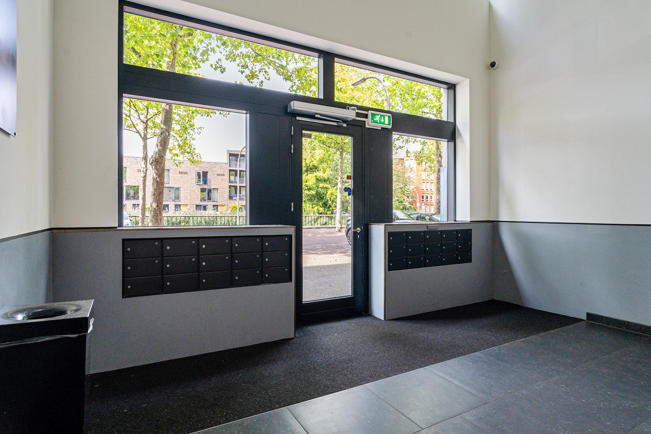 Het appartementencomplex is verzorgd en voorzien van een afgesloten entree met bellentableau, ruime ontvangsthal, trappenhuis en lift. Op de eerste verdieping bereik je het appartement via een galerij met uitzicht op de groene, gemeenschappelijke binnentuin.