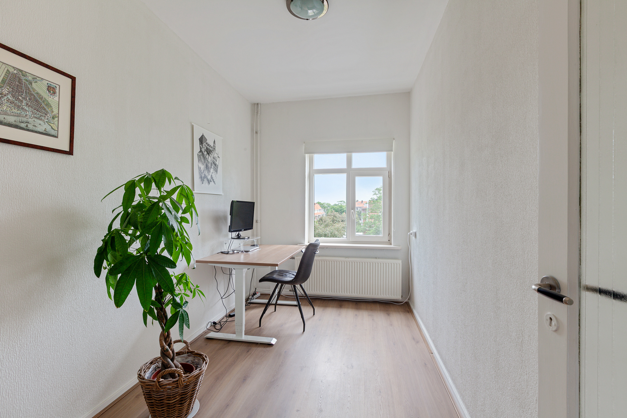 In this well-maintained top-floor apartment, you'll enjoy space, natural light, and an ideal location on a wide, quiet avenue in the charming Oud-Rijswijk neighborhood. With a generous main living floor and a full attic level, four bedrooms, a sunny southwest-facing balcony, and a private storage unit in the basement, this home offers a surprising amount of living space.