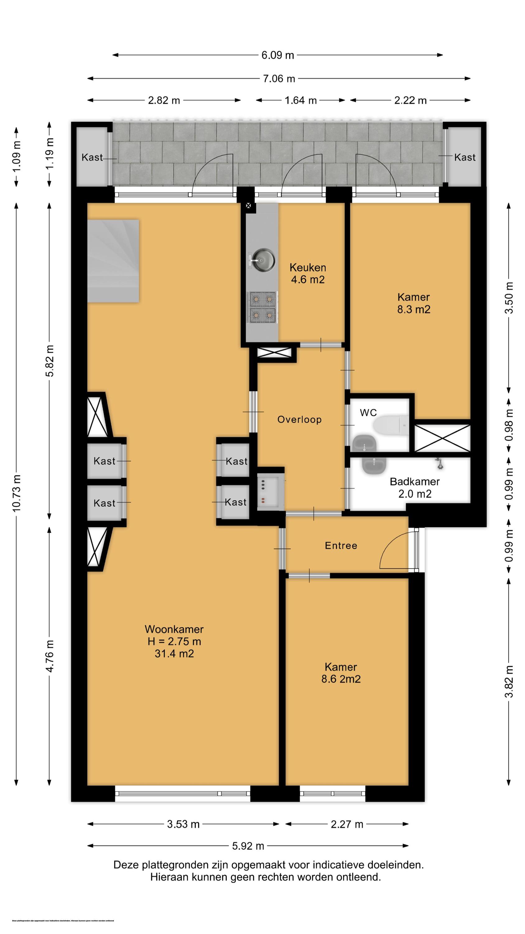 + Balkon op het zuidwesten met twee bergkasten