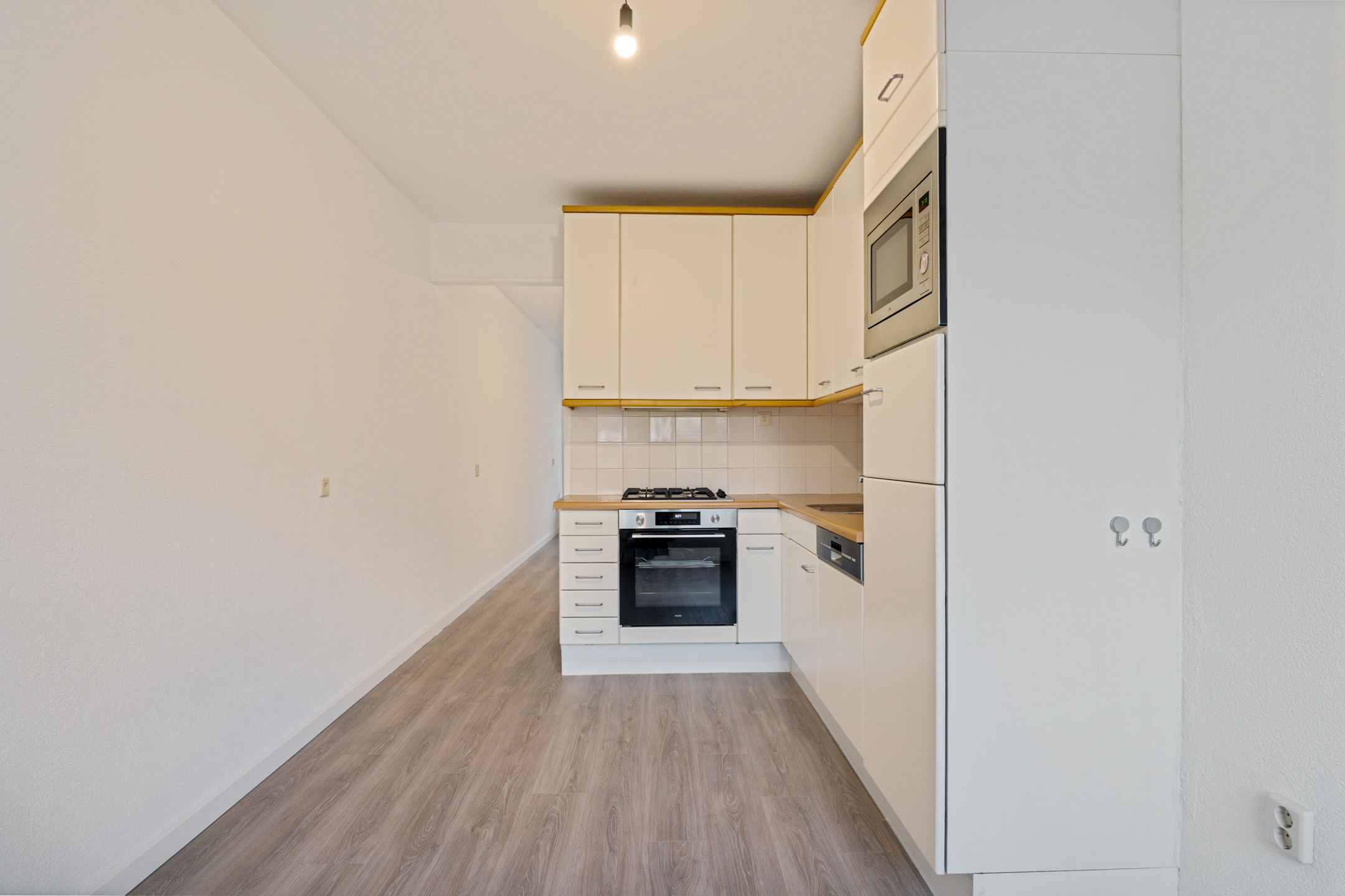 Aan de achterzijde bevindt zich de keuken, voorzien van inbouwapparatuur en met ruimte om een gezellige eetplek te creëren. Daarnaast bevindt zich hier slaapkamer 2, ideaal als master bedroom, werk- of logeerkamer. Het recent vernieuwd toilet op deze verdieping maakt het plaatje compleet.
