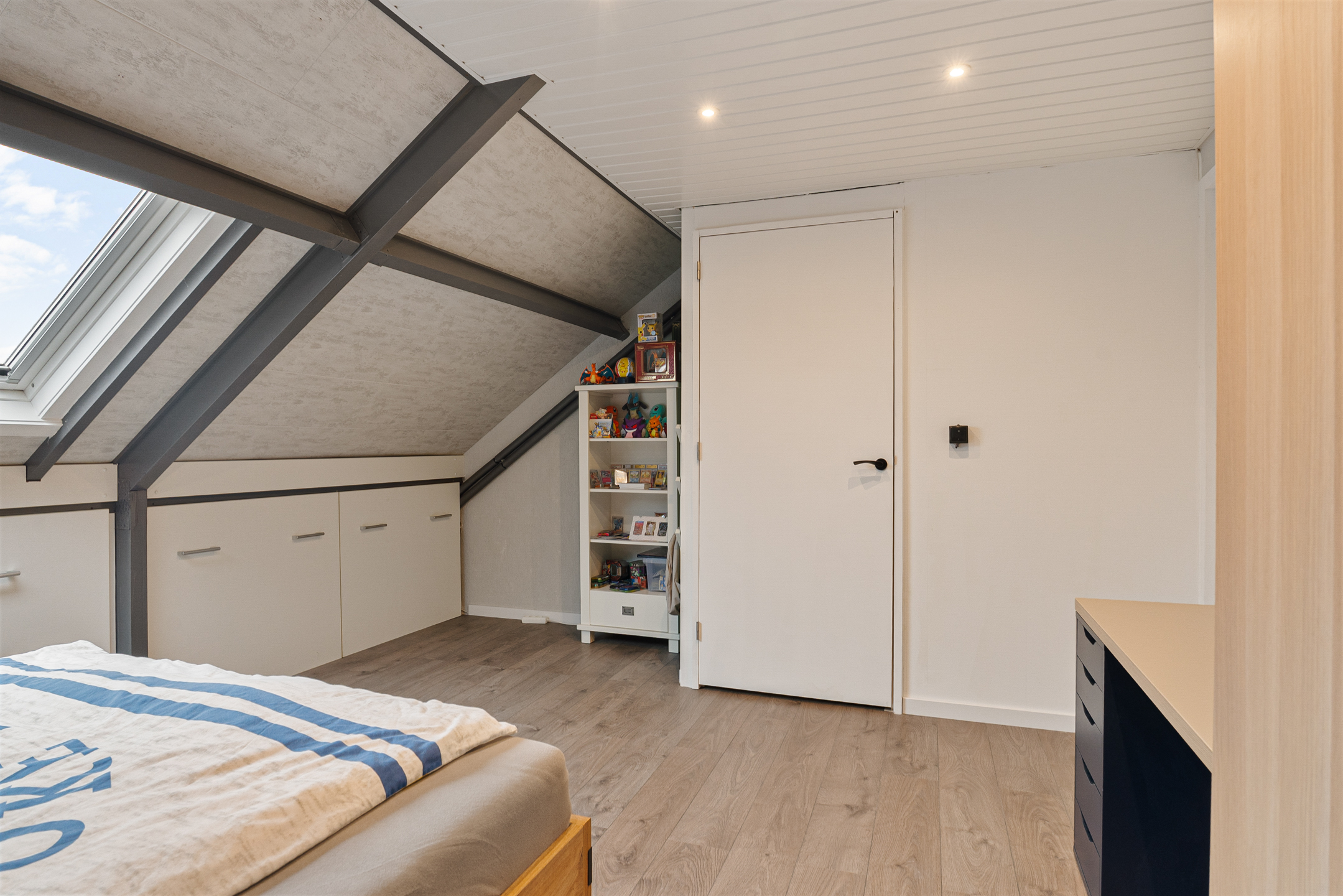 Op deze verdieping bevindt zich een ruime derde slaapkamer aan de achterzijde met dakraam en veel bergruimte achter de schotten. Aan de voorzijde is een riante opslagruimte met de opstelplaats voor de cv-ketel, wasmachine en droger.