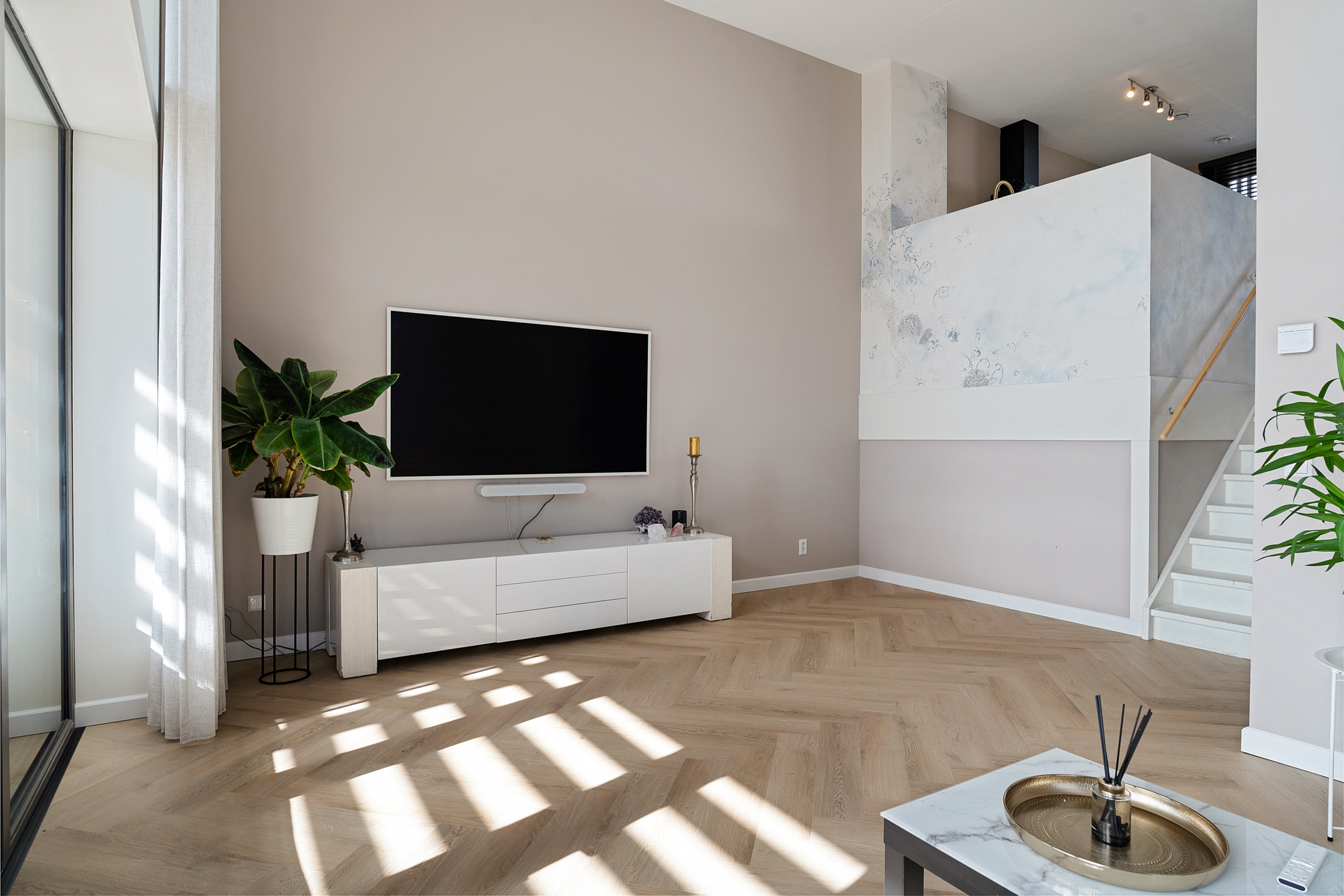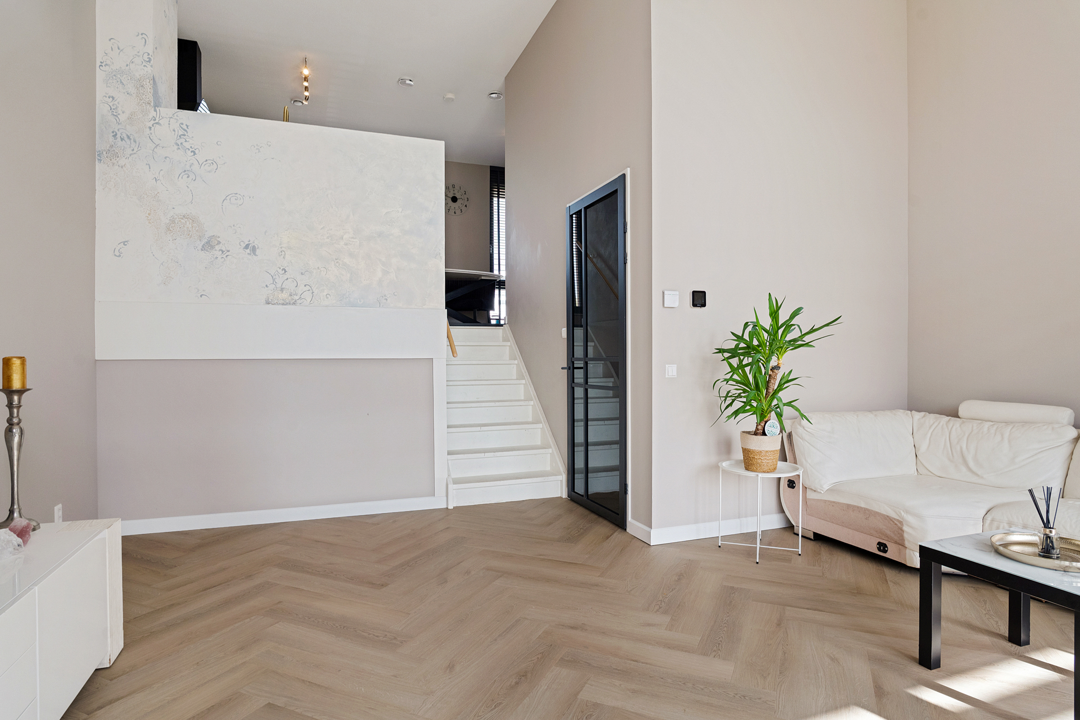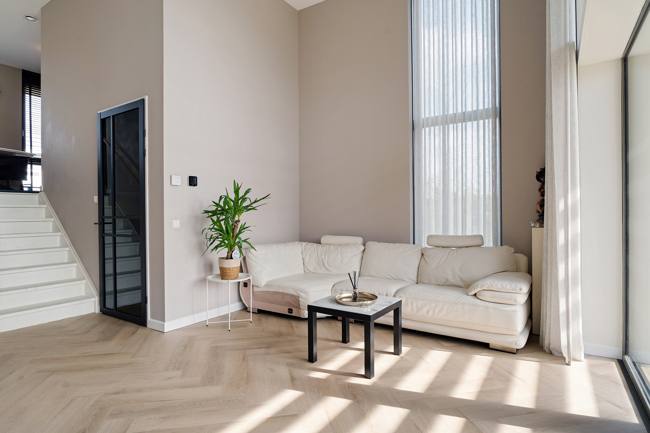 + Woonkamer met een plafondhoogte van 4.35 meter