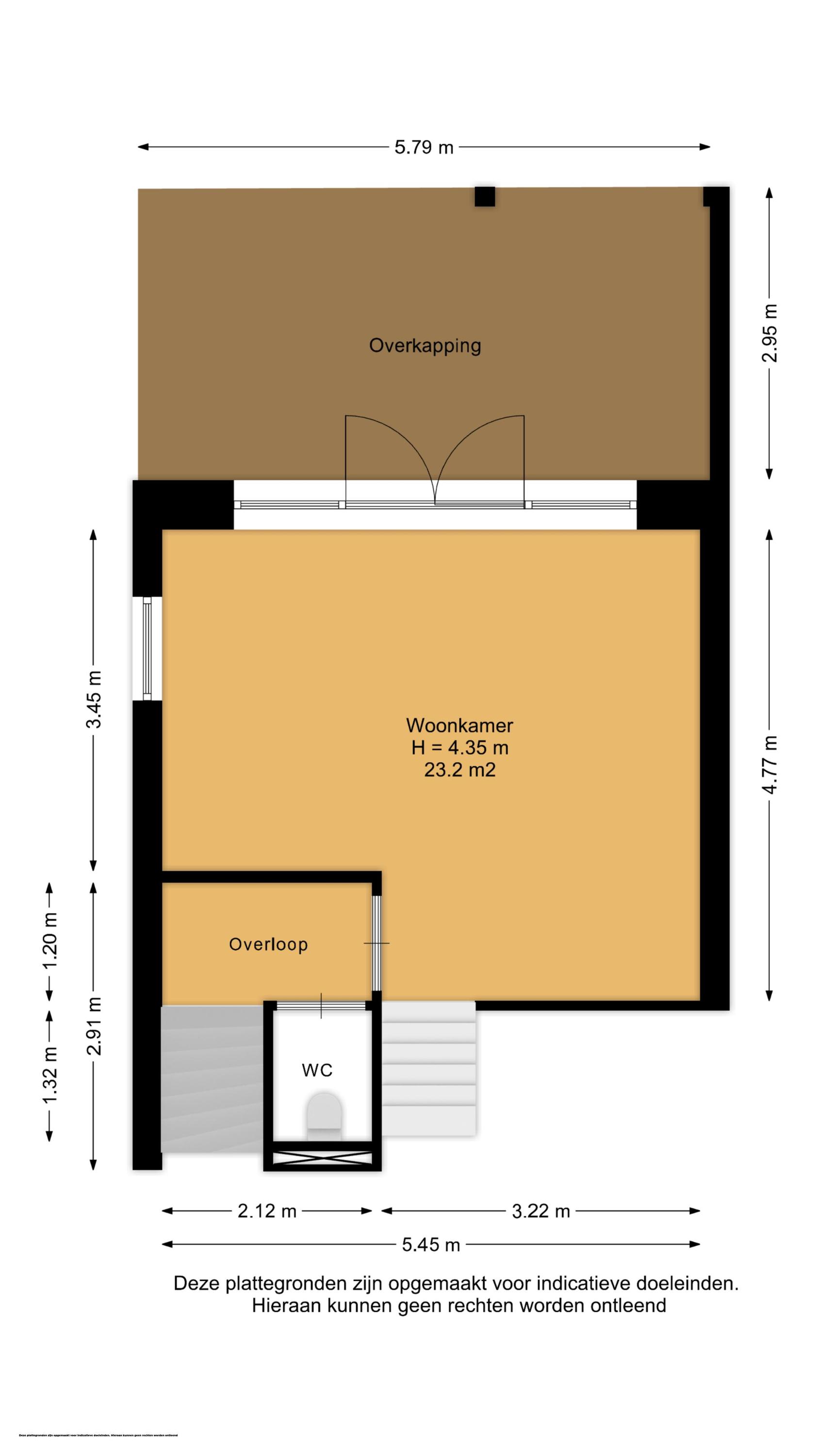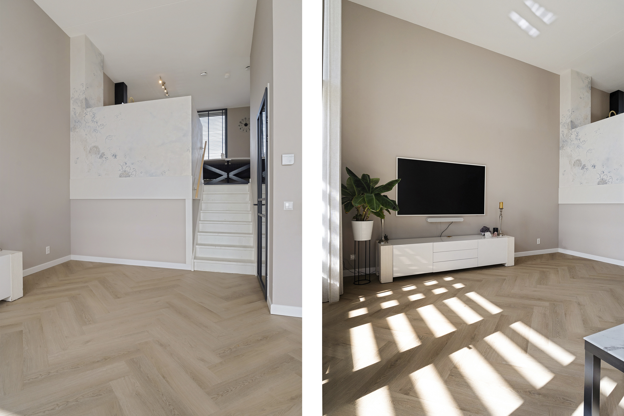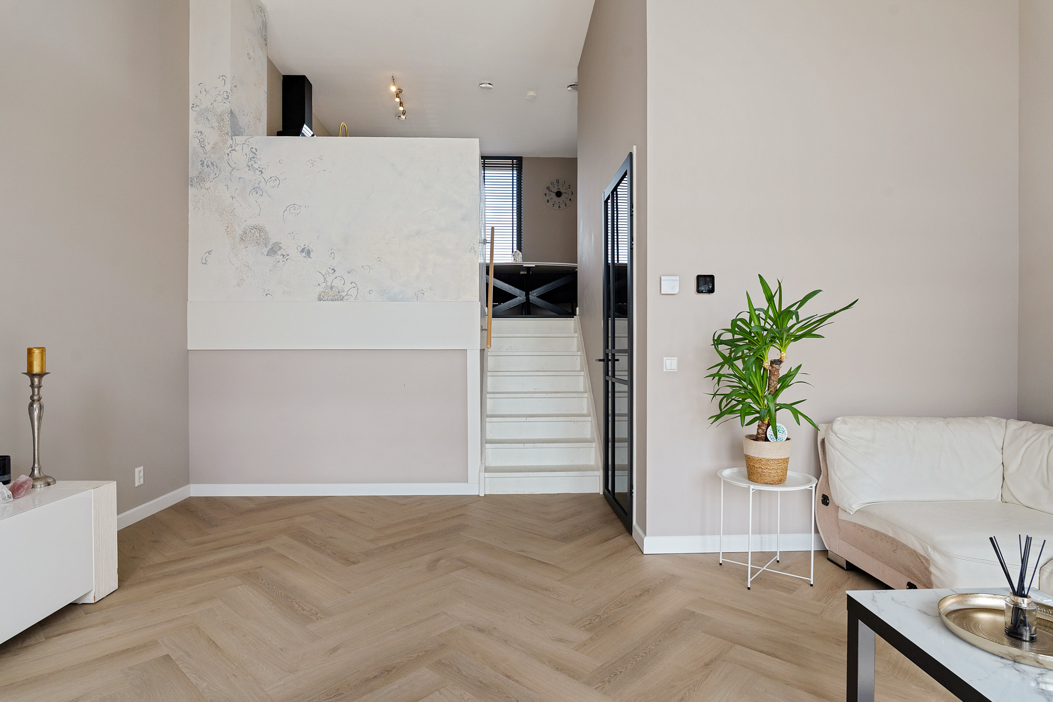 + Woonkamer met een plafondhoogte van 4.35 meter