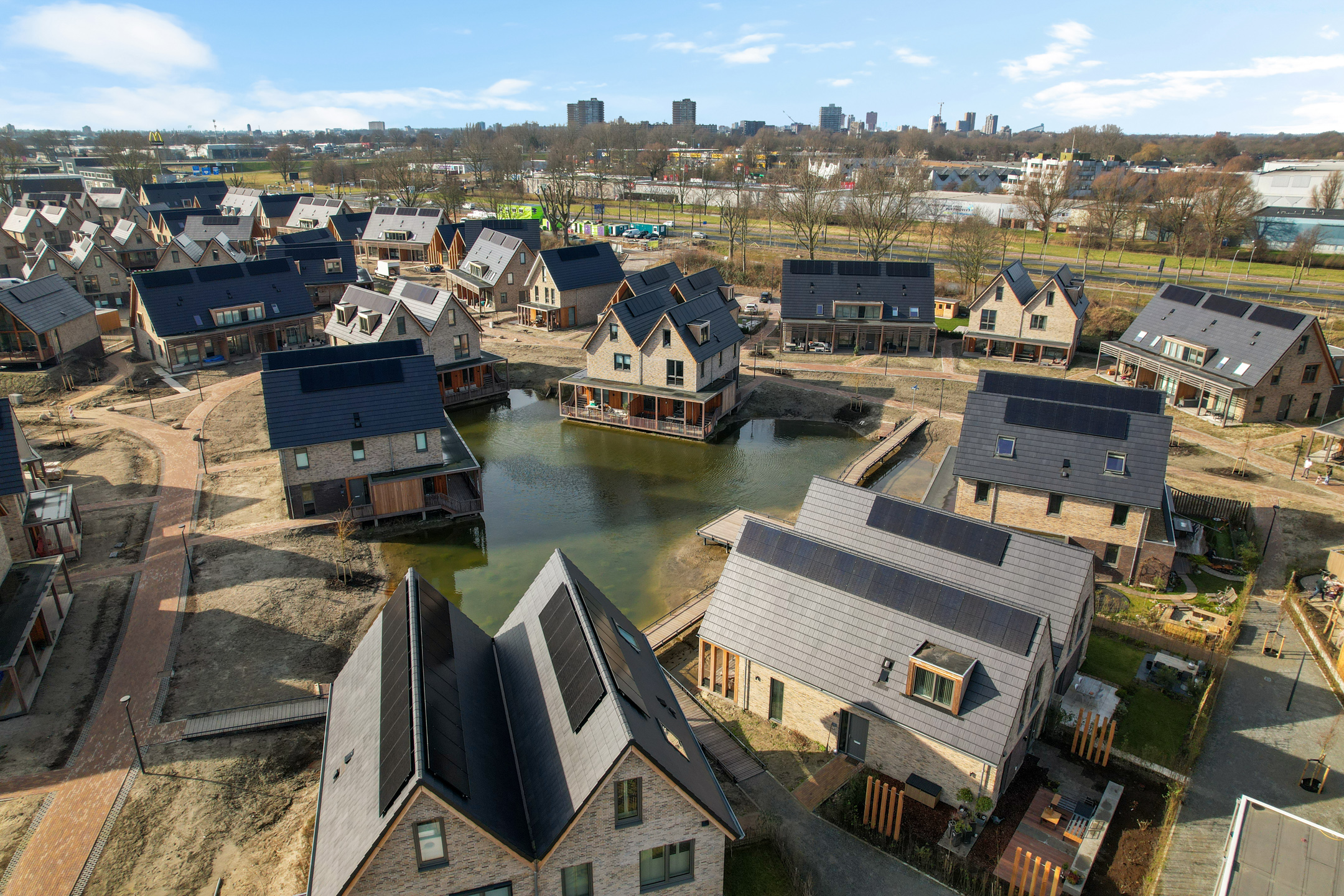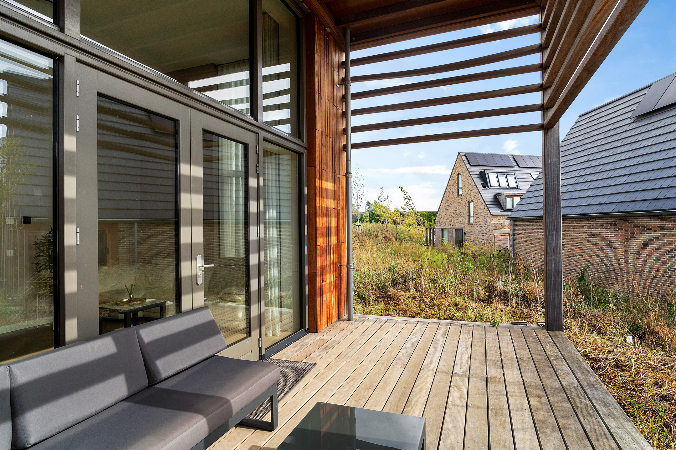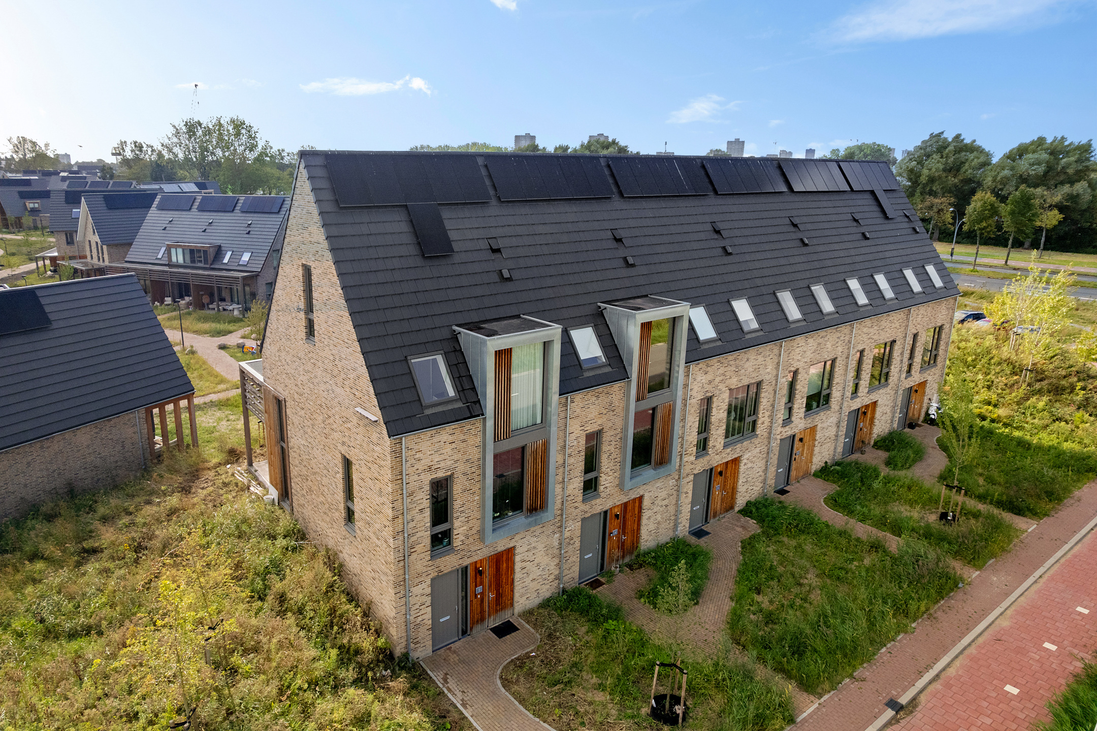De veranda op het zuidwesten vormt een verlengstuk van je woonkamer en biedt uitzicht op een groen speelveld, ideaal voor gezinnen met kinderen. In Happy Days woon je autoluw: de auto parkeer je aan de rand van de wijk, waardoor het binnengebied rustig en veilig blijft.