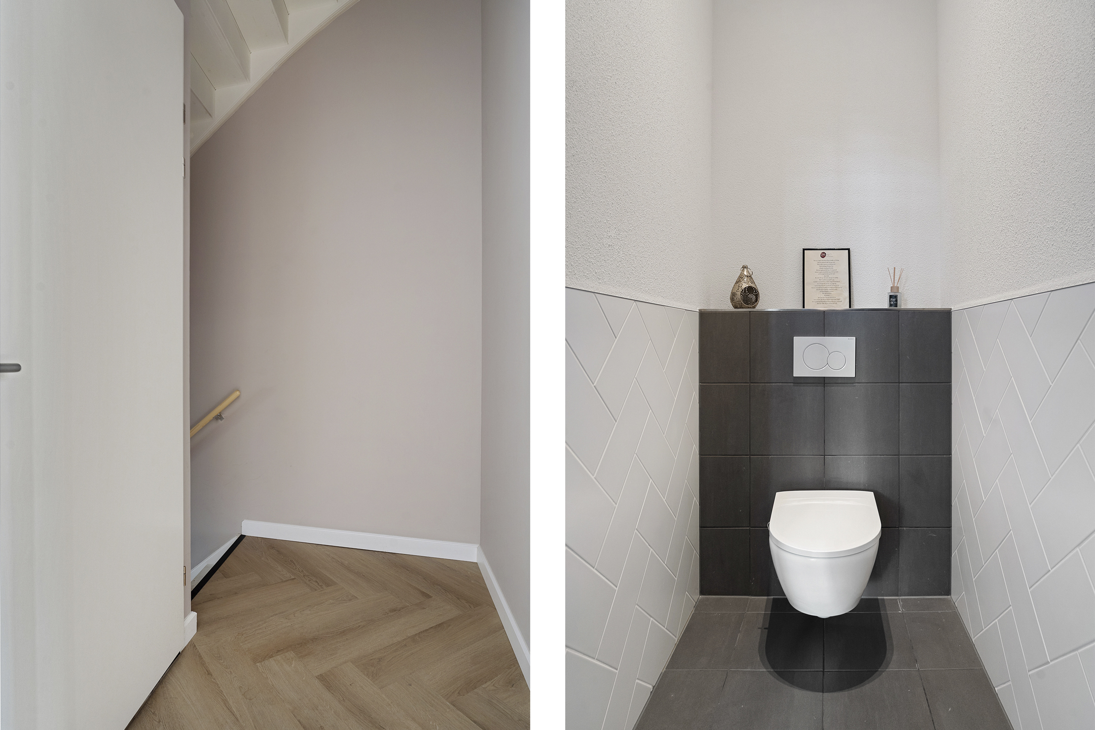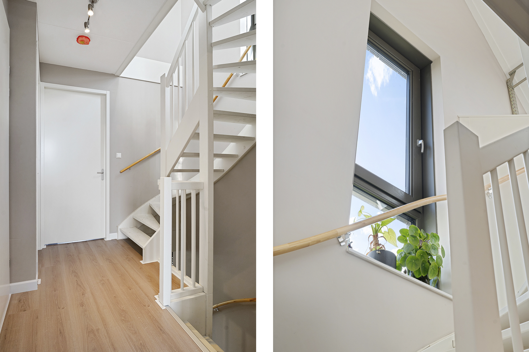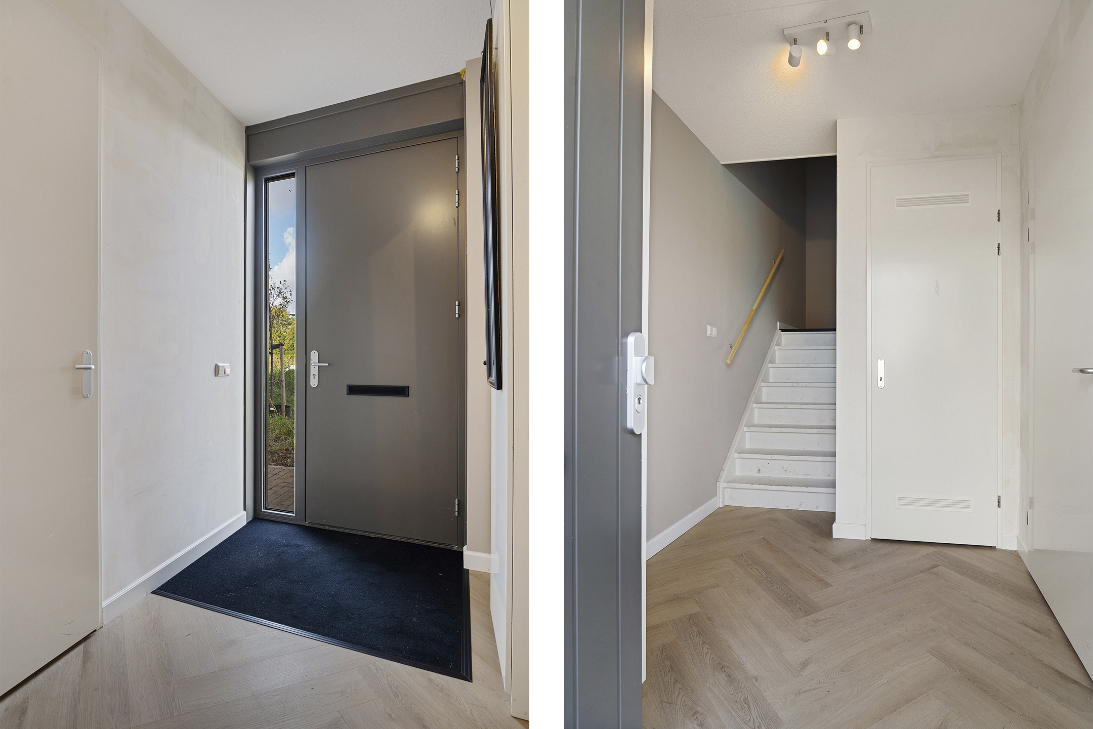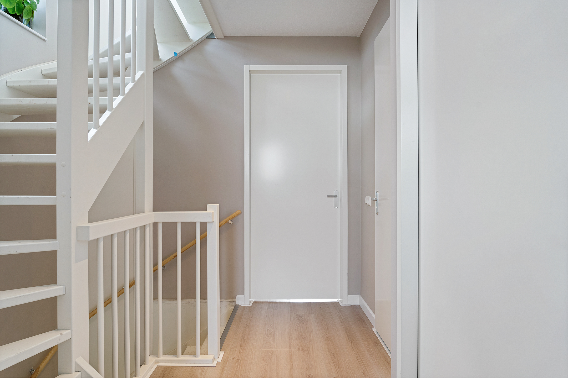 Via de entree aan de parkzijde stap je binnen in een lichte hal met meterkast en trapopgang. Direct grenzend vind je een ruime inpandige berging, ideaal voor fietsen, voorraadkasten of hobbyruimte.