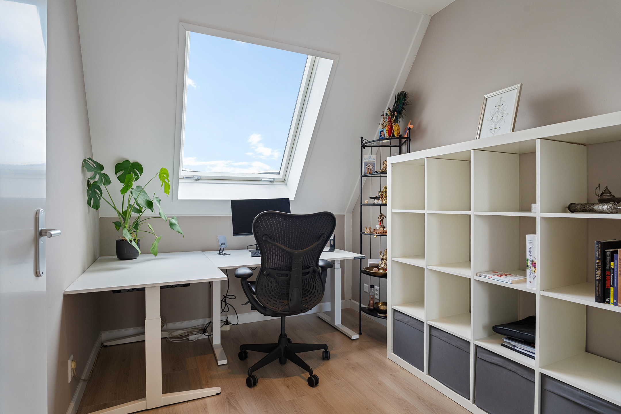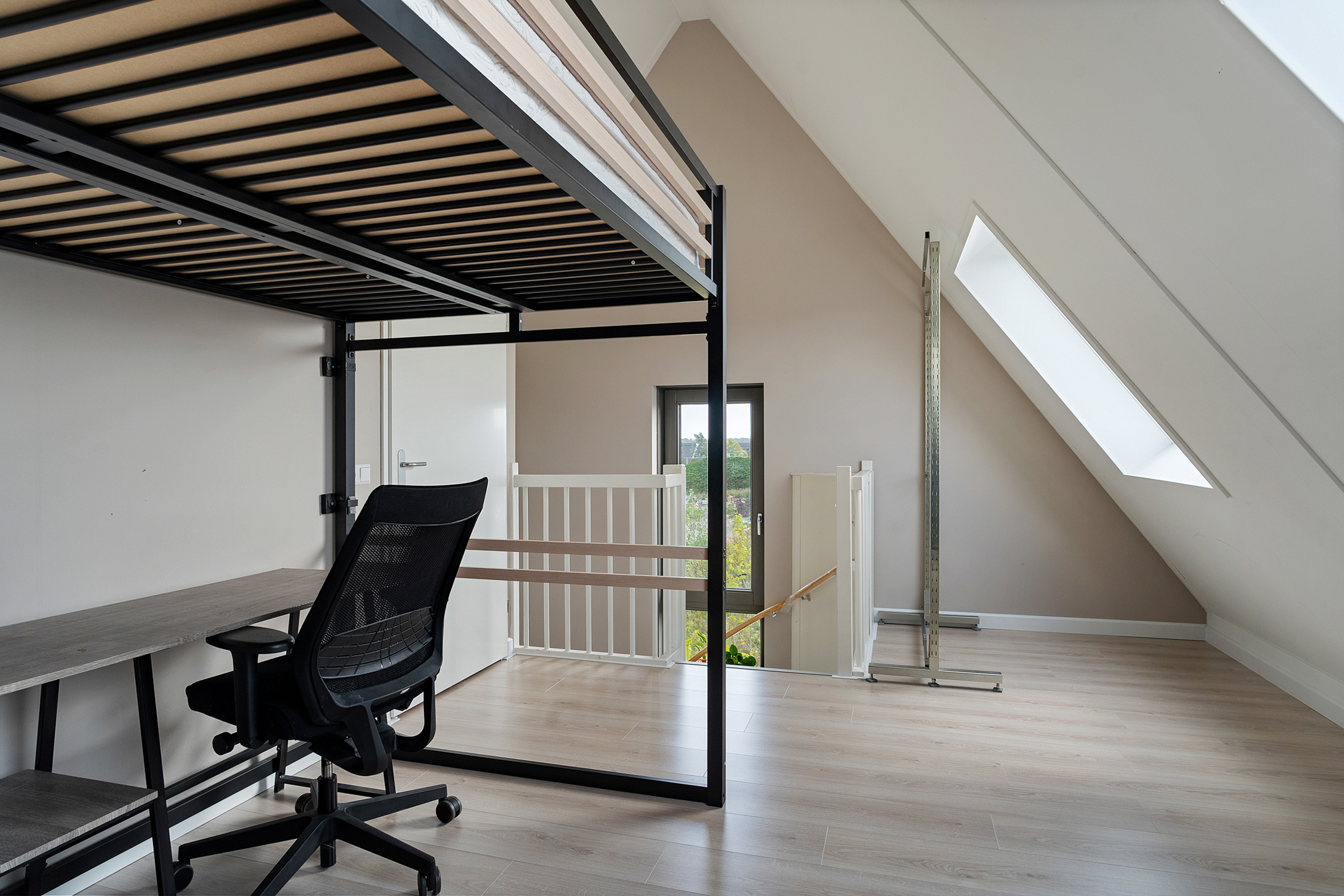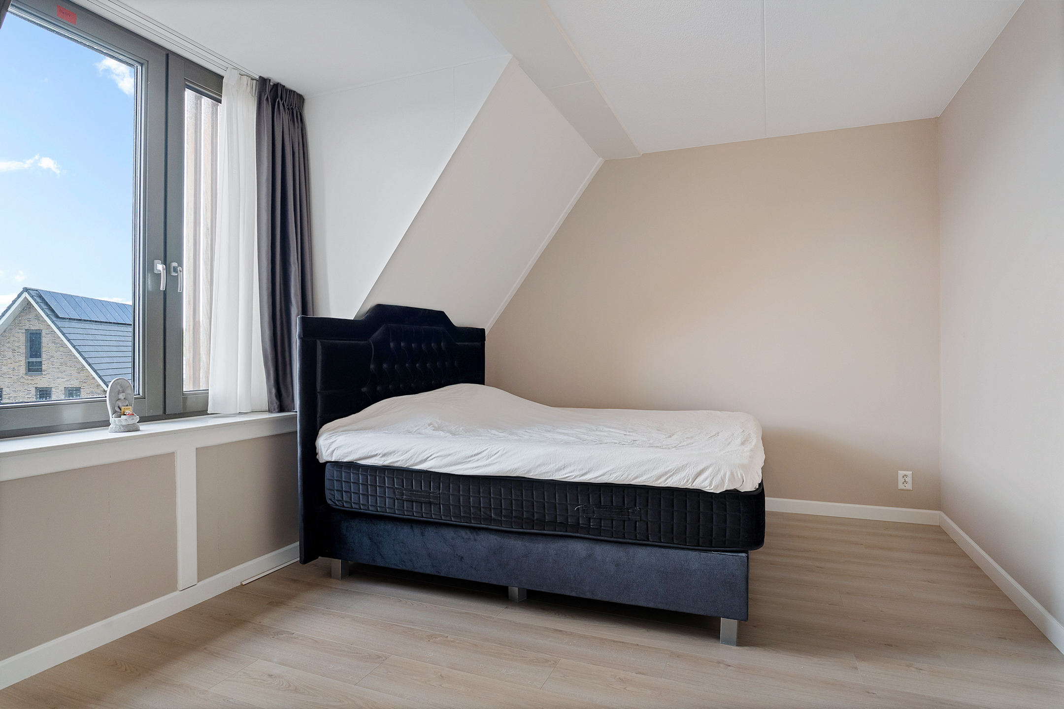 De ruime zolder is momenteel een open kamer die je geheel naar eigen wens kunt inrichten — als extra slaapkamer, werkkamer of chillruimte. Hier vind je ook de aansluitingen voor de wasmachine en droger.