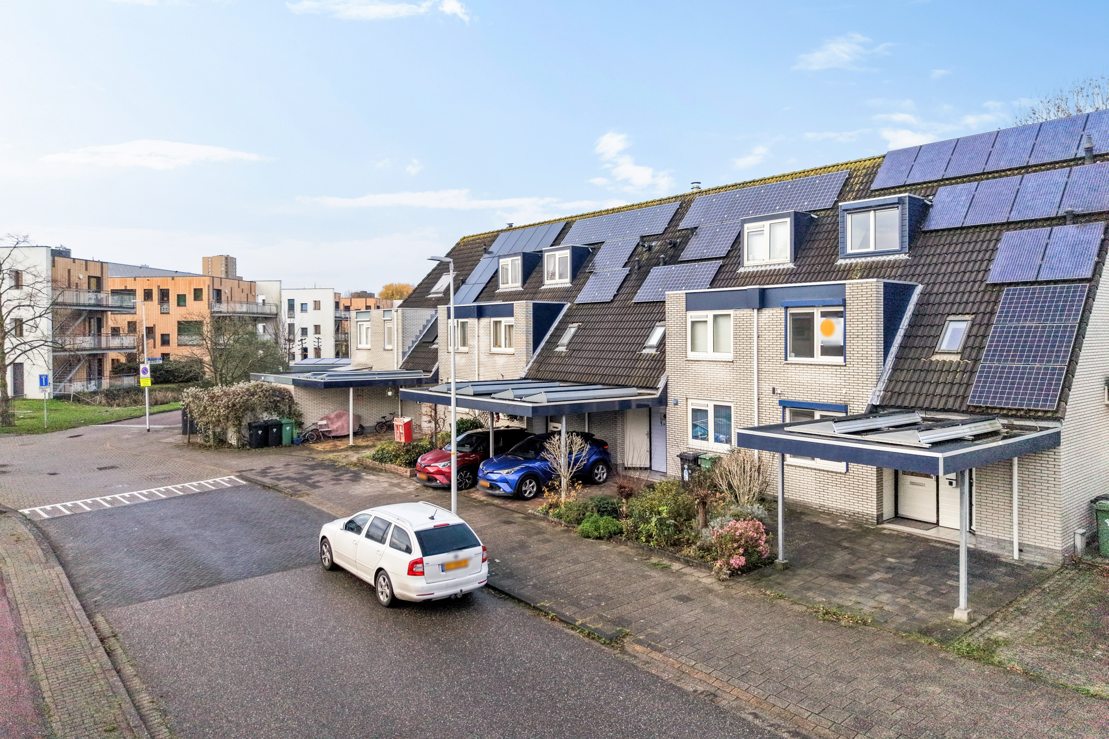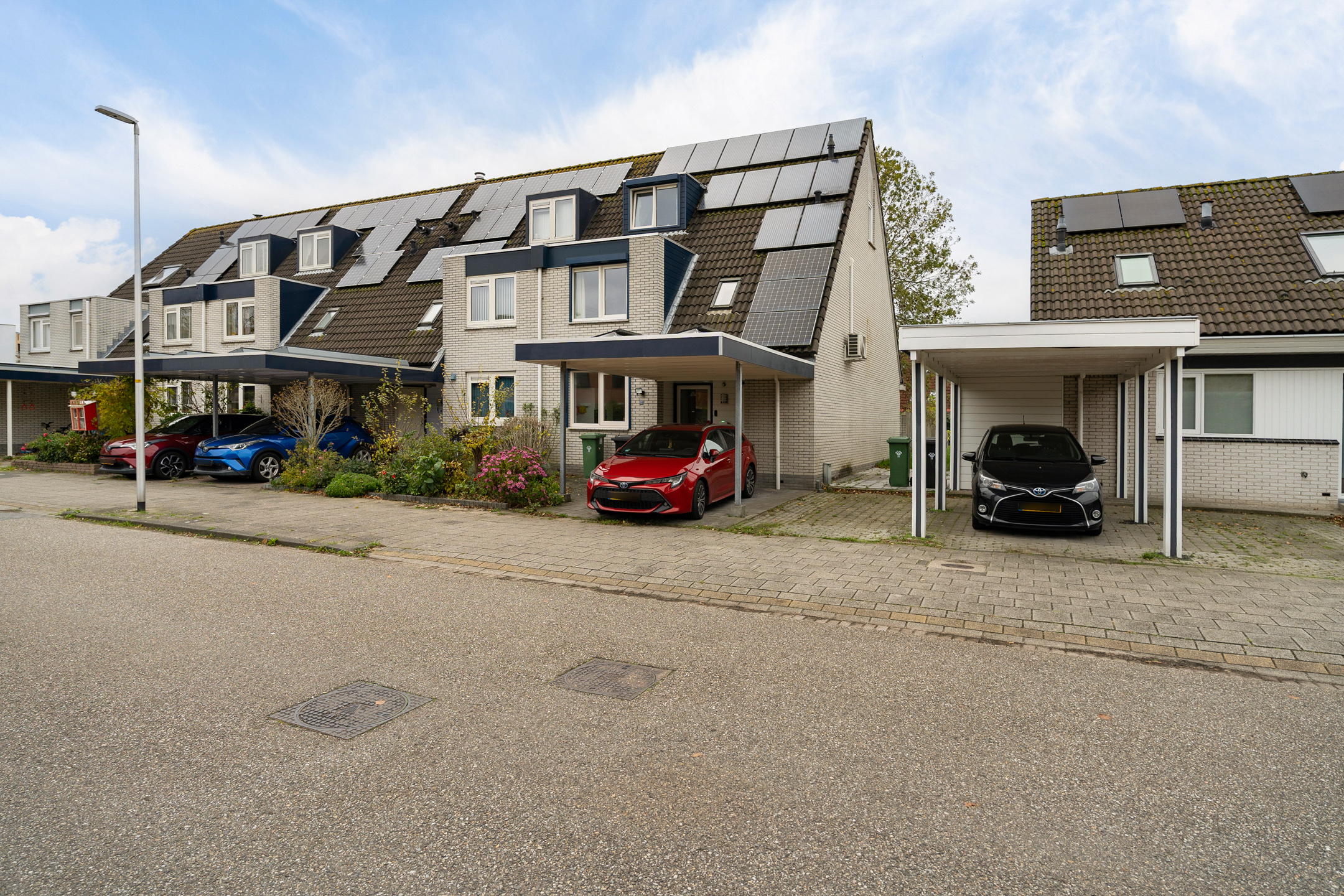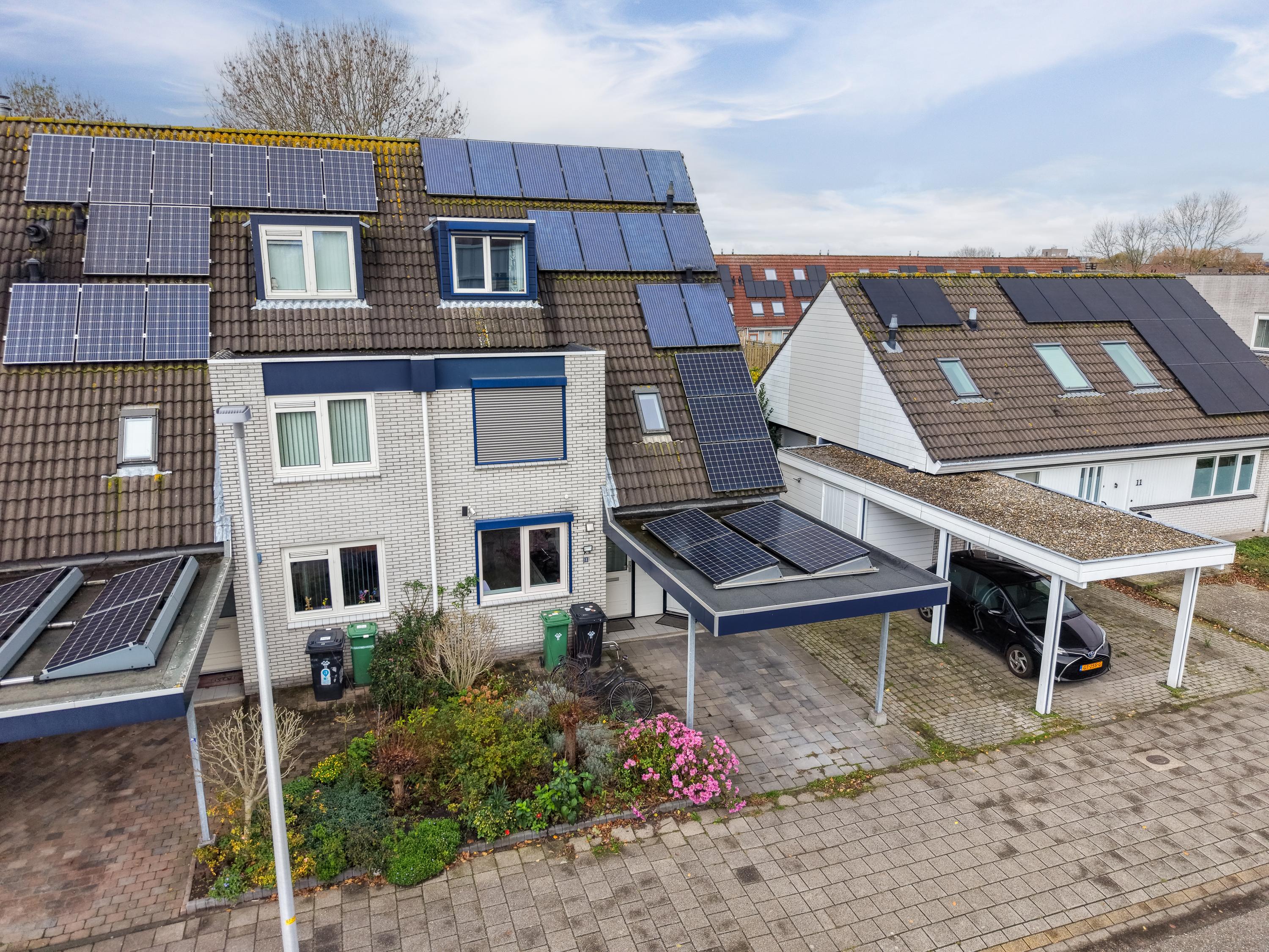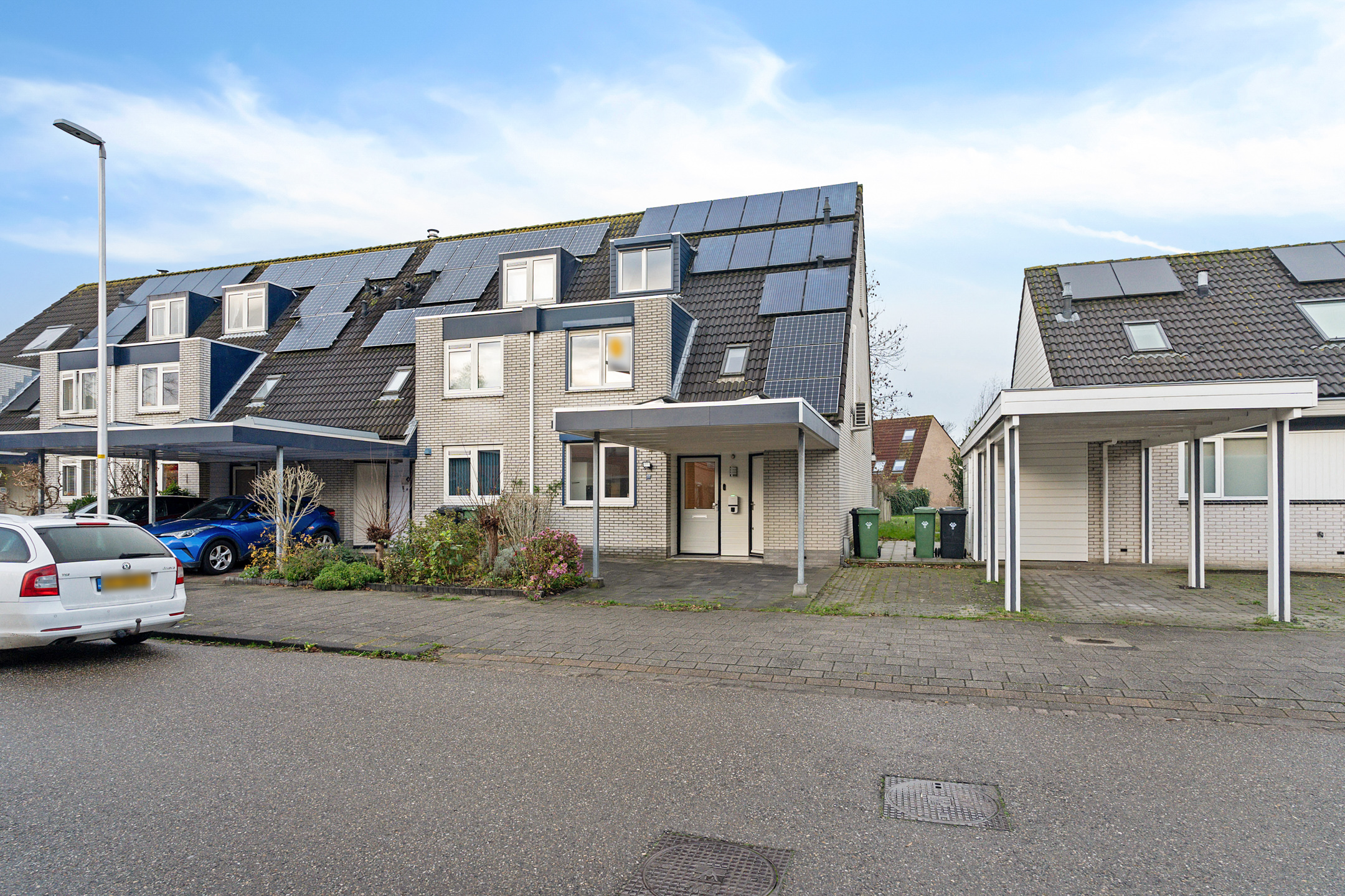 Aan de voorzijde beschik je over een eigen parkeerplaats onder de carport, direct grenzend aan de voortuin. Vanuit hier heb je toegang tot de inpandige berging en de entree van de woning.