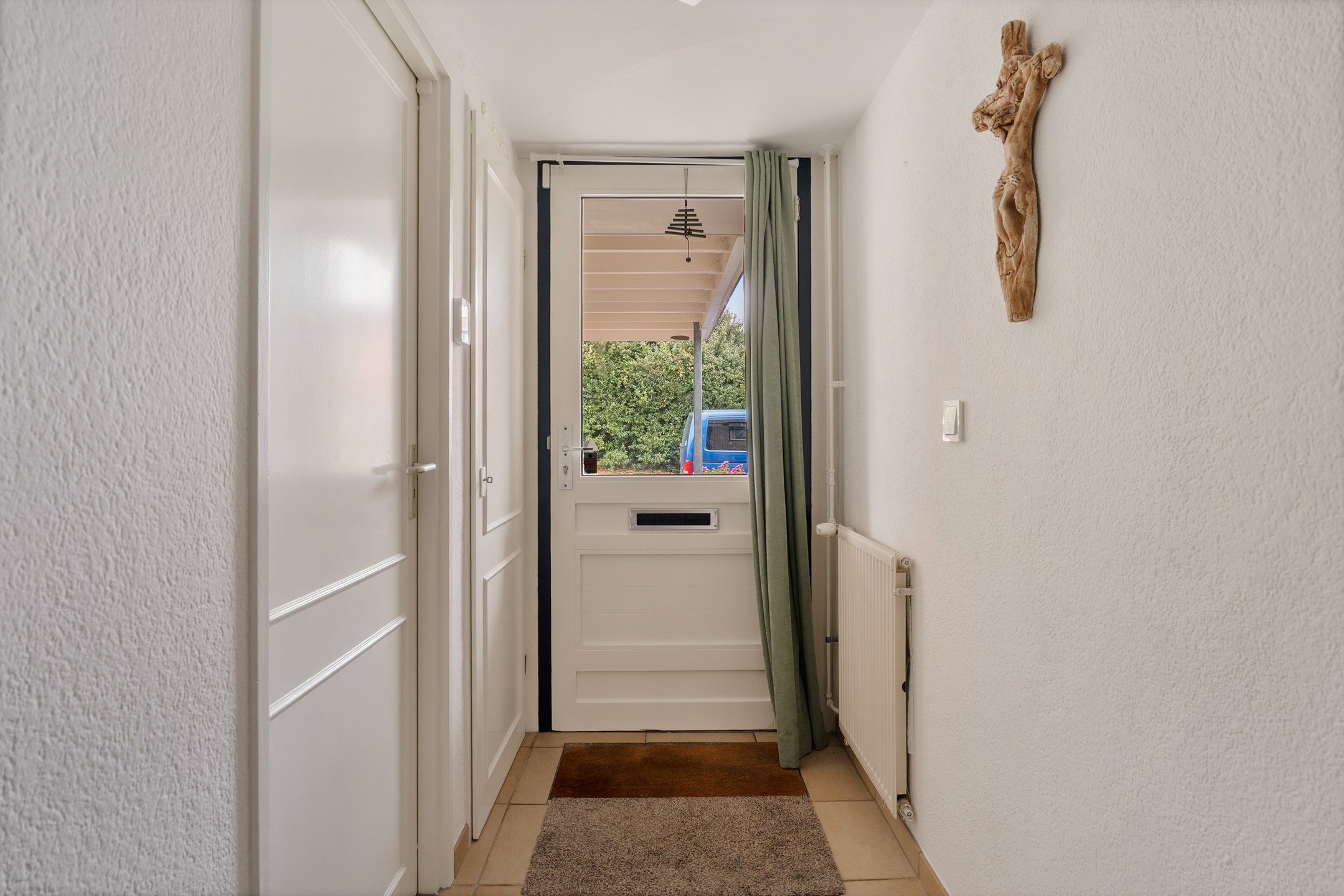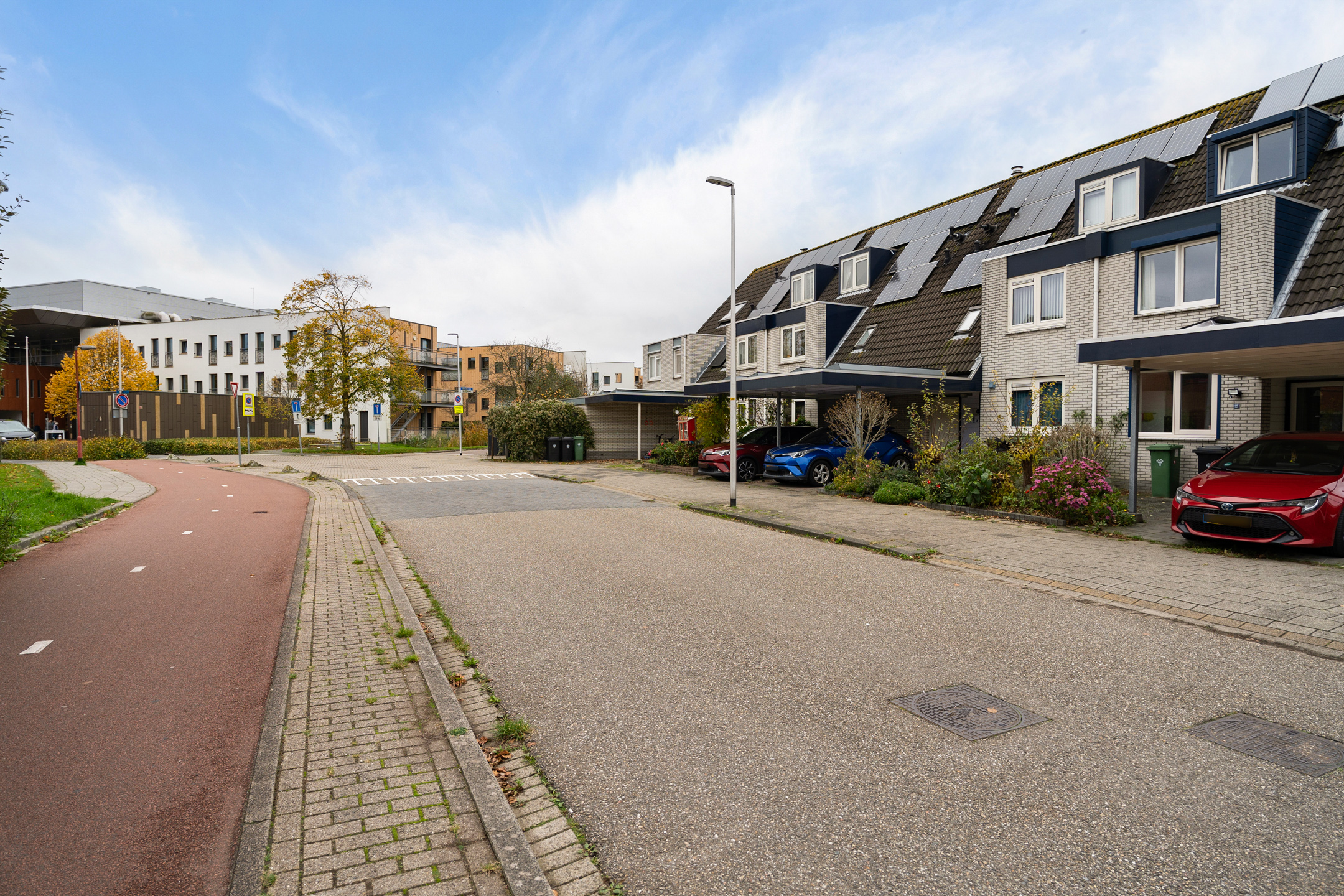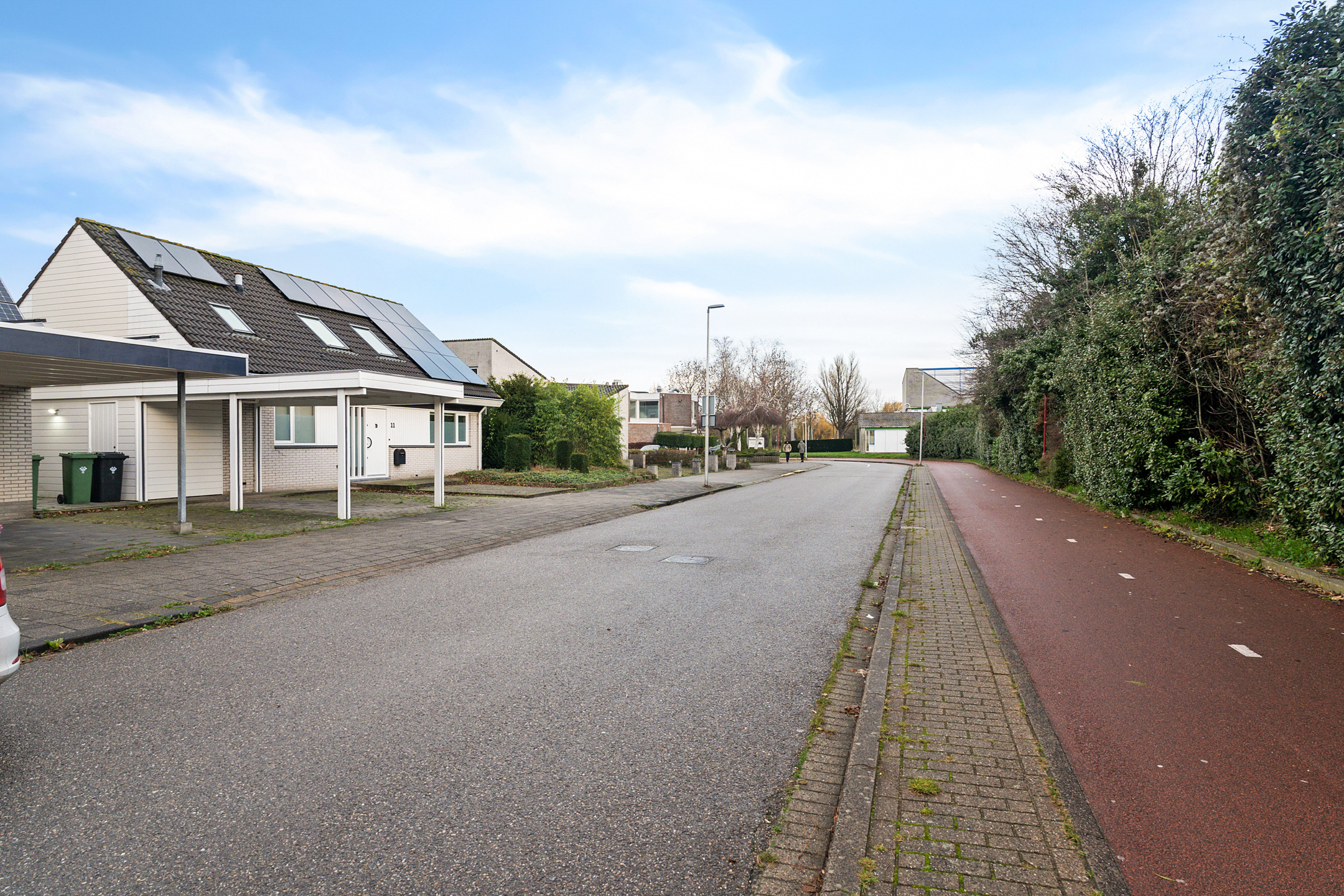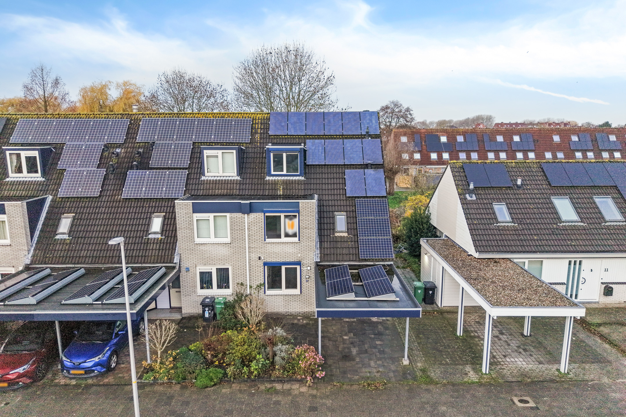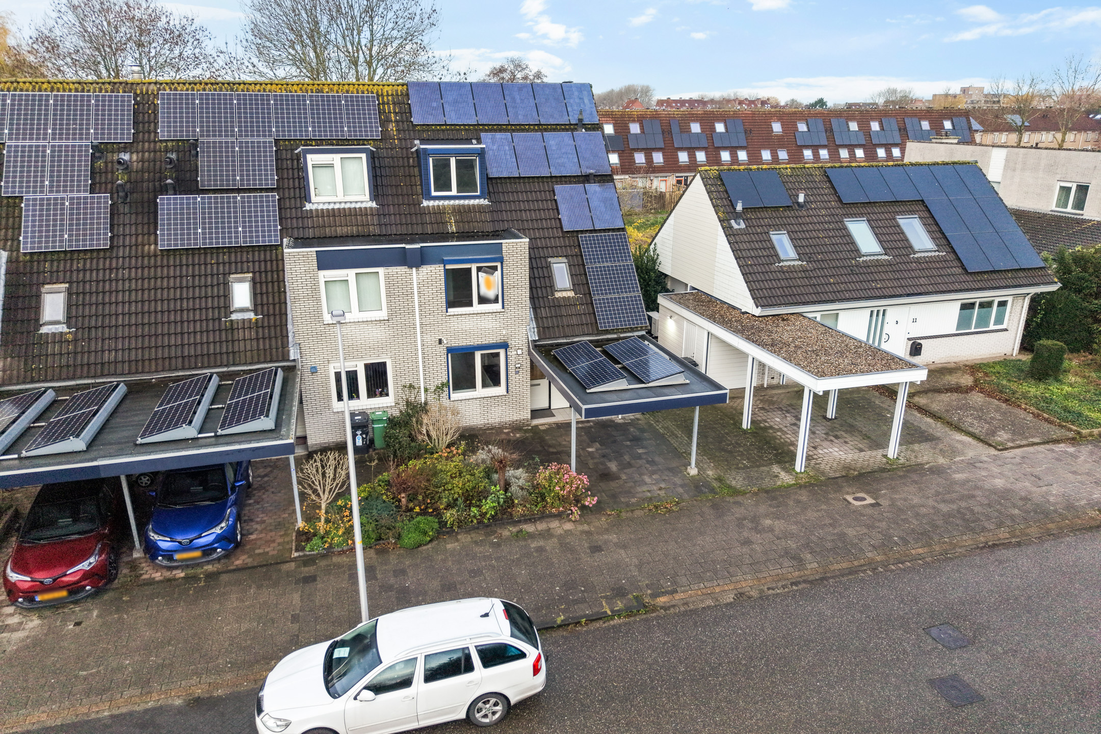 Aan de voorzijde beschik je over een eigen parkeerplaats onder de carport, direct grenzend aan de voortuin. Vanuit hier heb je toegang tot de inpandige berging en de entree van de woning.