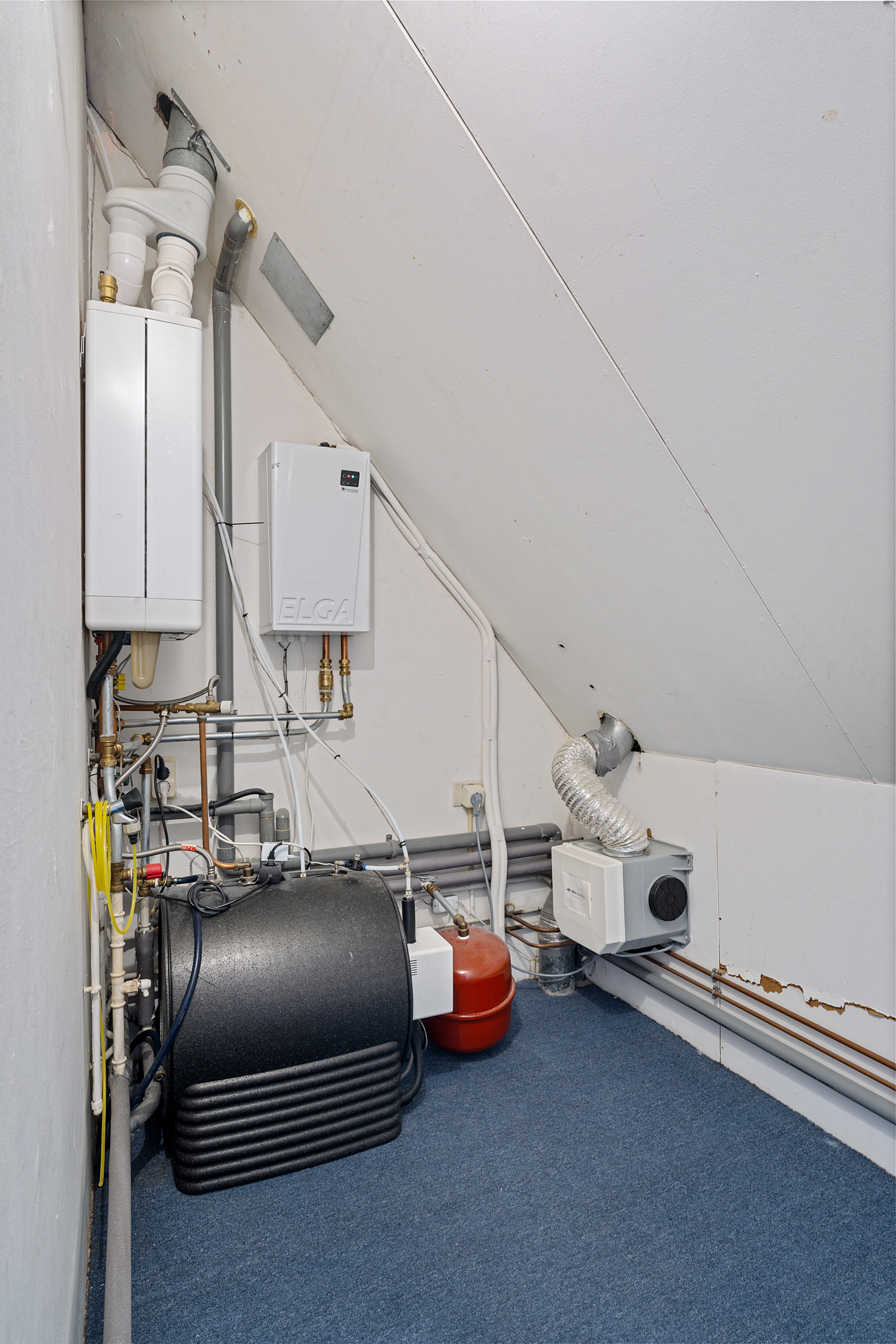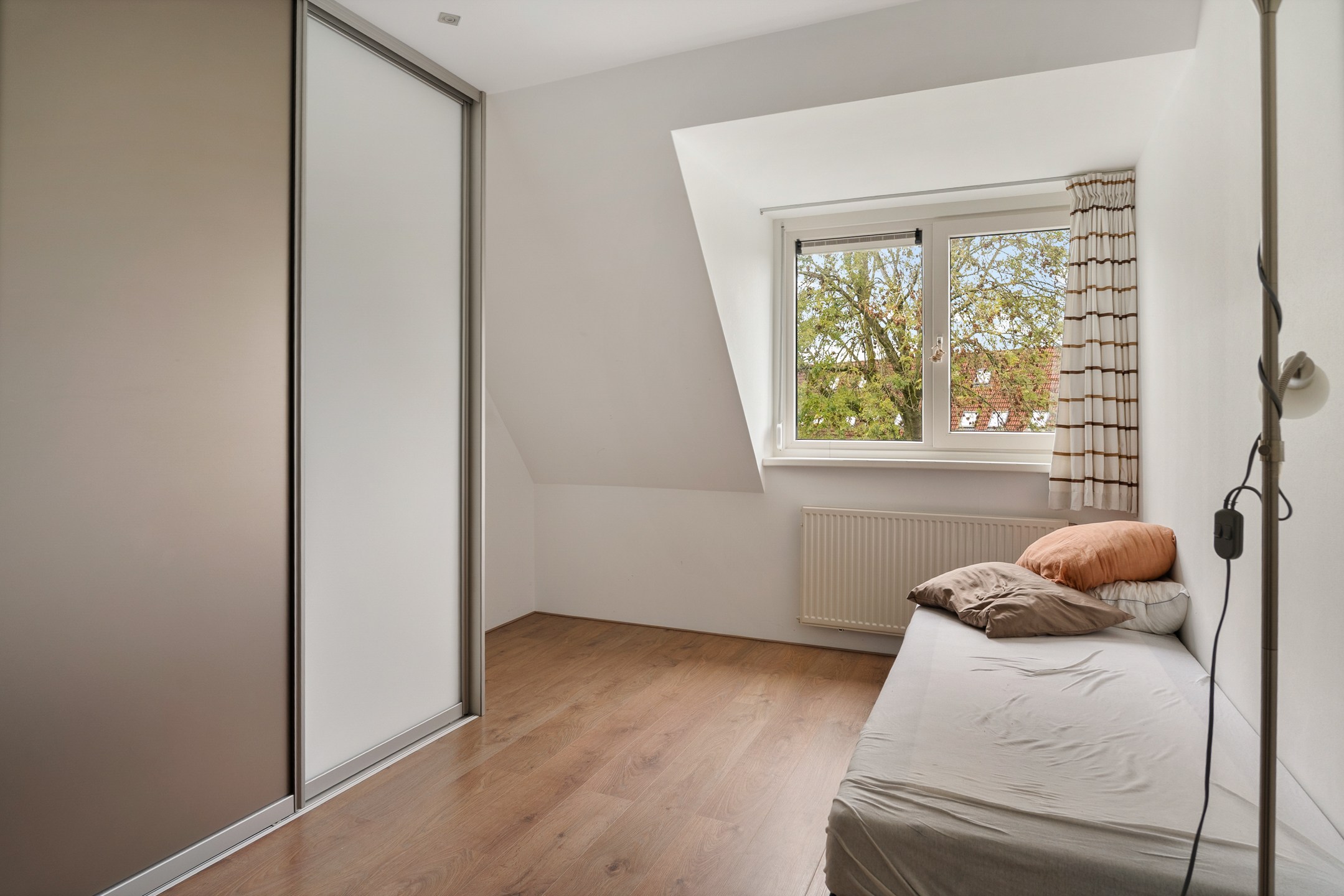 Op deze verdieping vind je de overloop met bergruimte en de technische ruimte met de opstelling van de warmtepomp en boiler, de cv-ketel, mechanische ventilatie en de omvormer van de 21 zonnepanelen. Daarnaast is er een leuke zolderkamer met dakkapel, ideaal als extra slaap-, werk- of hobbykamer.