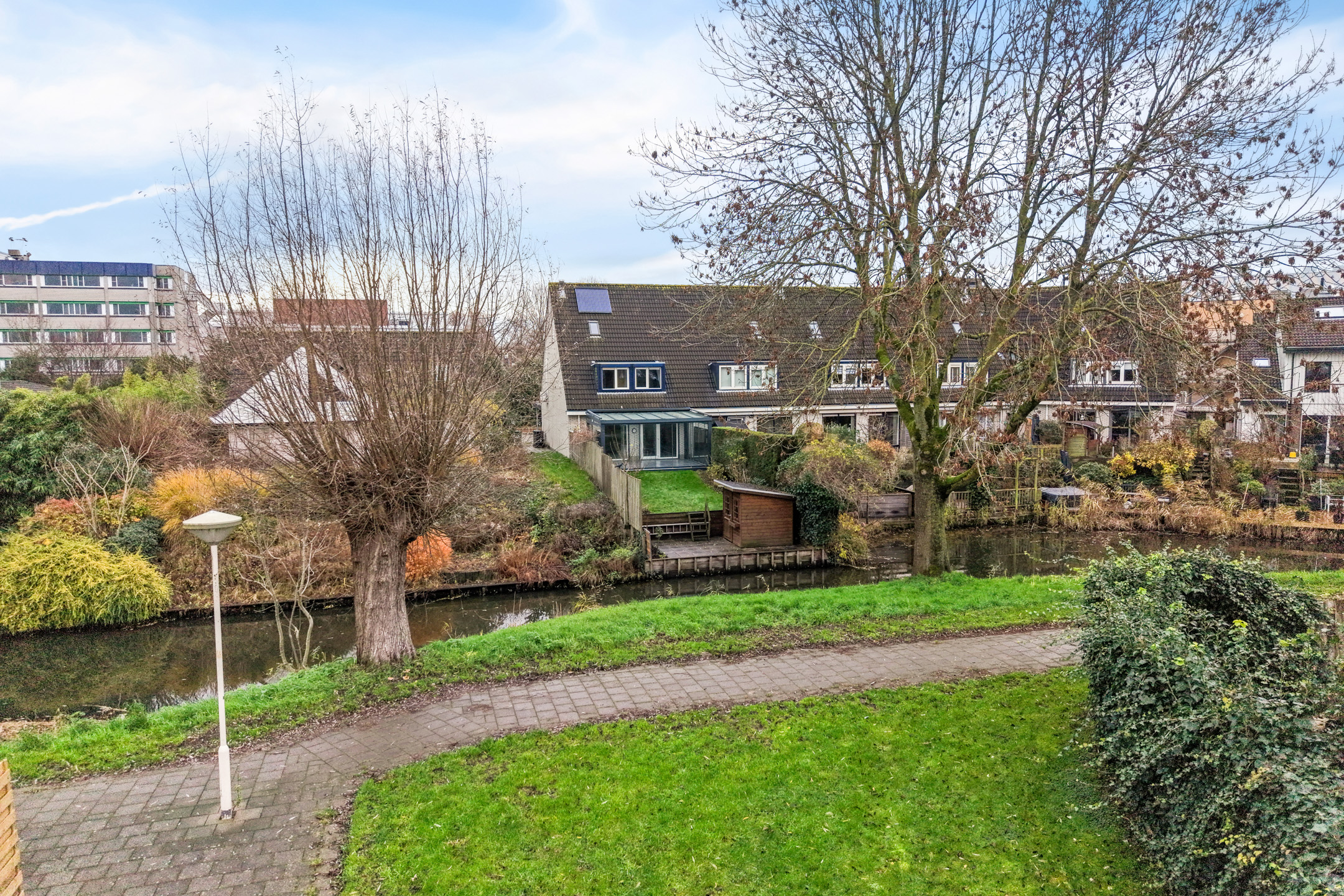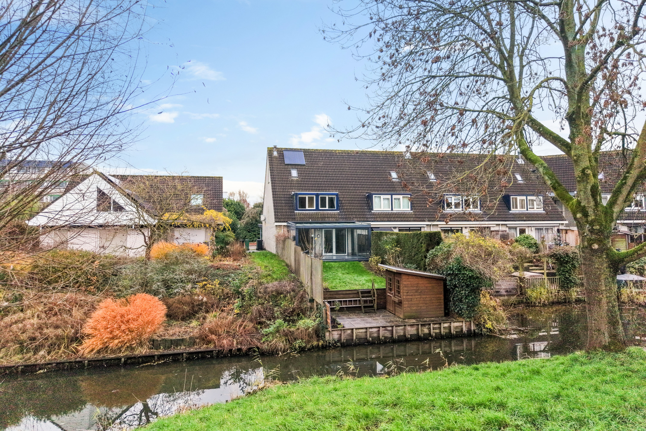 Royale hoekwoning aan het water met serre, carport en energielabel A