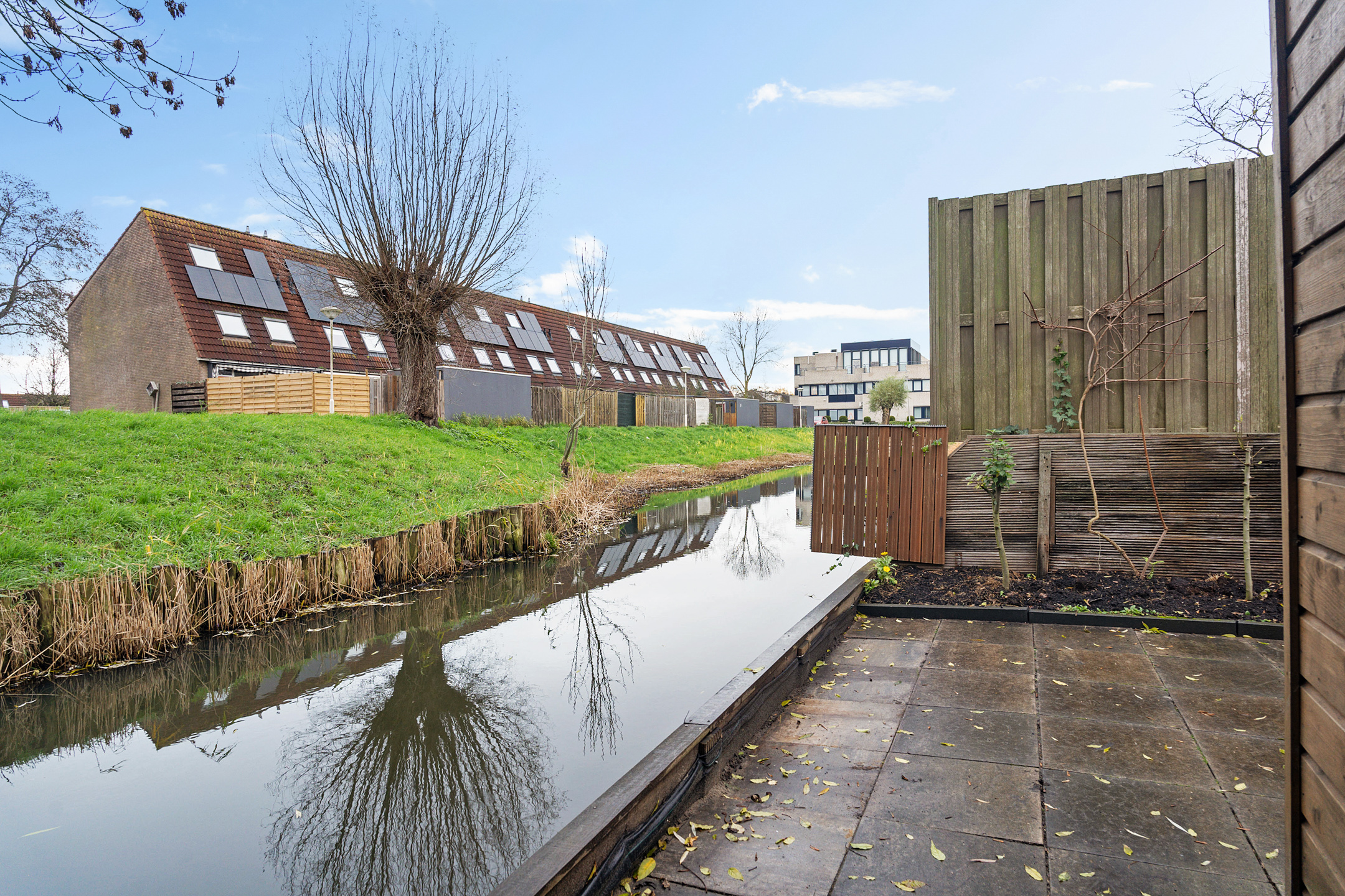 + Achtertuin aan het water met verlaagd zitgedeelte