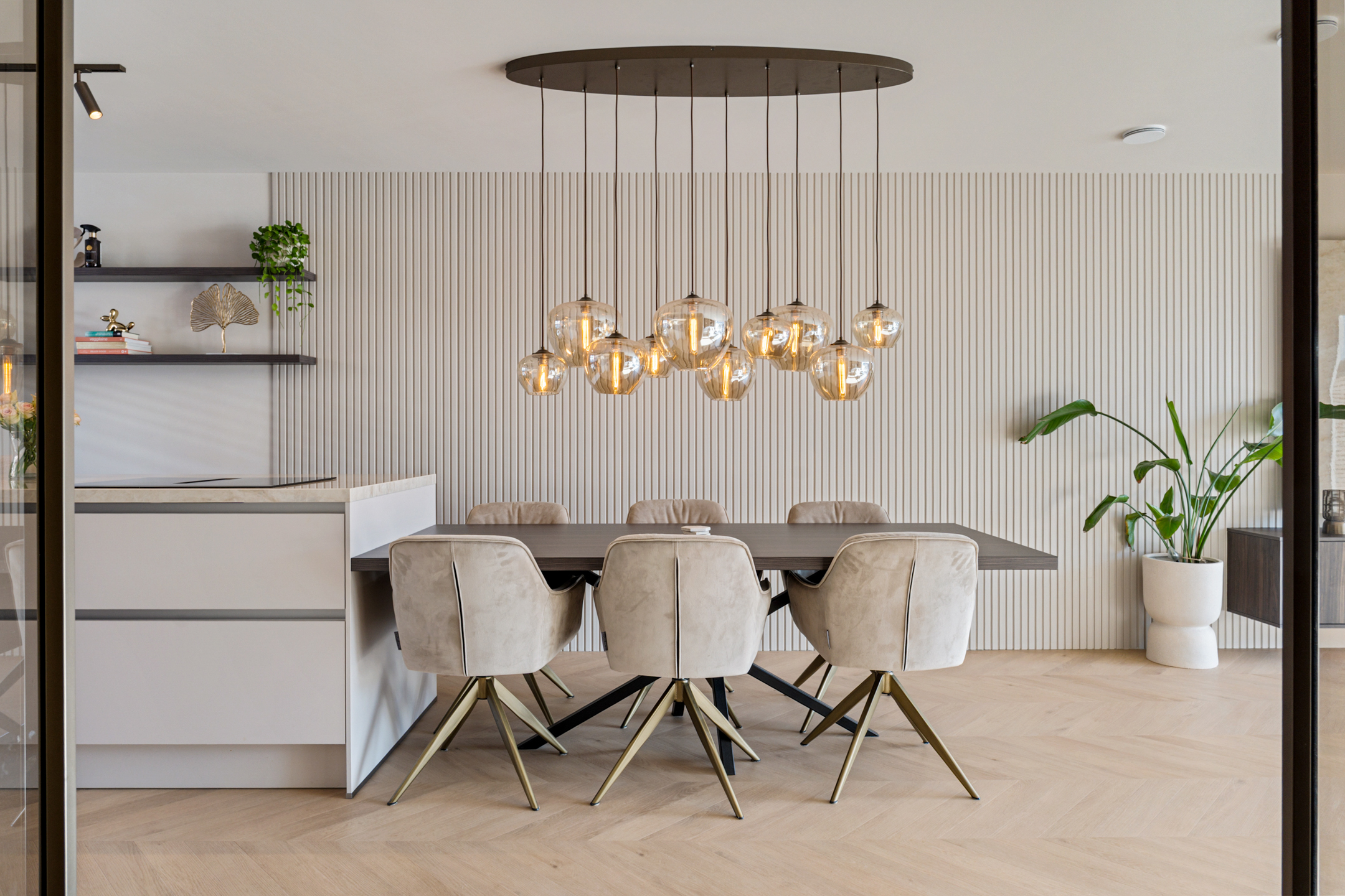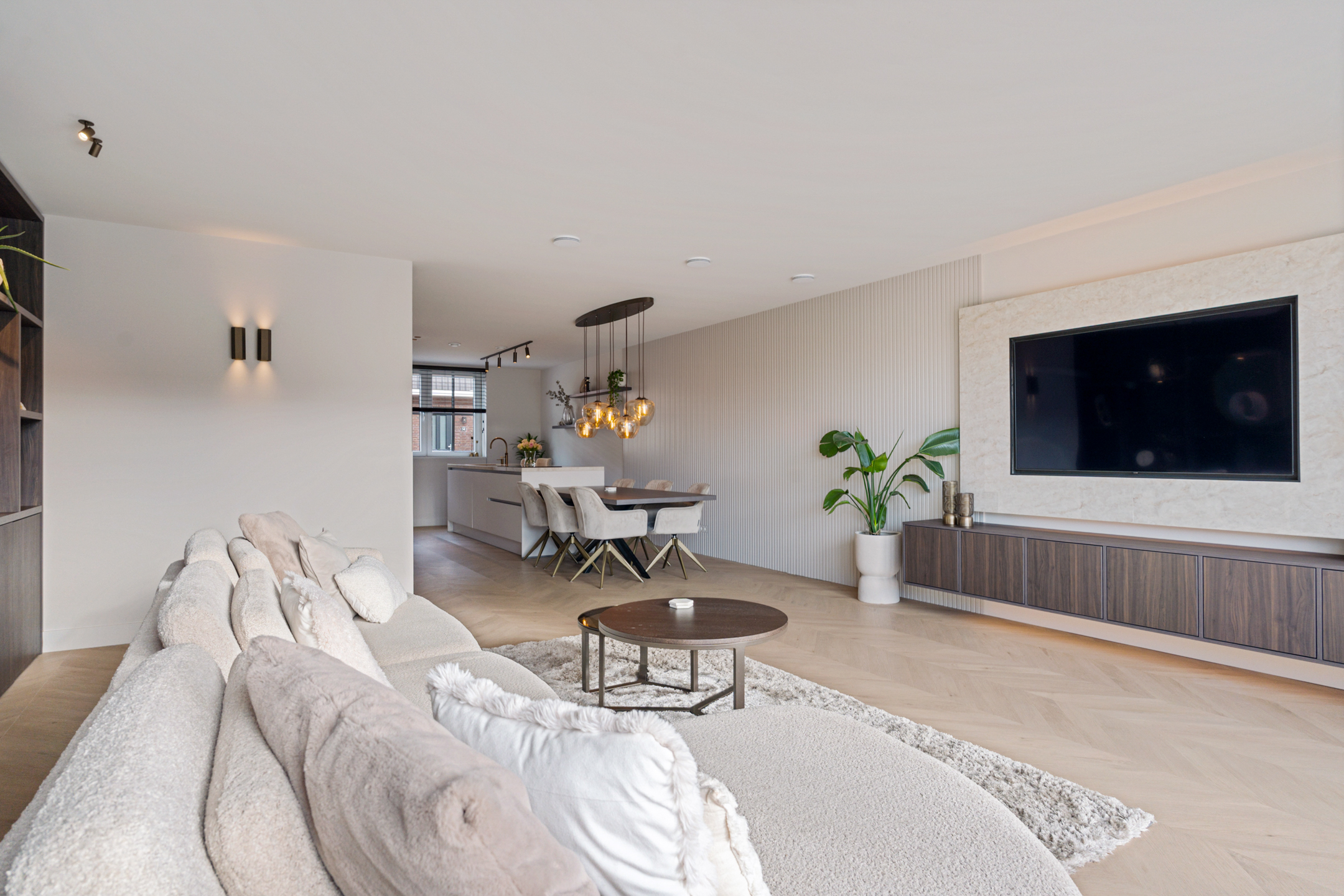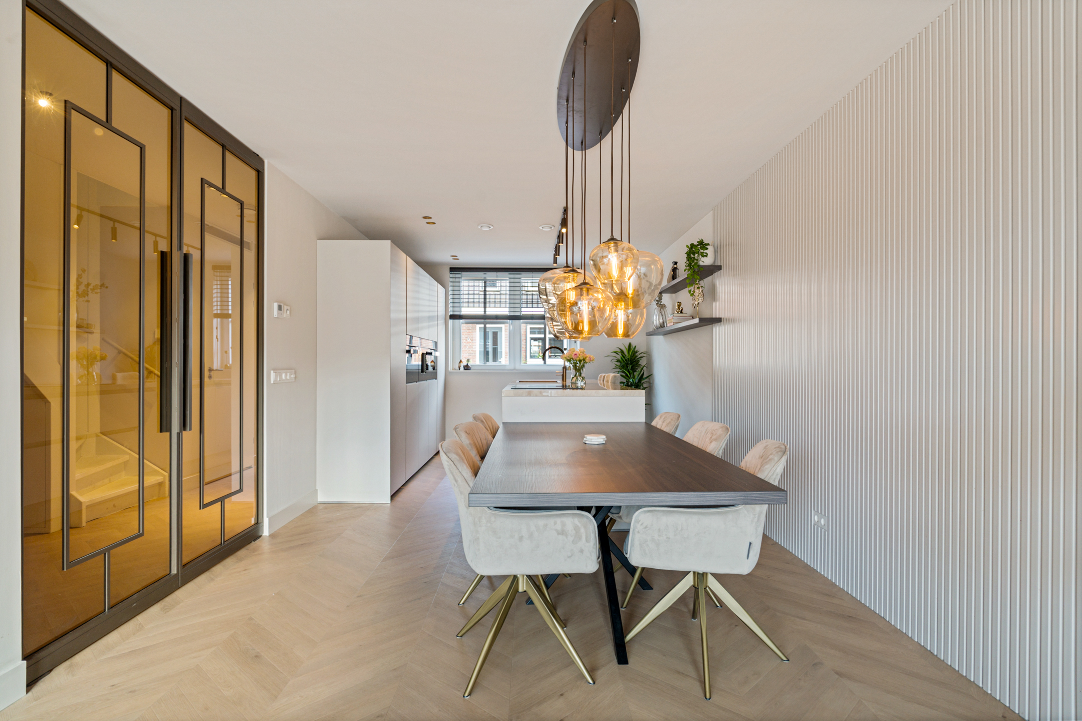 + Luxe leefkeuken en uitgebouwde woonkamer met sfeervolle Hongaarse punt pvc vloer