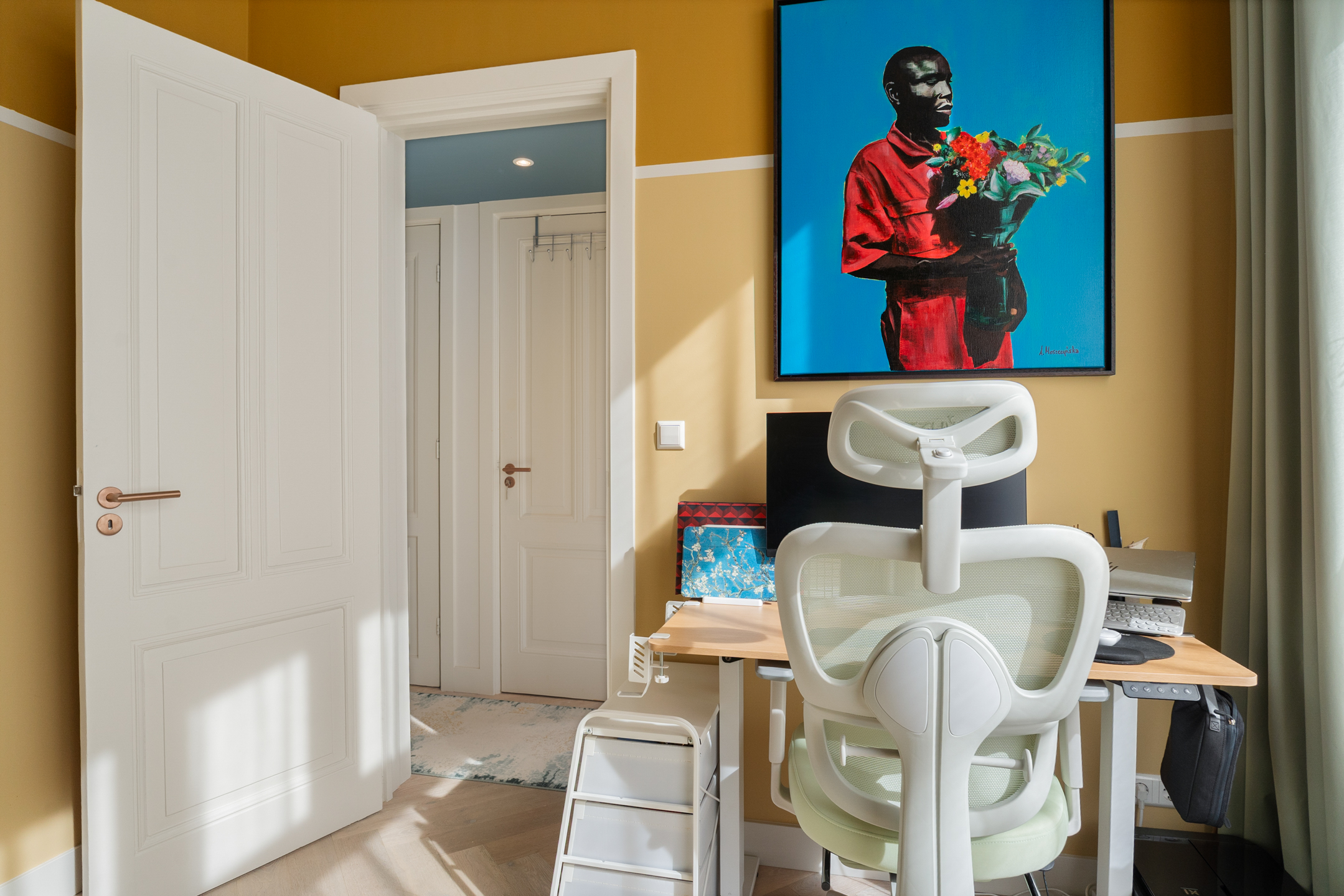 Via een schuifdeur bereik je een tweede kamer, perfect als werk- of logeerkamer met ingebouwde kast en cv-opstelling (Remeha, 2022). De derde slaapkamer ligt aan de achterzijde en beschikt eveneens over openslaande deuren naar de tuin, waardoor binnen en buiten mooi in elkaar overlopen.