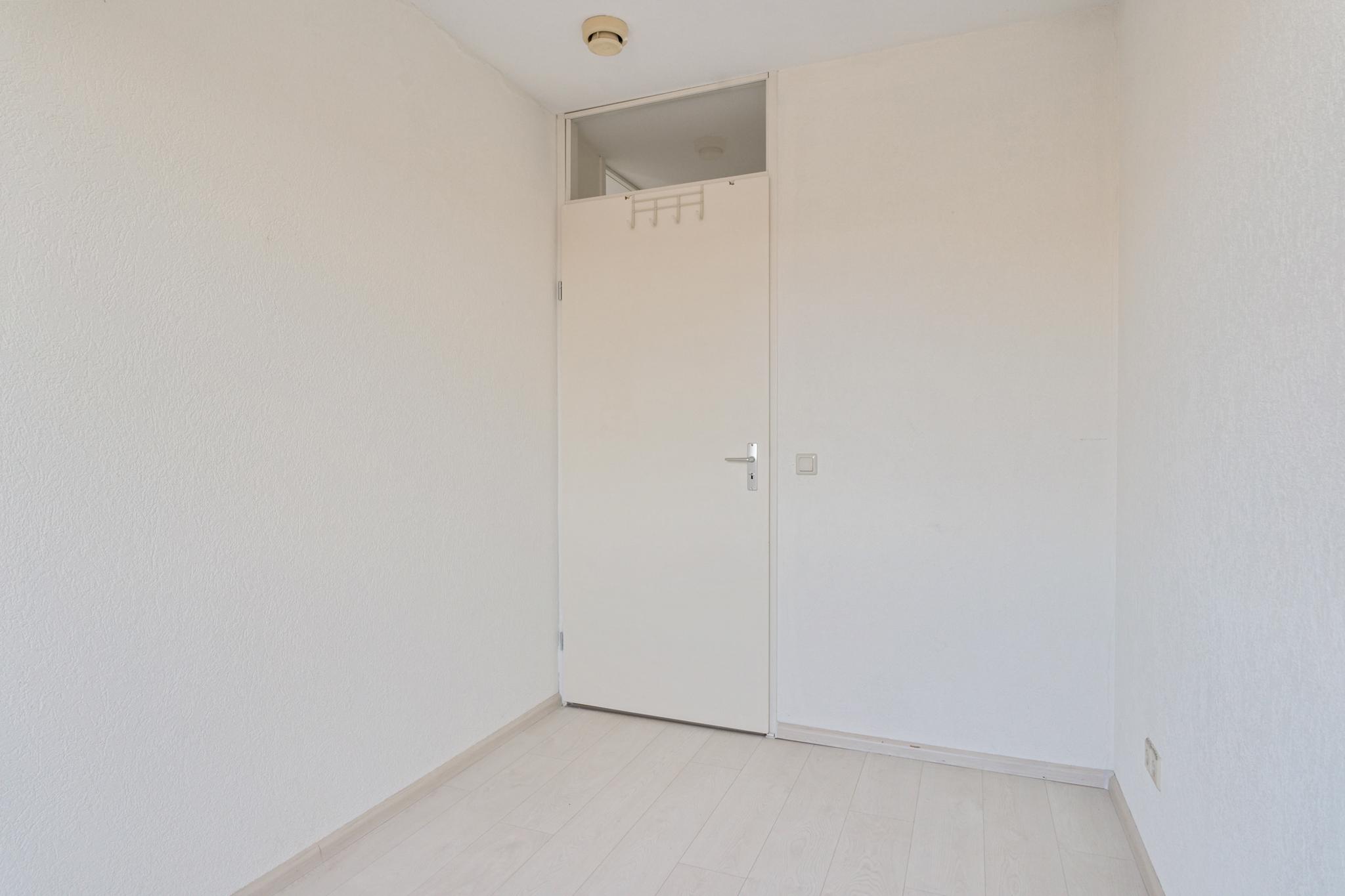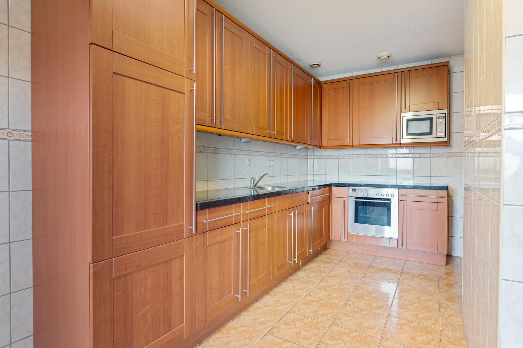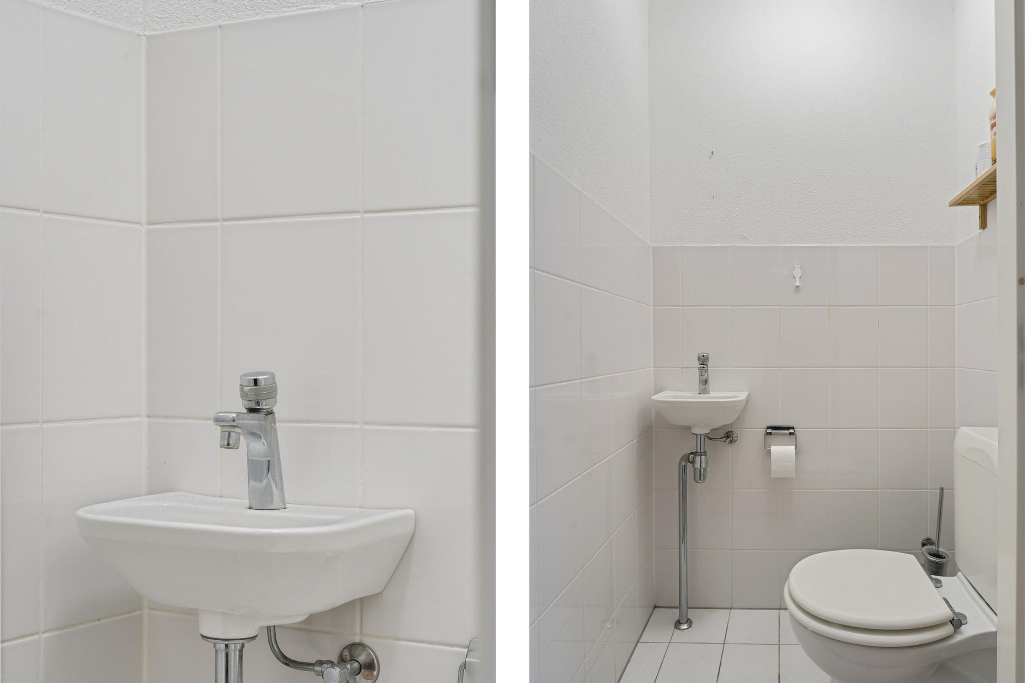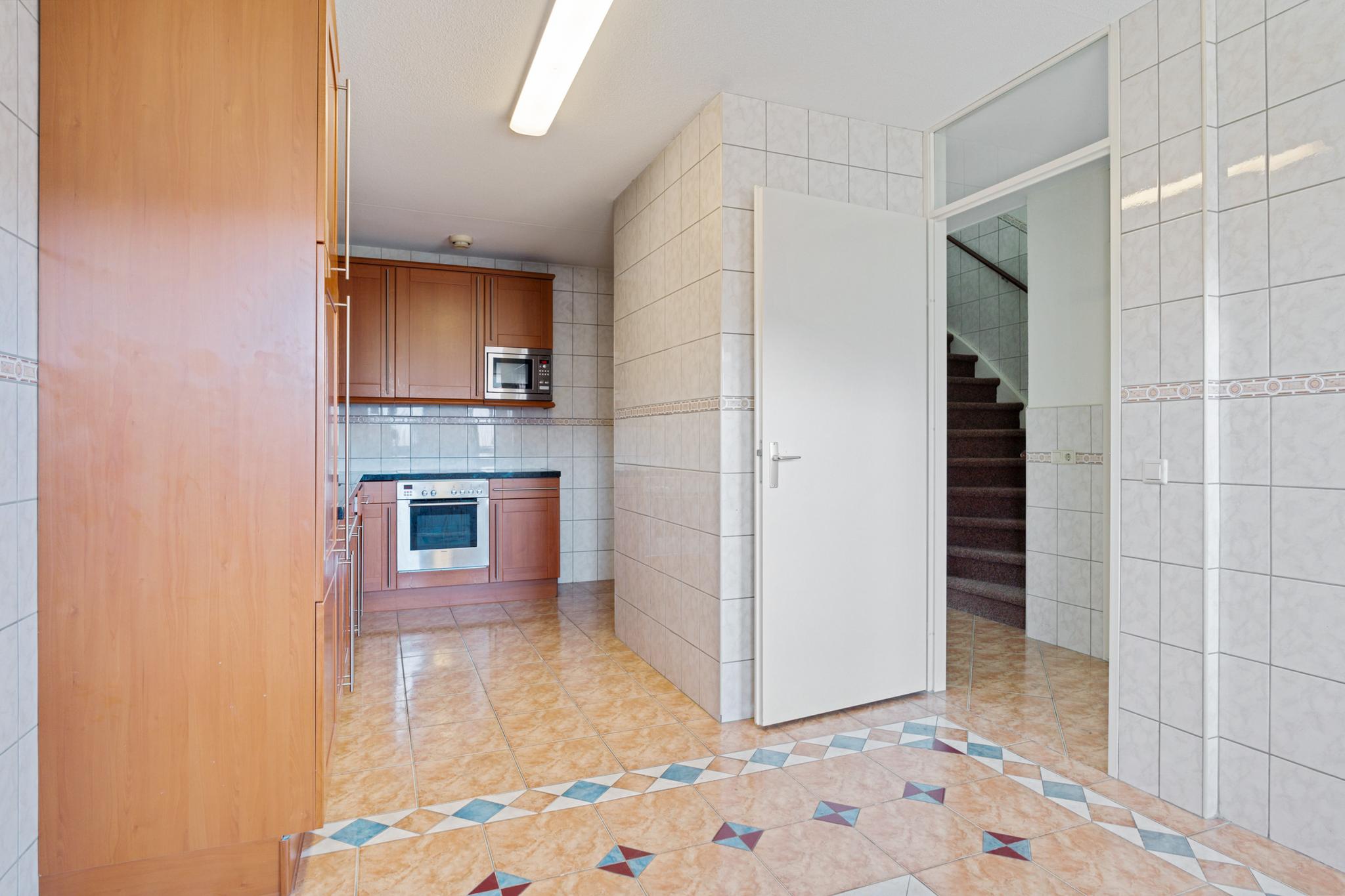 Je komt binnen in een ruime hal met direct rechts een handige inbouwkast en links het moderne separate toilet. De betegelde keuken ligt aan de linkerzijde van de woning en is voorzien van een inductiekookplaat, oven, magnetron, koelkast, vriezer en volop kastruimte. De keuken biedt een functionele basis die je eenvoudig naar eigen stijl kunt aanpassen. Aan de voorzijde van de woning ligt de lichte woonkamer met grote raampartijen die zorgen voor een prettige lichtinval. De laminaatvloer en de neutrale afwerking maken de ruimte direct bewoonbaar.