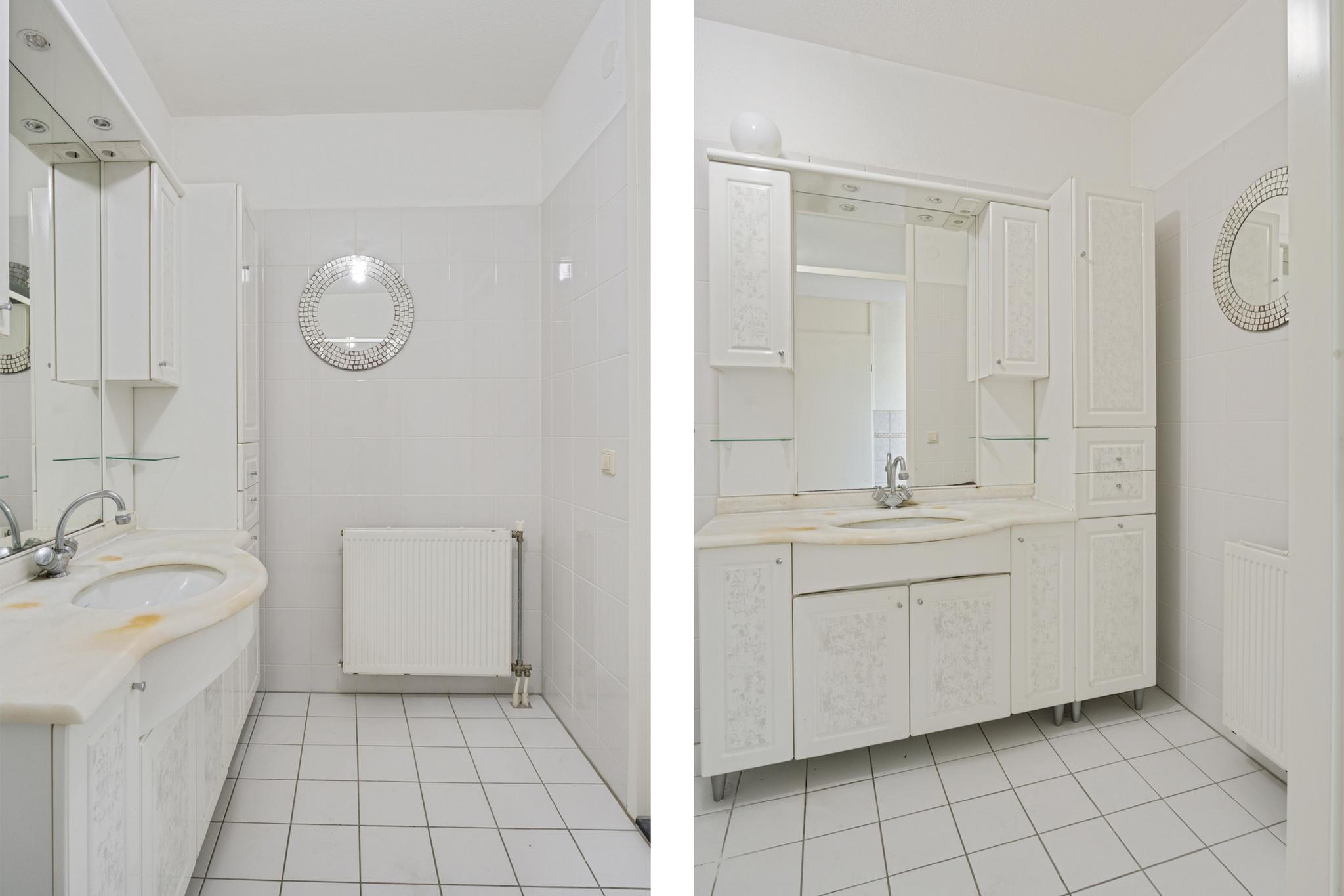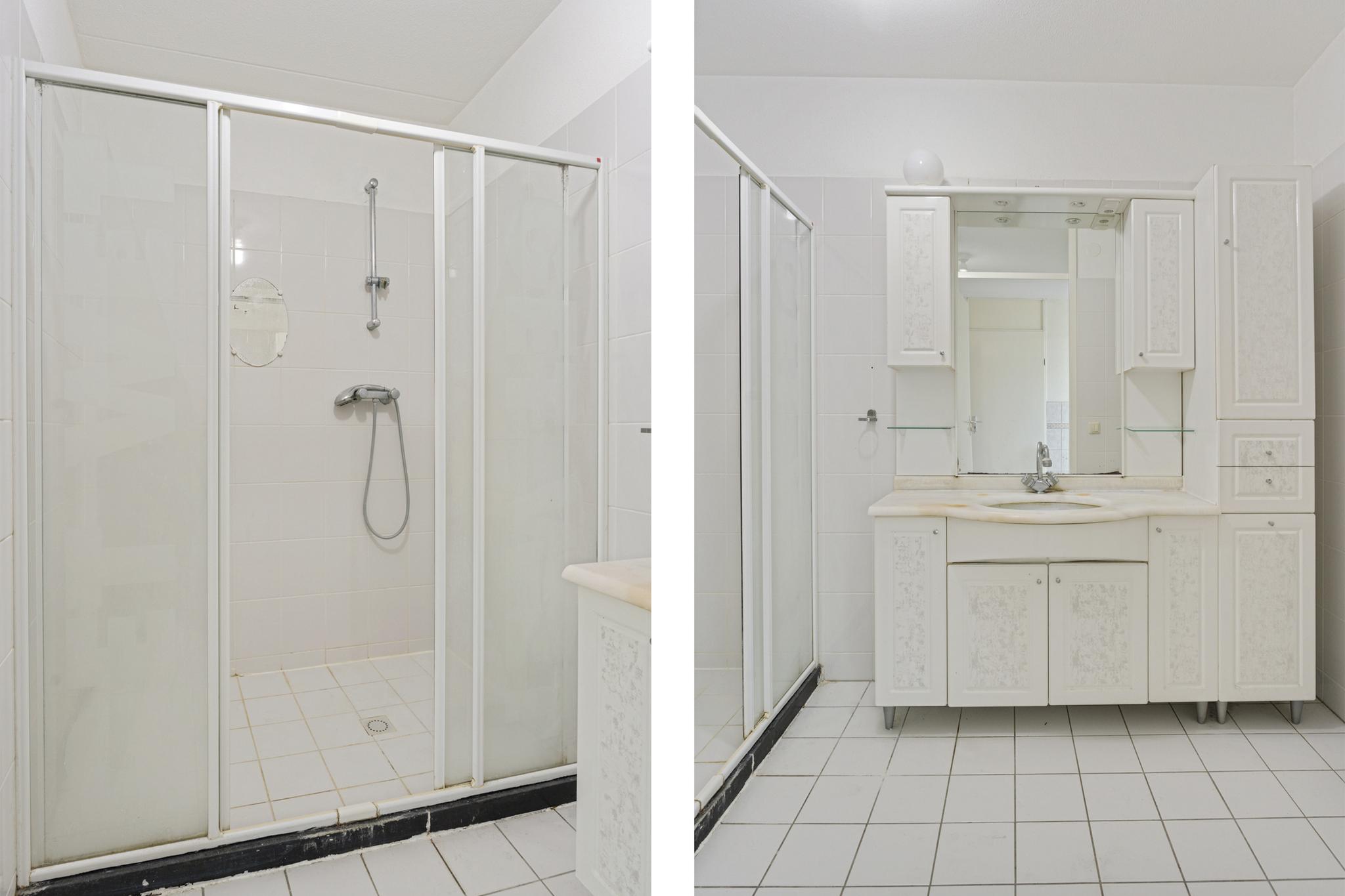 Via de overloop bereik je drie slaapkamers: twee aan de voorzijde, waarvan één met toegang tot het zonnige balkon, en een derde slaapkamer aan de achterzijde. Alle kamers zijn voorzien van een laminaatvloer en bieden voldoende ruimte voor slapen, werken of opbergen. Op de overloop vind je daarnaast een tweede, separaat toilet en een praktische berging met aansluitingen voor wasmachine en droger. De volledig betegelde badkamer is uitgerust met een douche en een wastafelmeubel met veel opbergruimte.
