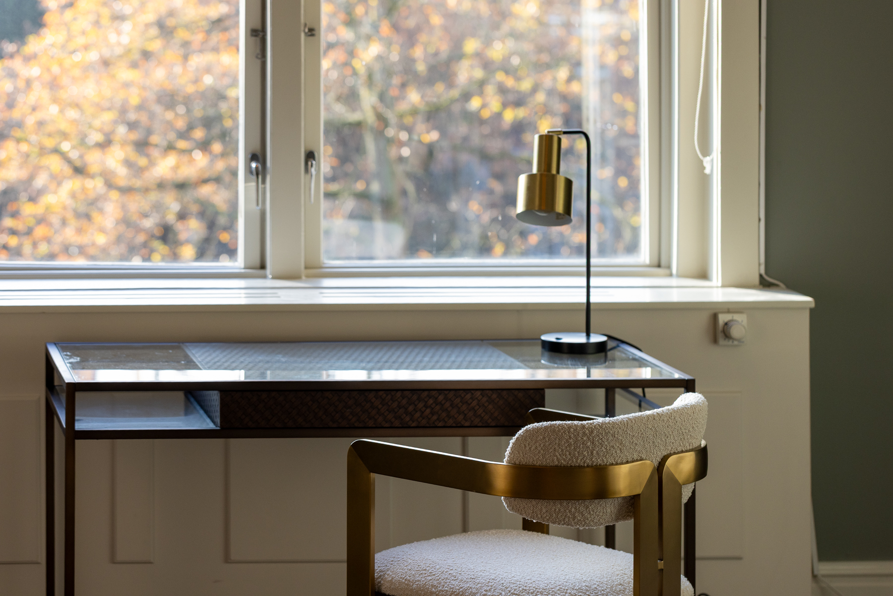 Daarnaast is er nog een aparte logeer- of werkkamer die ook bereikbaar is via een eigen entree in het trappenhuis.