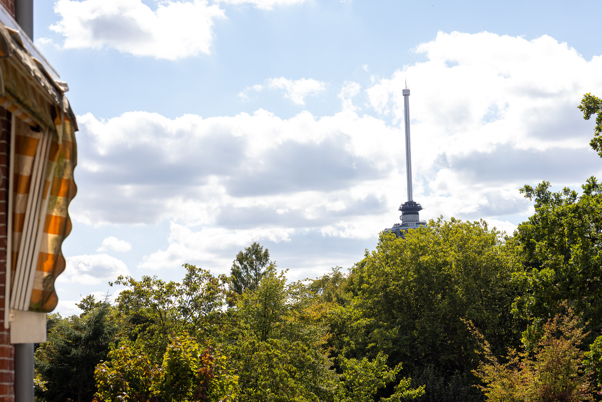 + Terras met uitzicht op Historische Tuin Schoonoord en de Euromast