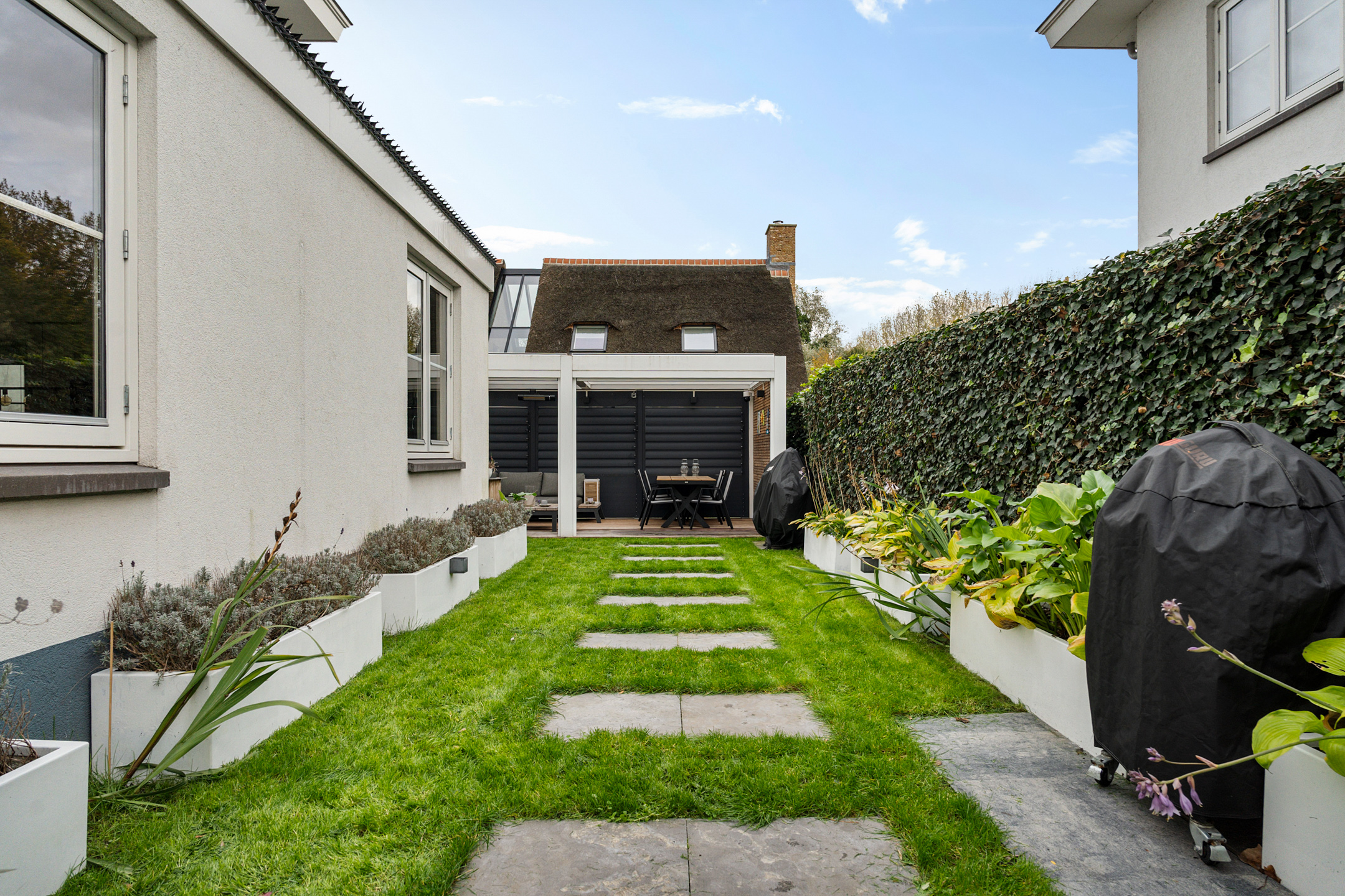 De woning biedt alles wat je van een luxe gezinswoning mag verwachten: een royale, uitgebouwde woonkamer met overvloedig daglicht, een moderne open keuken, vijf ruime slaapkamers, twee stijlvolle badkamers en een prachtig aangelegde tuin met overkapping.