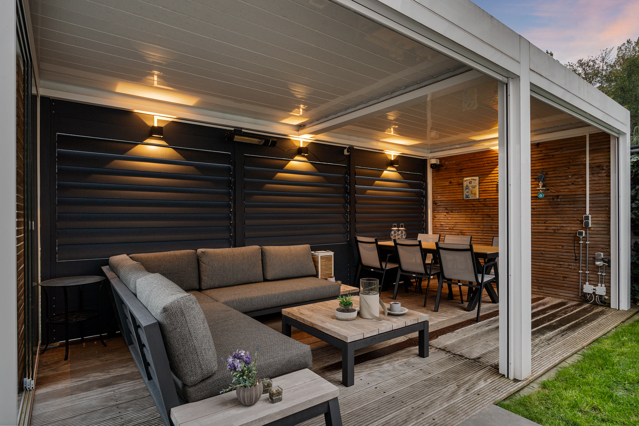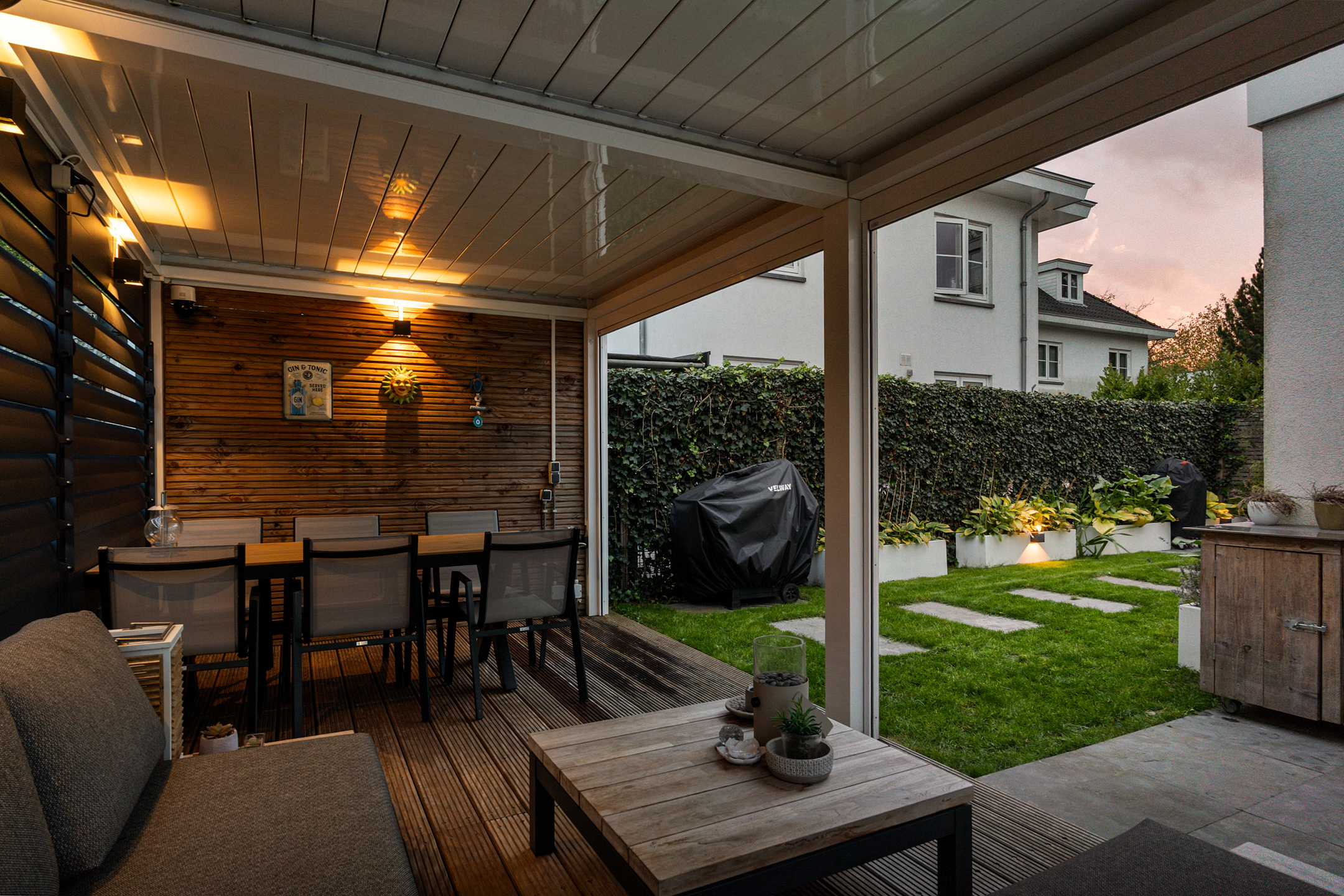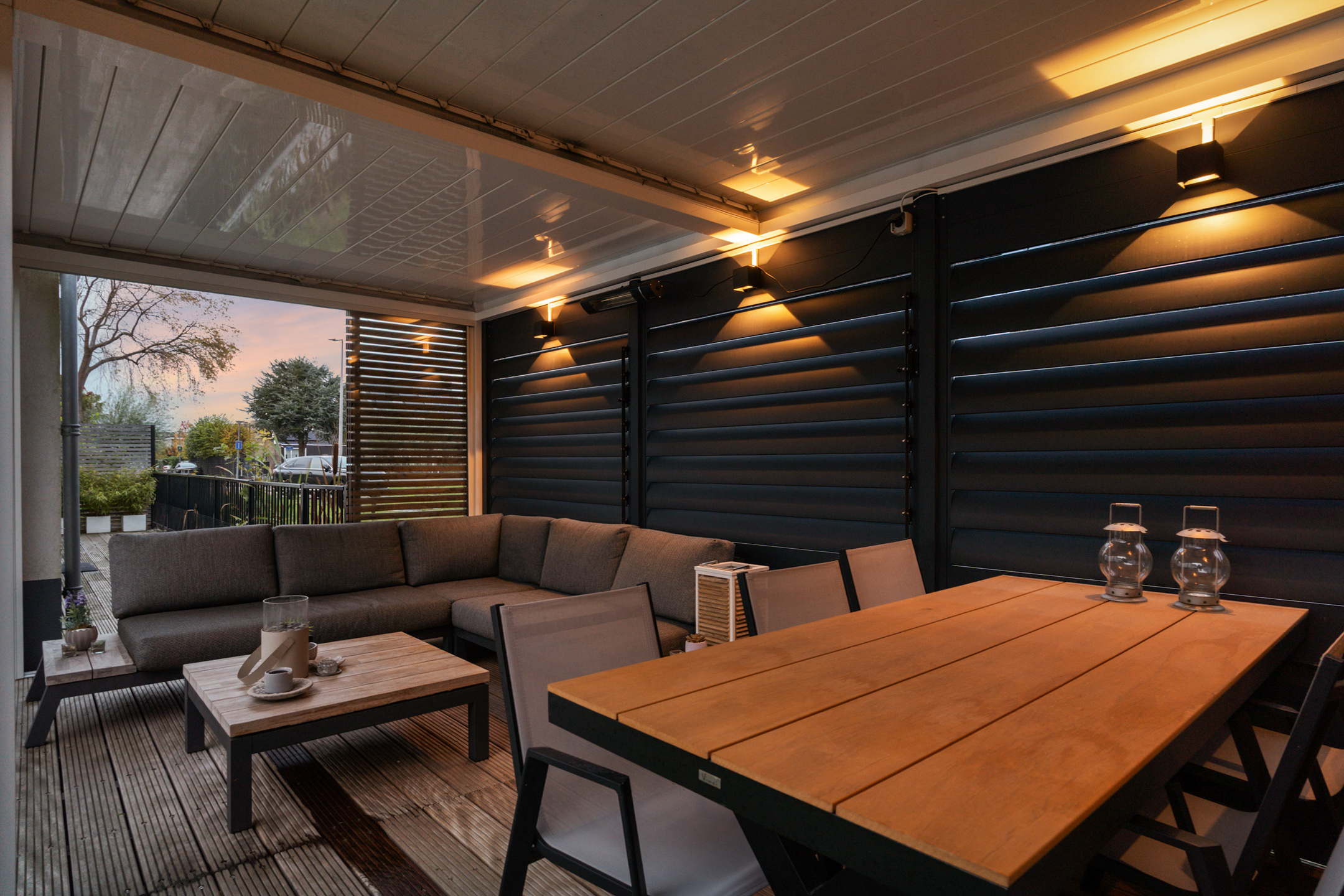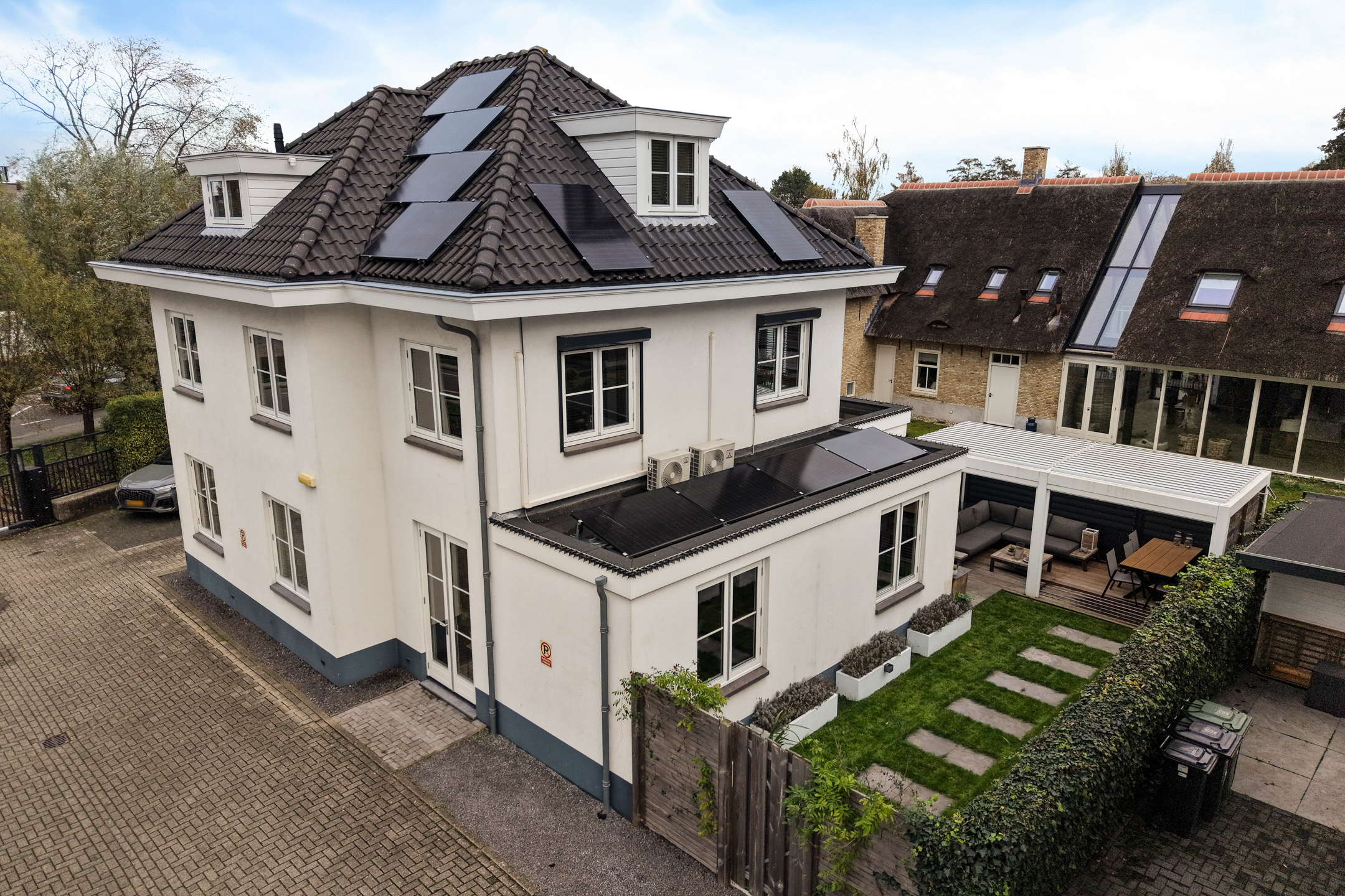 + Prachtige tuin met luxe lamellenoverkapping en twee parkeerplaatsen op eigen terrein