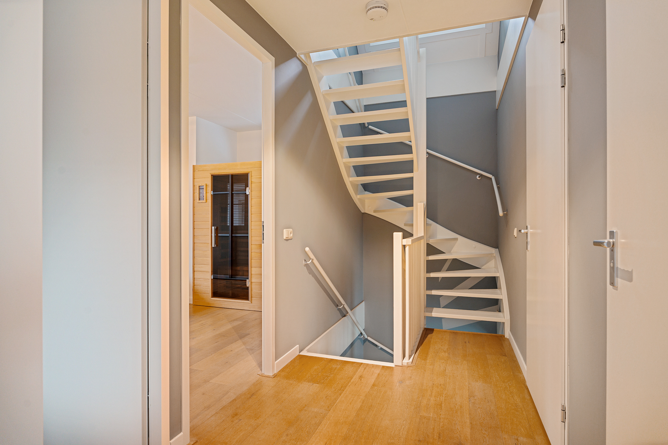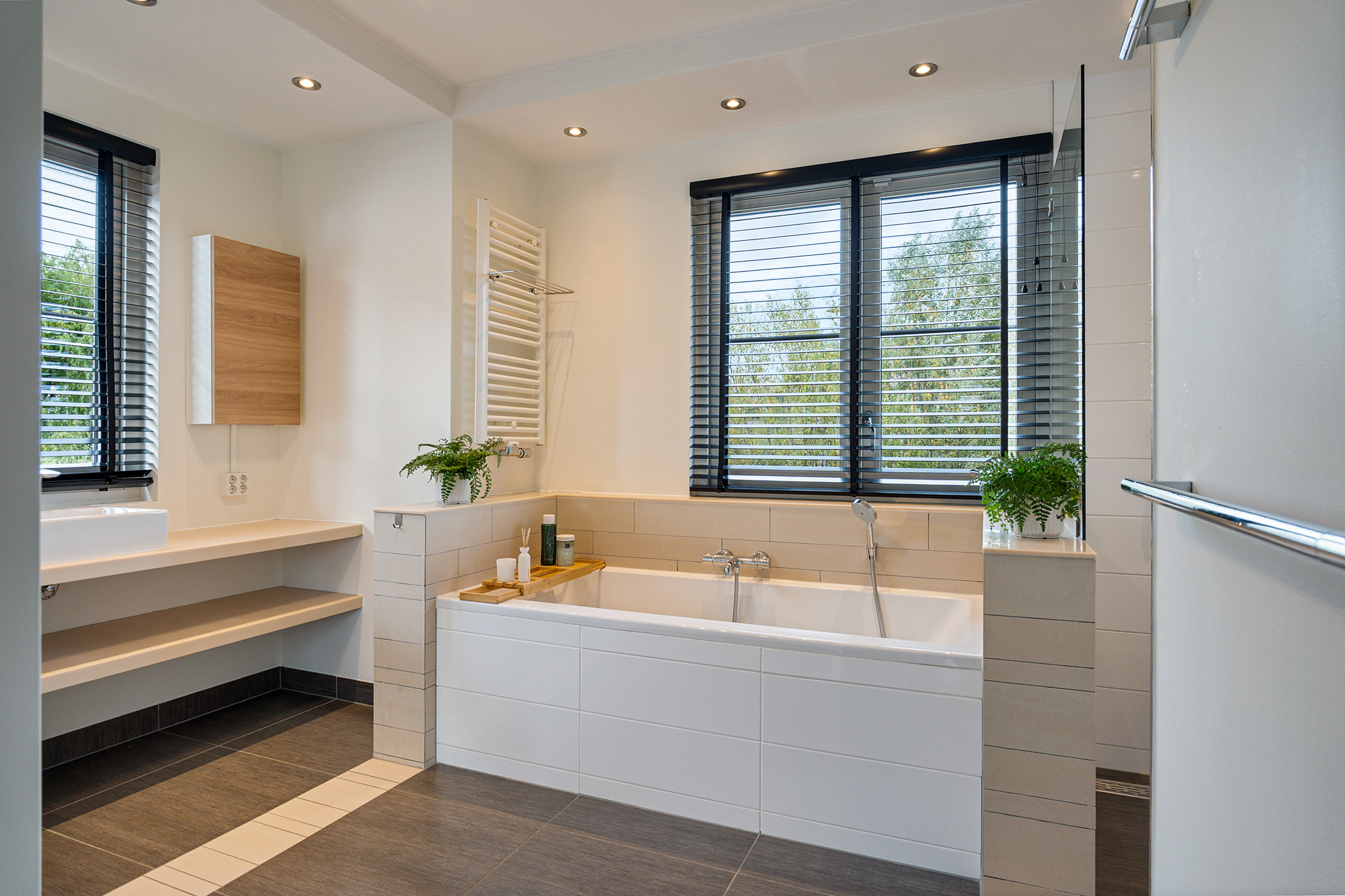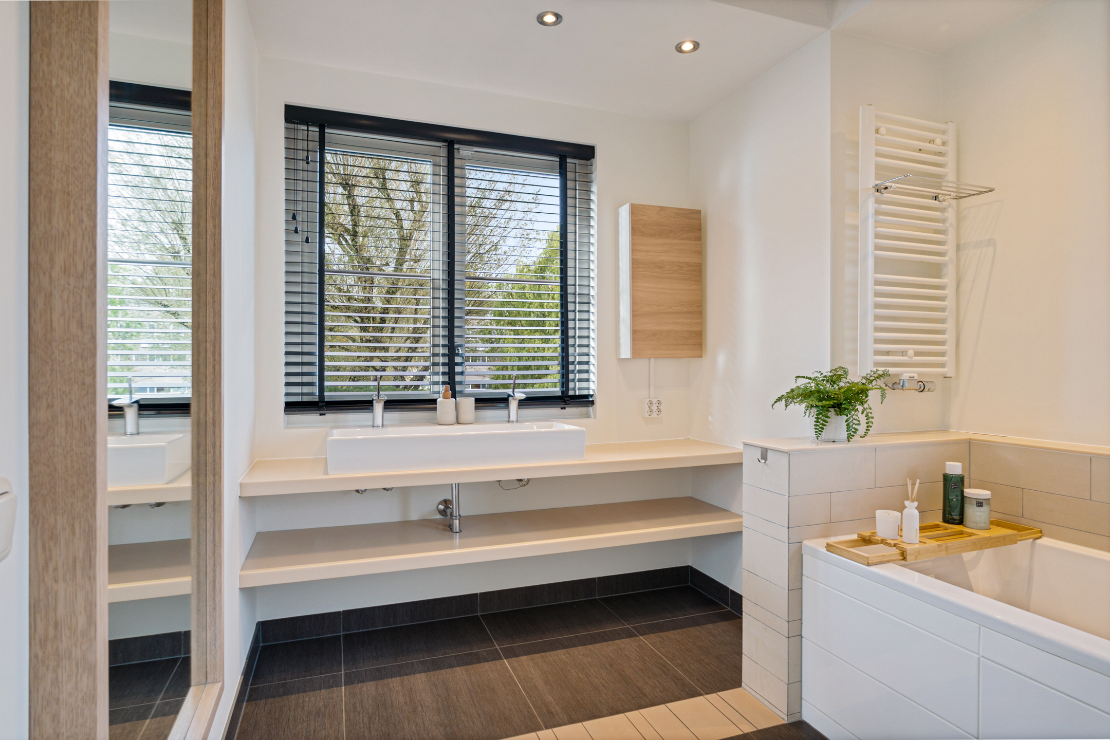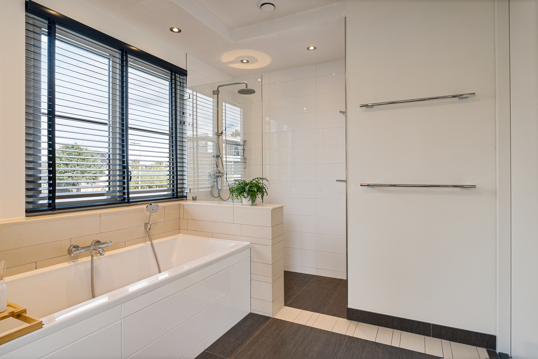 De overloop geeft toegang tot drie ruime slaapkamers, een modern zwevend toilet en een stijlvolle designbadkamer met inloopdouche, ligbad en wastafelmeubel met dubbele wastafelpartij. De gehele verdieping is afgewerkt met fraaie houten vloerdelen die zorgen voor een warme, luxe uitstraling.