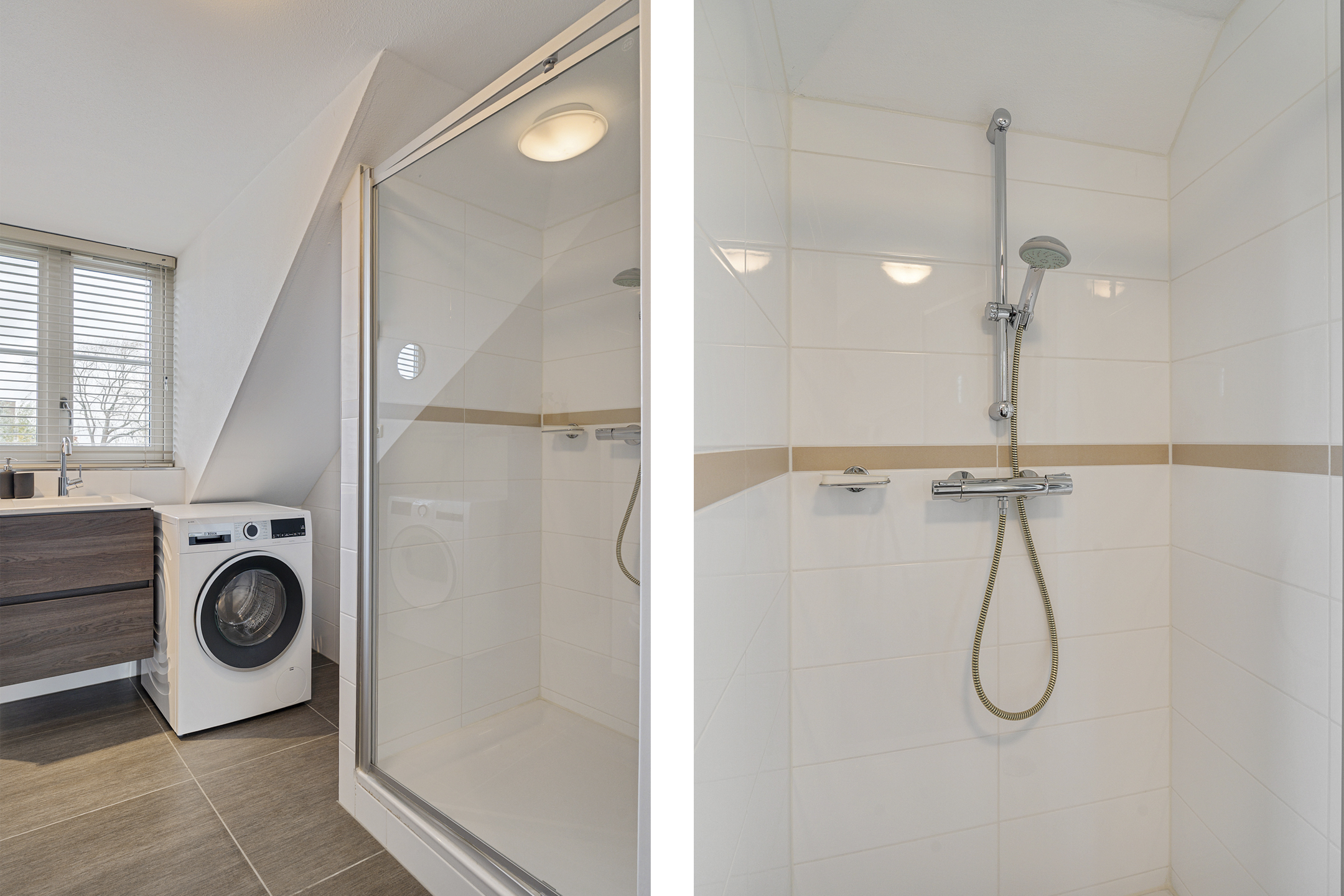 Hier bevinden zich nog twee royale slaapkamers met dakkapellen, diverse bergruimten en een tweede moderne badkamer met douche, wastafel, zwevend toilet en aansluitingen voor wasmachine en droger.