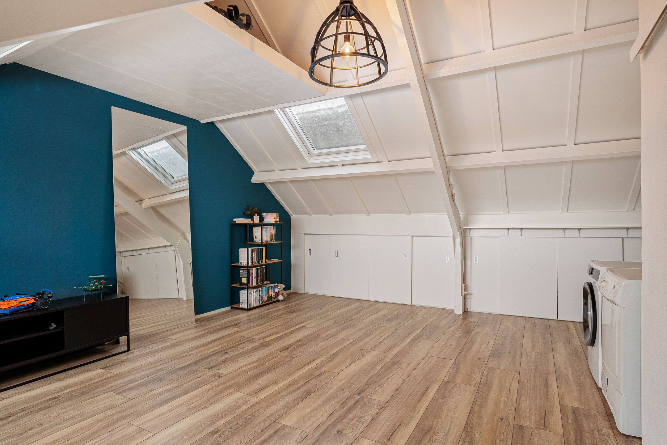 De zolderverdieping is keurig afgewerkt en biedt volop mogelijkheden. Dankzij de dakkapel aan de voorzijde en het dakvenster aan de achterzijde is deze verdieping licht en ruim. Hier kun je eenvoudig een extra slaapkamer realiseren.