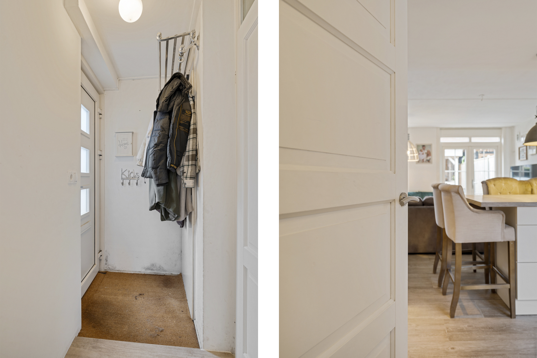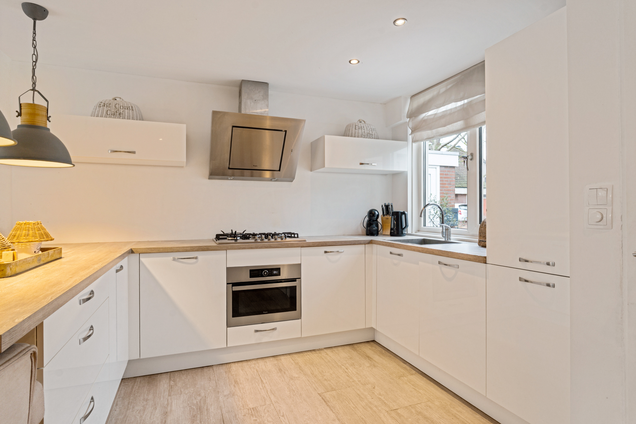 Via de entree kom je binnen in de hal met toegang tot het toilet, meterkast en de trapopgang. Aan de voorzijde bevindt zich de keuken die is geplaatst in 2012. Deze is voorzien van diverse Whirlpool-inbouwapparatuur en de vaatwasser is vernieuwd in 2024.