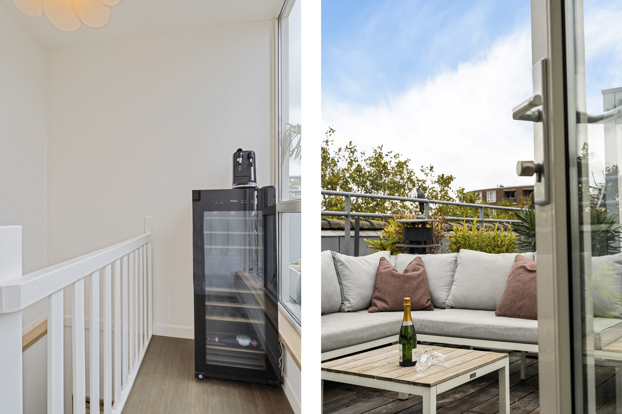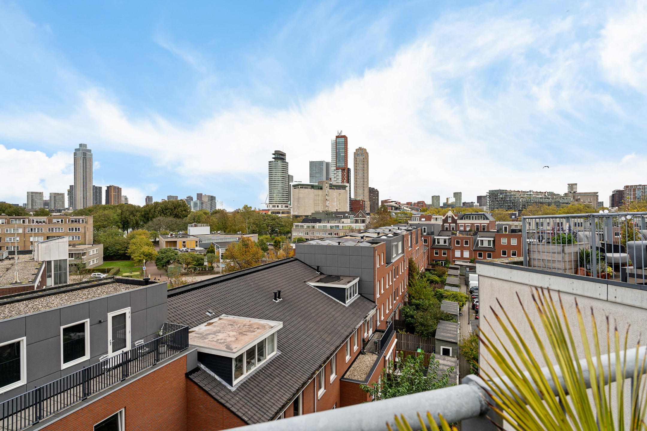 Via de trap in de dakopbouw bereik je de overloop met ruimte voor een extra koelkast of wijnklimaatkast en stap je op het riante dakterras en heb je een geweldig uitzicht wat je elke dag opnieuw stil maakt: Montevideo, Zalmhaventoren, Erasmusbrug, De Rotterdam, Rotterdam ligt hier letterlijk aan je voeten.