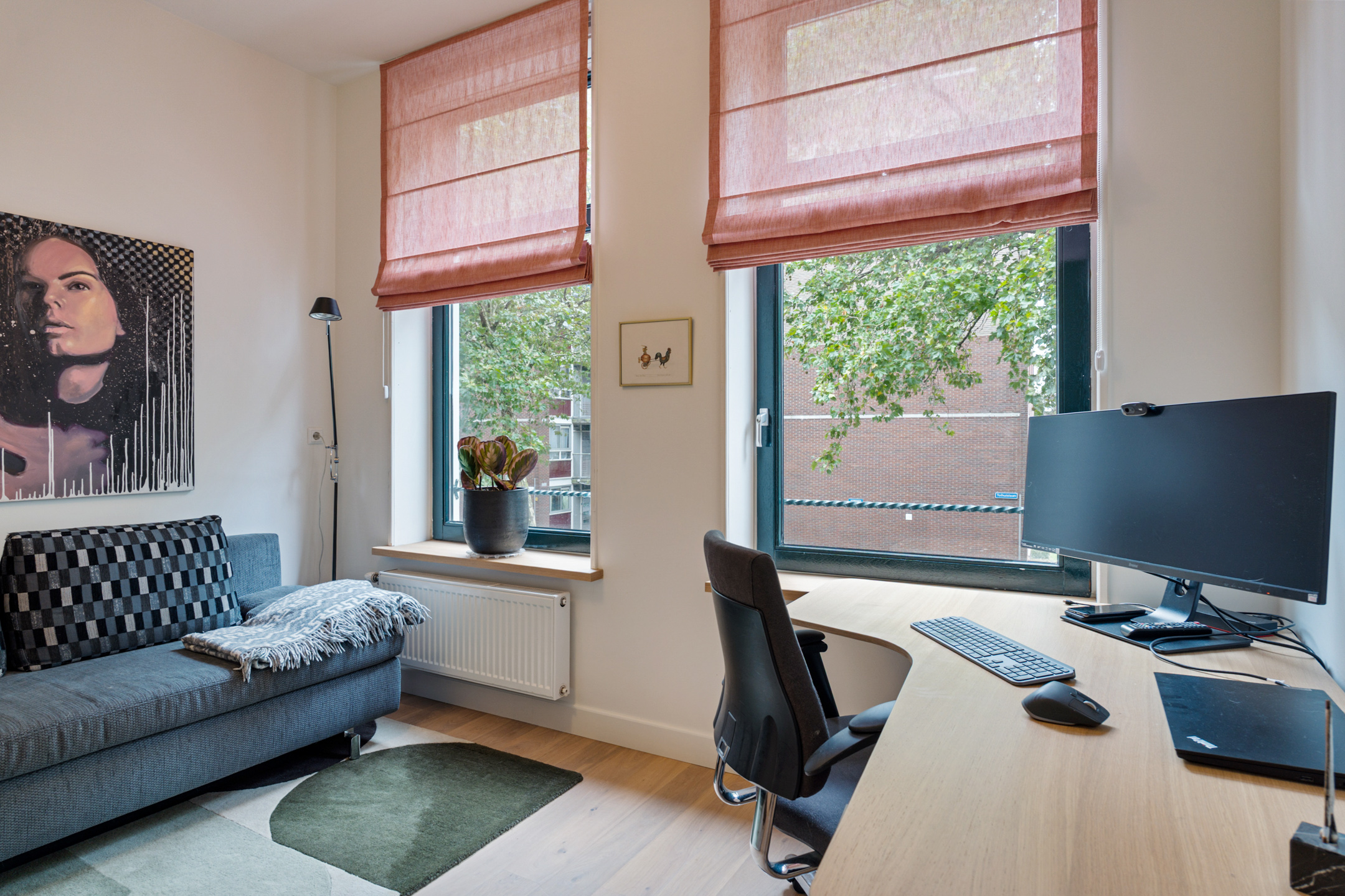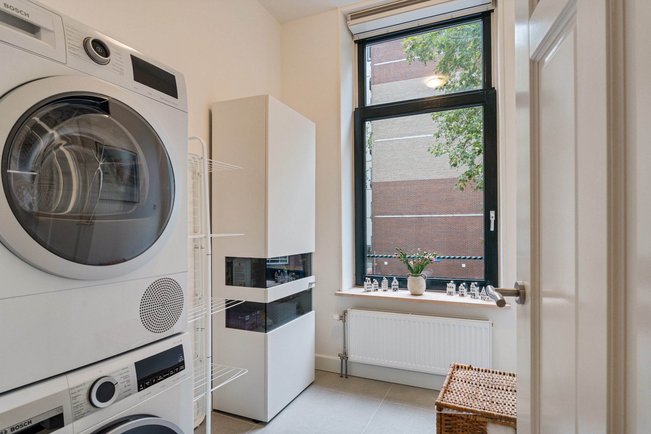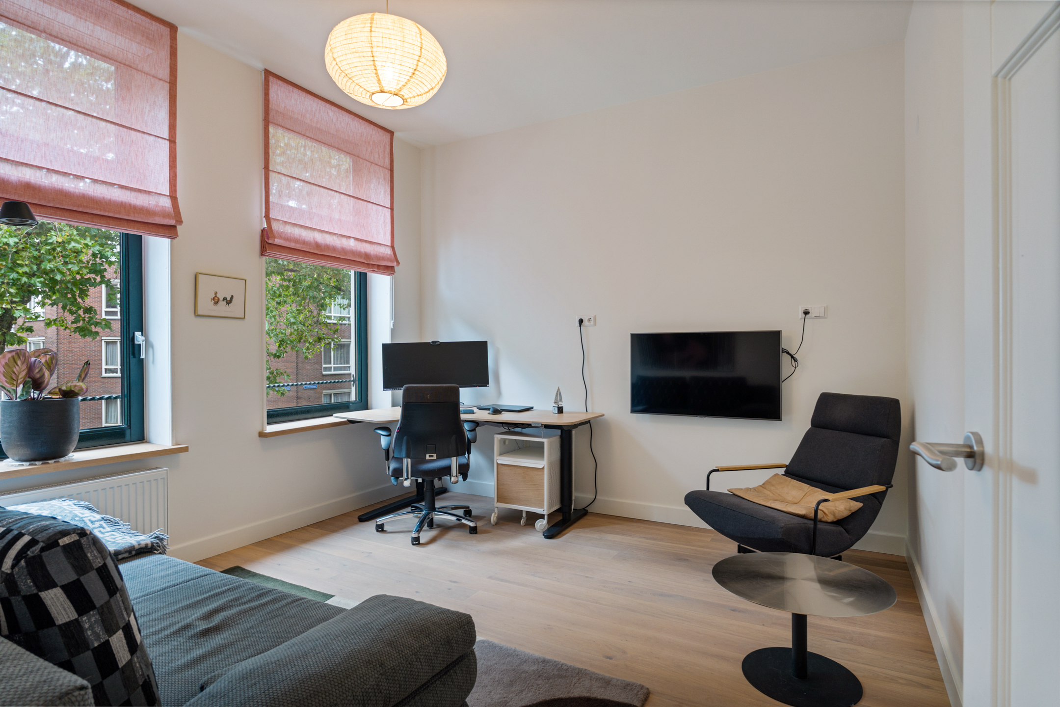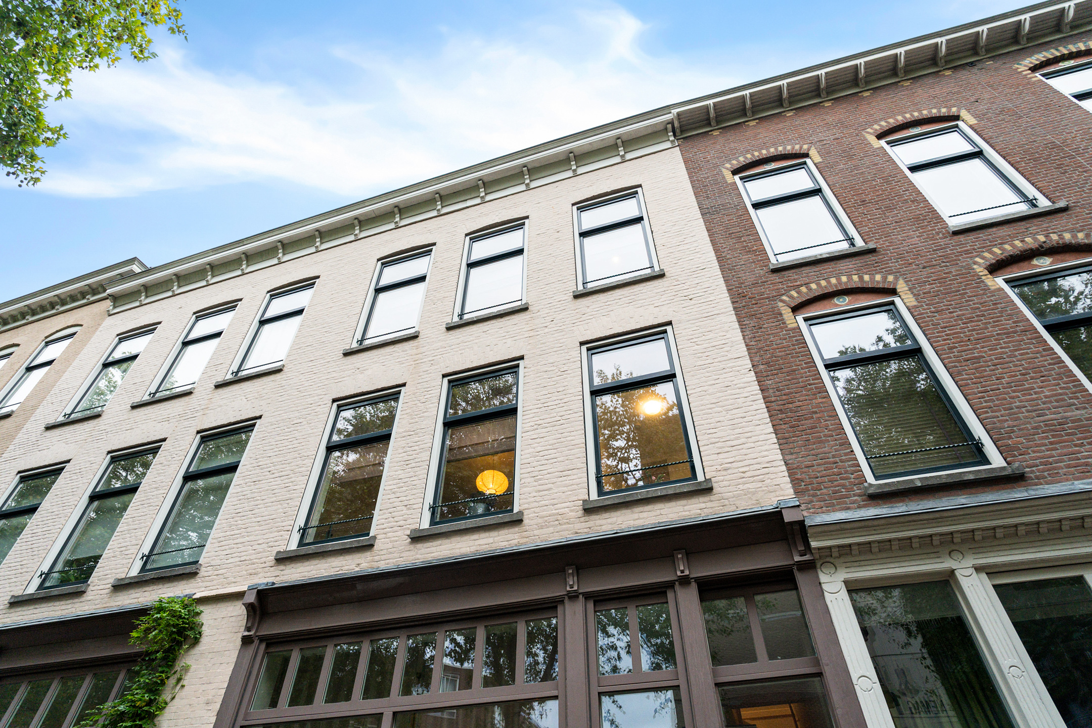 De keuze om de woonkamer op de tweede verdieping te plaatsen pakt geweldig uit. Zo kijk je vanuit de woonkamer al uit op de eerste Wolkenkrabber van de Wilhelminapier.