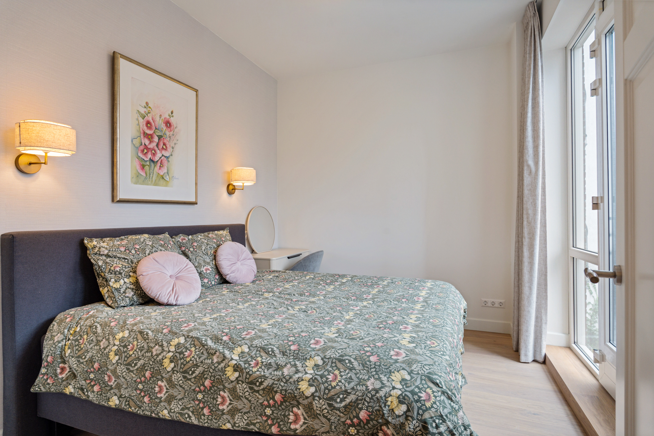De badkamer op deze verdieping is een ware hotelervaring, met een ligbad met whirlpoolfunctie, een ruime wastafel, wandcloset, vloerverwarming en een inloopdouche. Hier begin en eindig je je dag in rust en luxe.