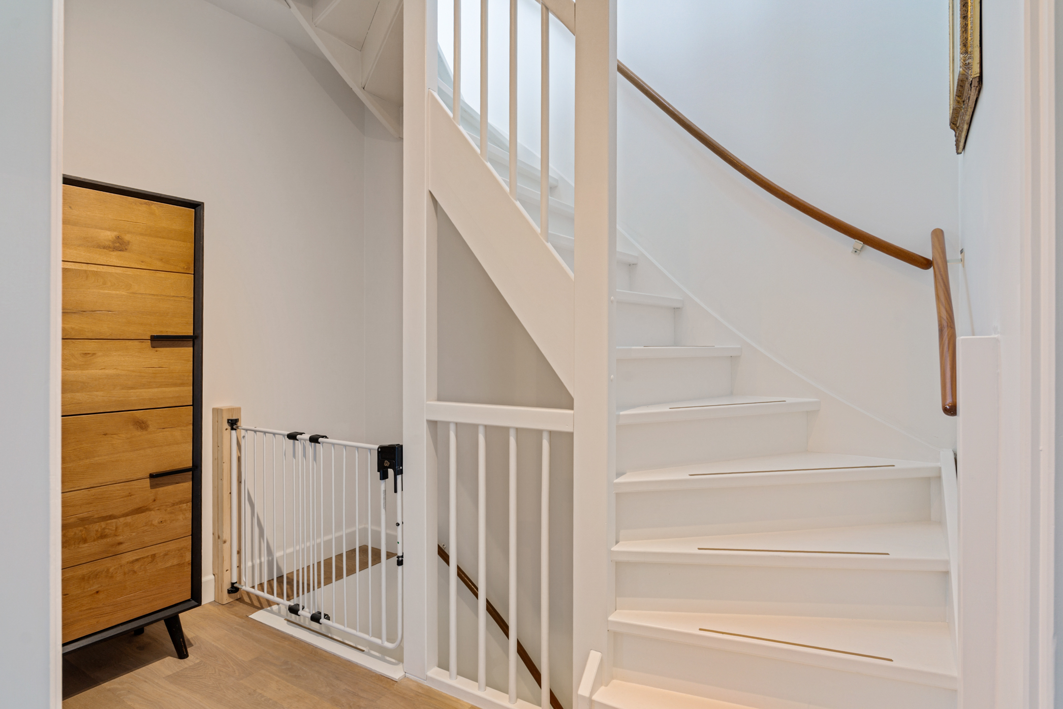 Onderweg naar de eerste verdieping vallen de handige kastruimte naast de trap op. Ideaal voor spullen die je toch niet zo vaak nodig hebt.