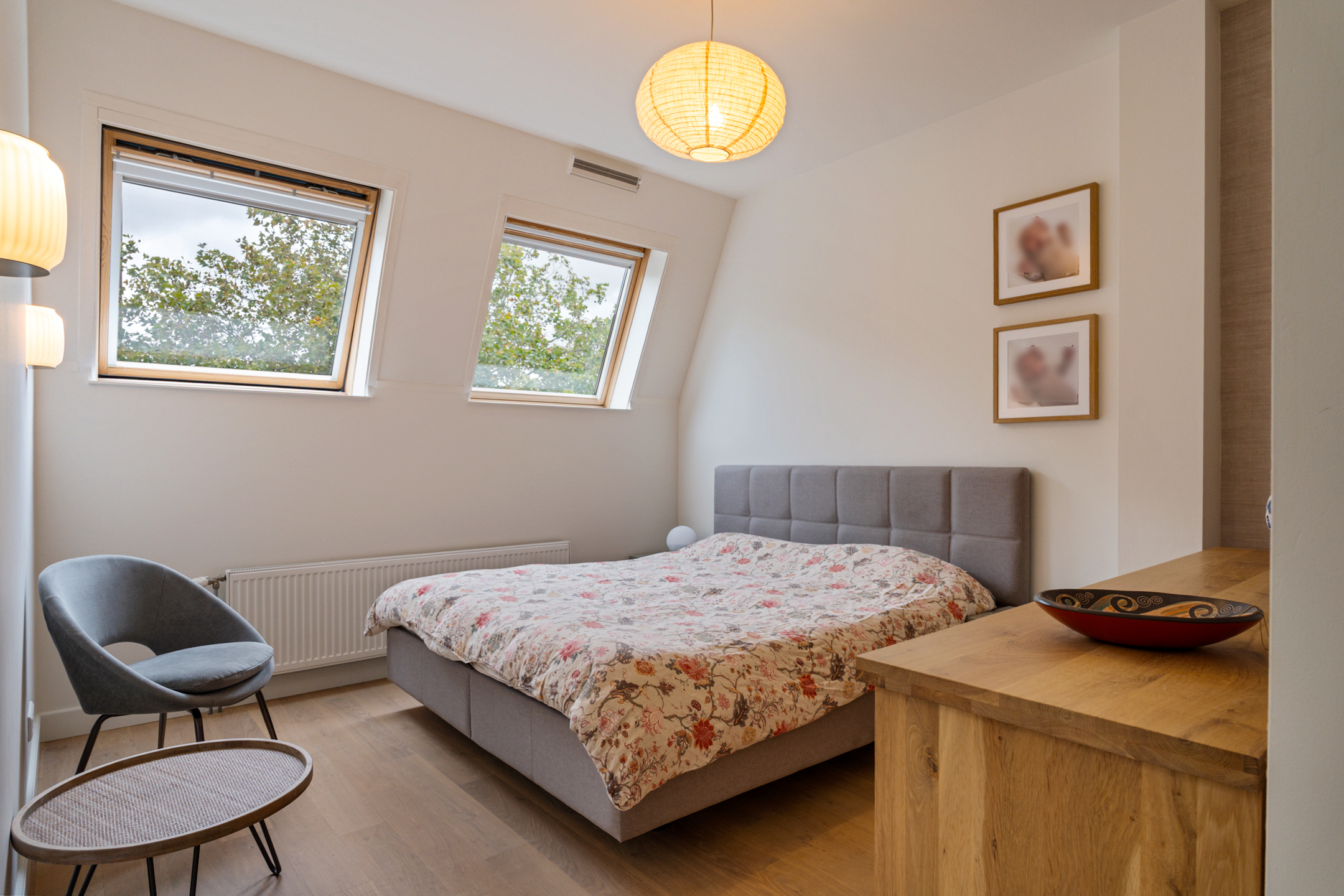 De master bedroom is gelegen aan de voorzijde en beschikt over twee fijne dakramen. De andere slaapkamer op deze verdieping is gelegen aan de achterzijde en biedt een waanzinnig uitzicht.